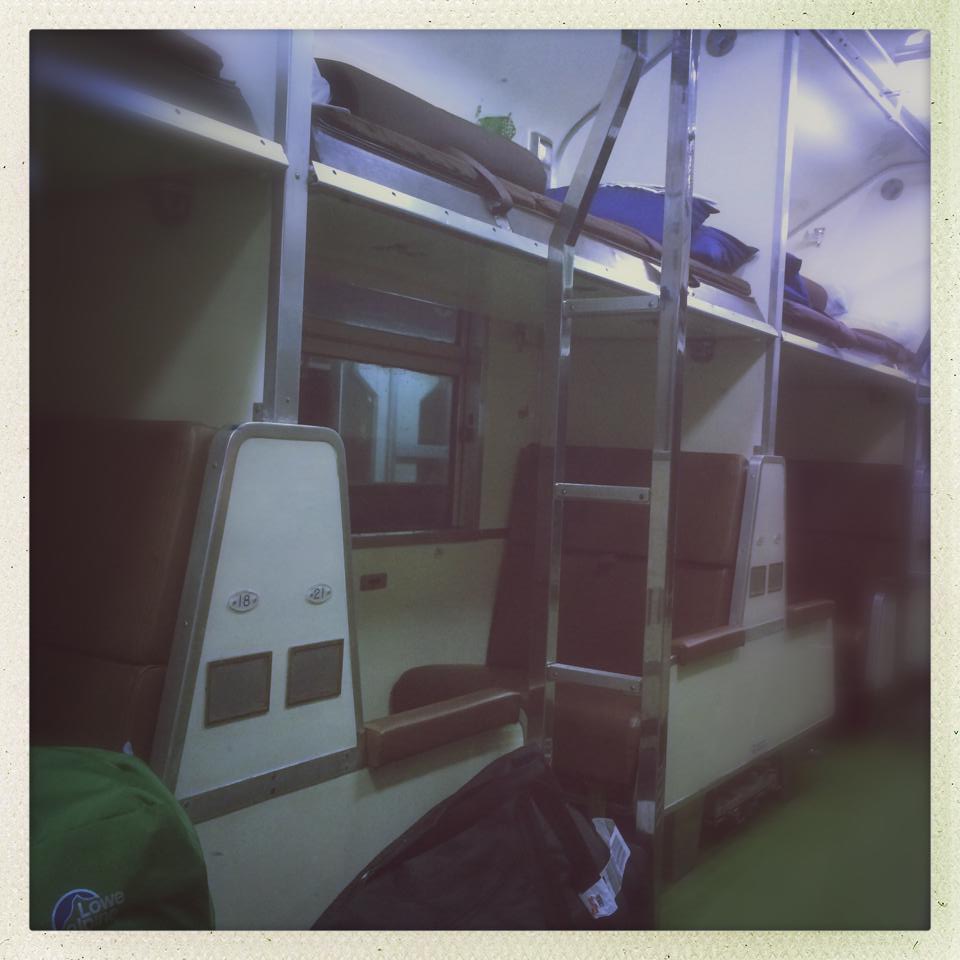 Nous voici donc dans le train de la peur sympa. Je m’installe. Tranquillou. iPad chargé, série au casque. Je suis sur la couchette du haut. Le souci avec la couchette du haut, c’est le néon qui se trouve juste à côté du rideau qui ferme mal, et surtout, qui ne monte pas jusqu’au plafond. Donc finalement, en me couchant à 19:56, et en me levant grâce au réveil à 3:58, j’ai dormi 8 minutes.