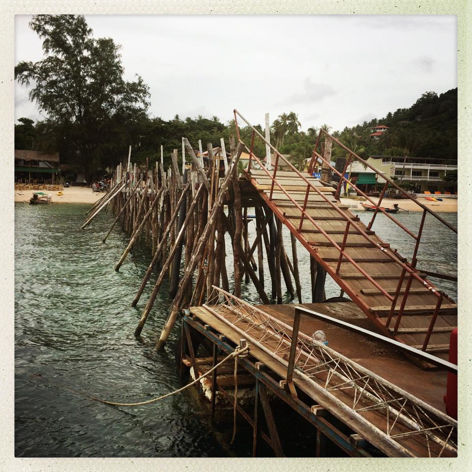 Manu me réveille quand on approche. Koh Tao ressemble effectivement à une tortue. C’est tout vert, la mer autour, un peu l’île du vieux King Kong mais sans sacrifice humain. Le ponton est beau. Avec du bois, des planches raccordées avec d’autres planches. On débarque, on se fait arnaquer d’un taxi (on s’y fait). Et on arrive à notre resort. C’est super chouette. Bien loin des bidules hyper chics aseptisés où tout est presque trop parfait et où on n’ose pas péter. Si je pétais, je m’autoriserais à le faire ici, discrètement parce que c’est chic un peu quand même.