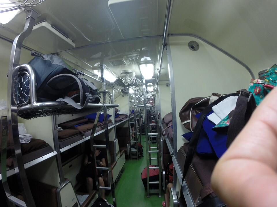 Manu était dans la couchette du bas, beaucoup moins de lumière mais il a pas génial dormi non plus. Mais, MAIS ! Est-ce que Indiana Jones il aurait râlé ? Hein ? Est-ce qu’il aurait gueulé que l’arche elle fait de la lumière. Et beh non. Mais Indiana Jones, c’est un aventurier et nous, bof. Du coup, arrivés à Chumphoń avec une heure de retard, on a la tête dans le cul. De toutes façons, le bus qui nous emmène au port est à 6h. Donc finalement, arriver à 5h, c’est super.