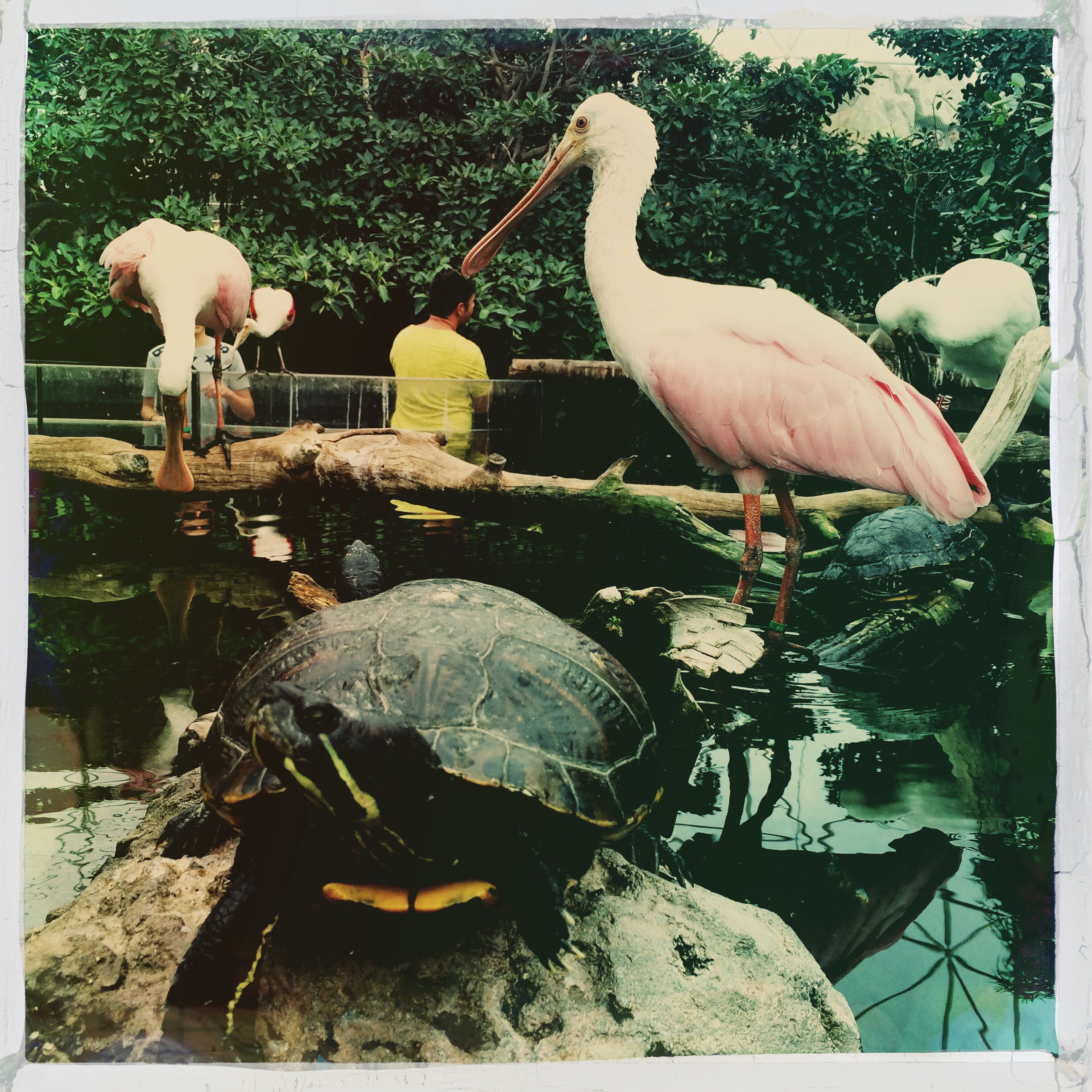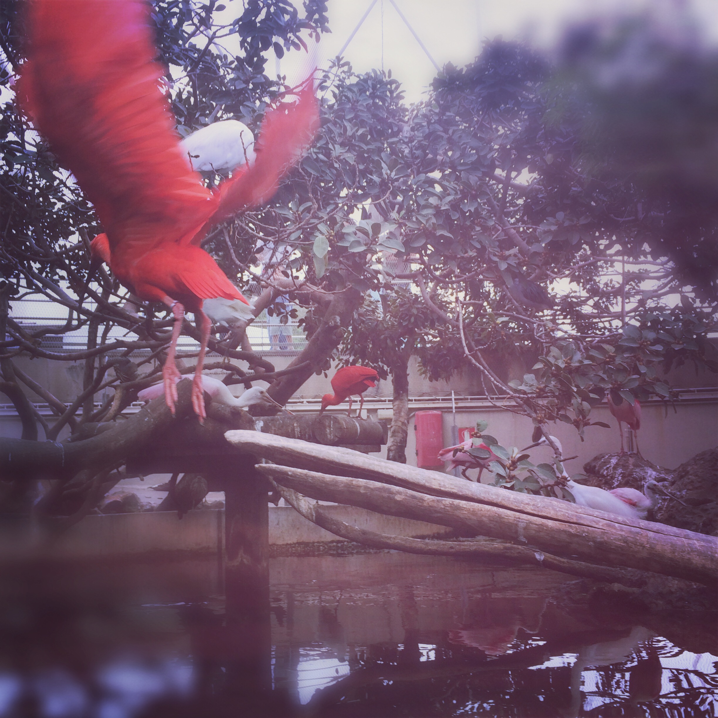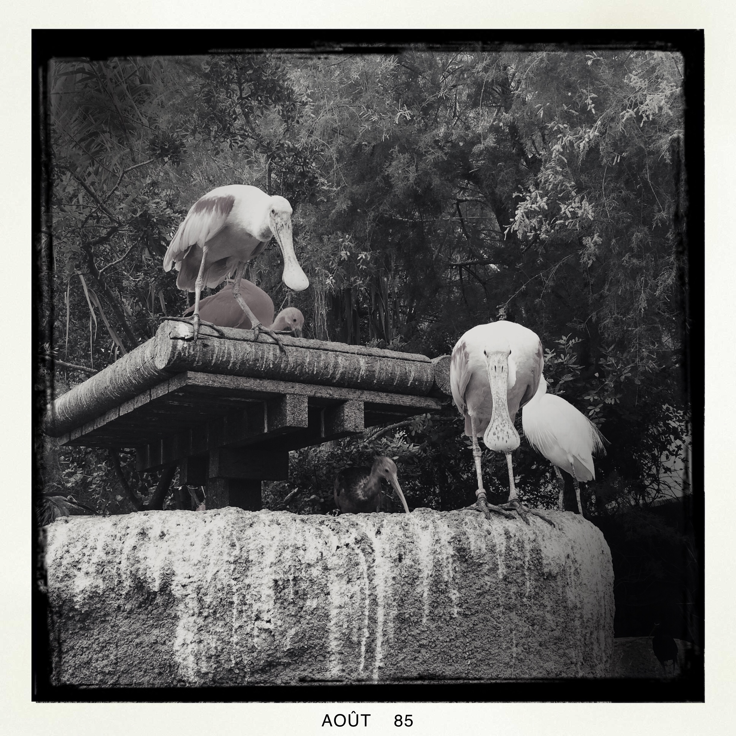 A la fin, il y a une volière, avec tout un tas d’oiseaux joyeux et rigolos, on pourrait les toucher tellement ils n’ont pas peur. Les spatules ont des têtes bien débiles, c’est très bien.
