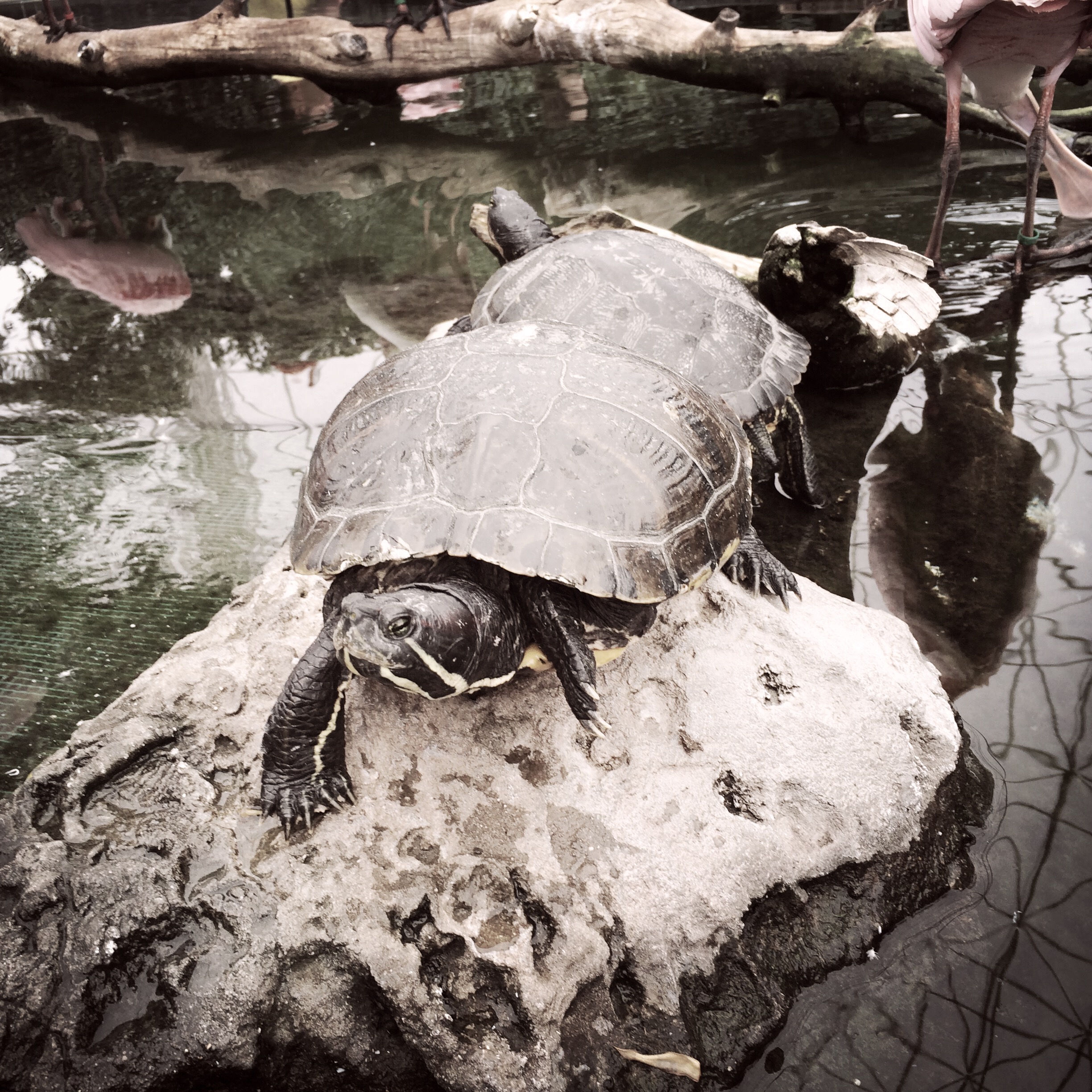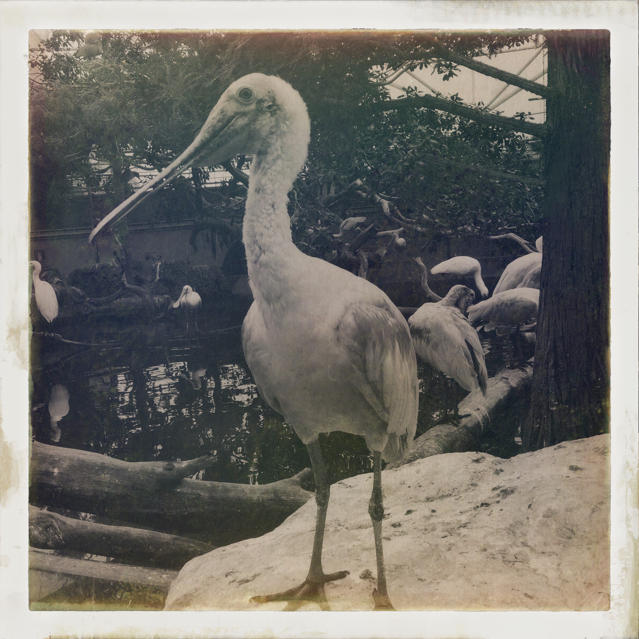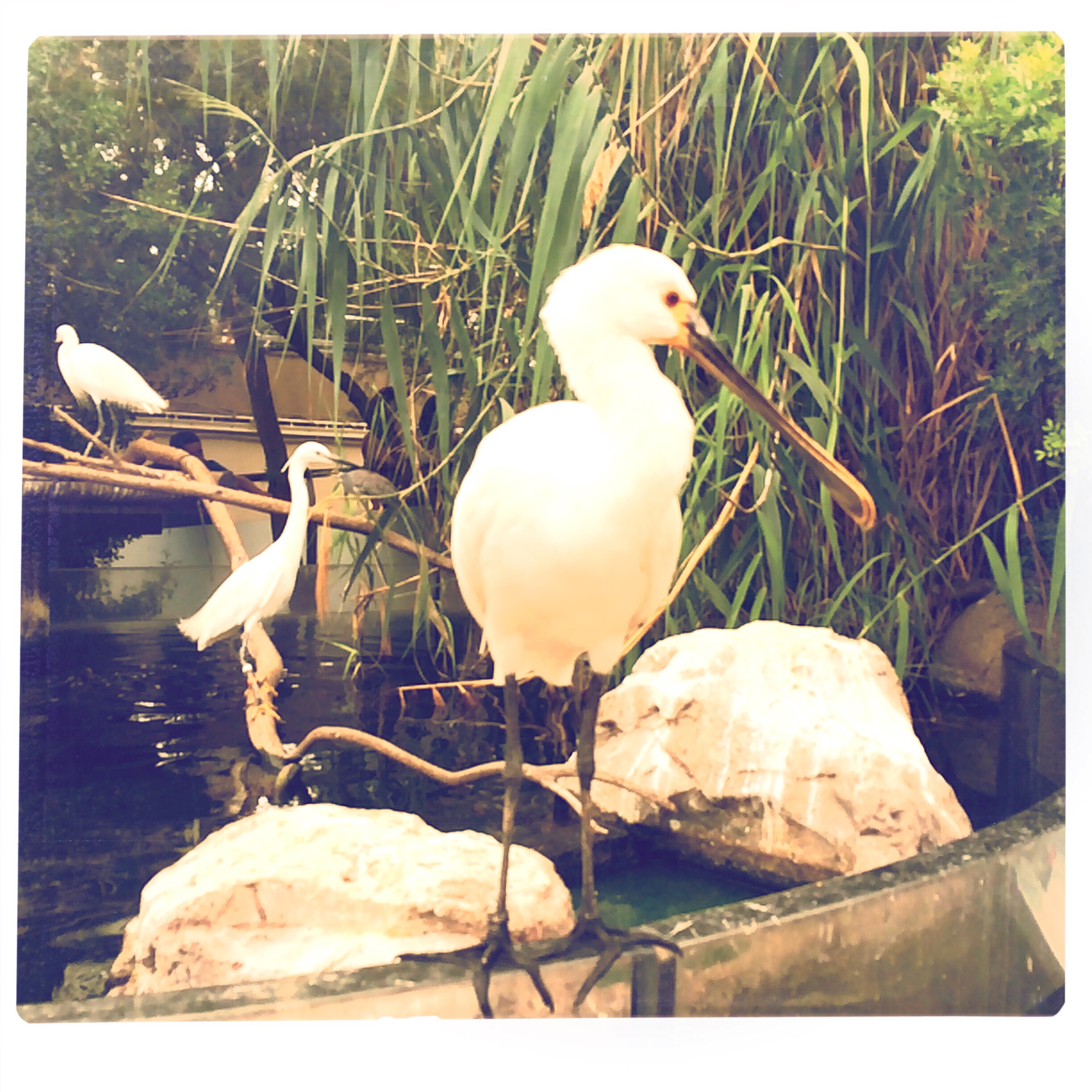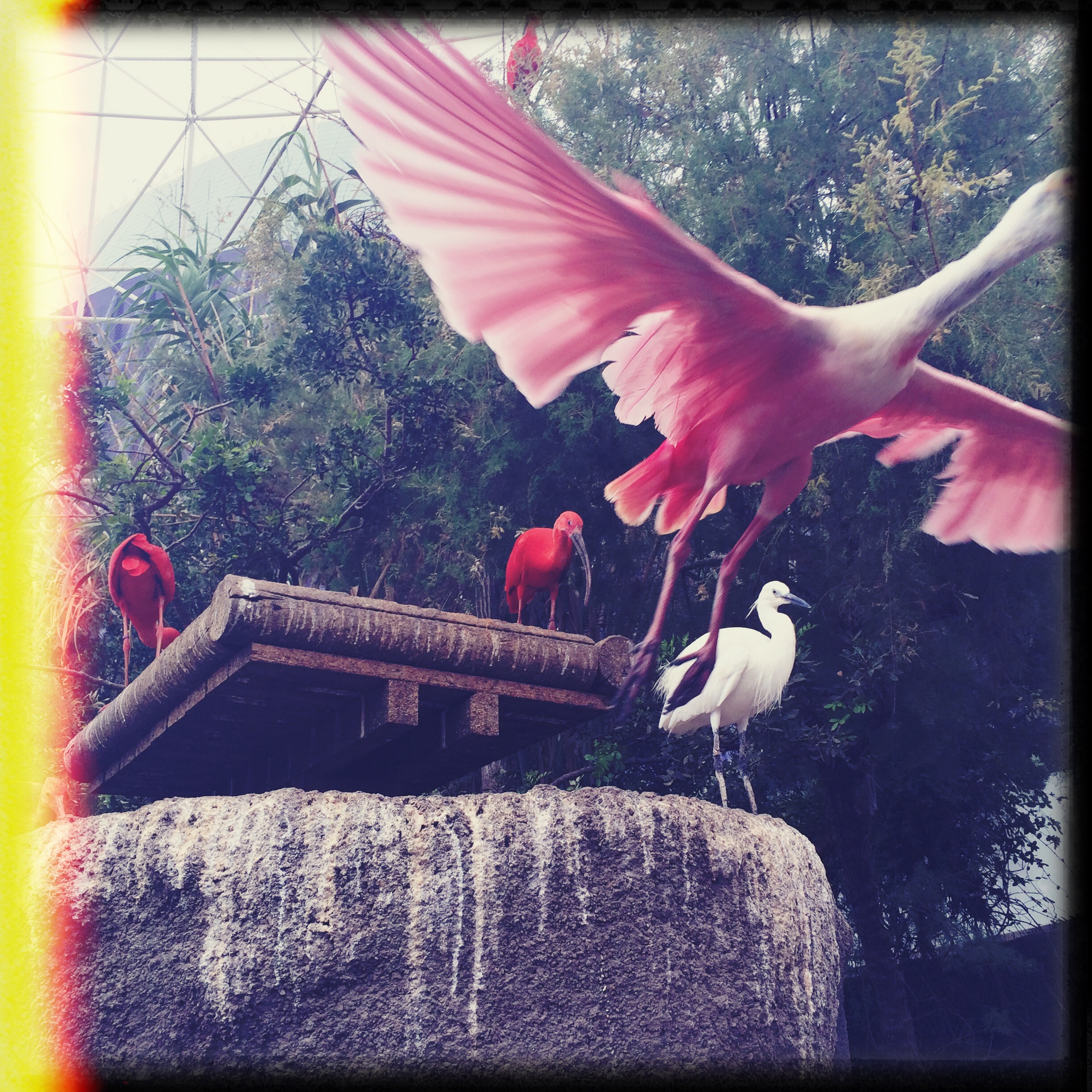 A la fin, il y a une volière, avec tout un tas d’oiseaux joyeux et rigolos, on pourrait les toucher tellement ils n’ont pas peur. Les spatules ont des têtes bien débiles, c’est très bien.