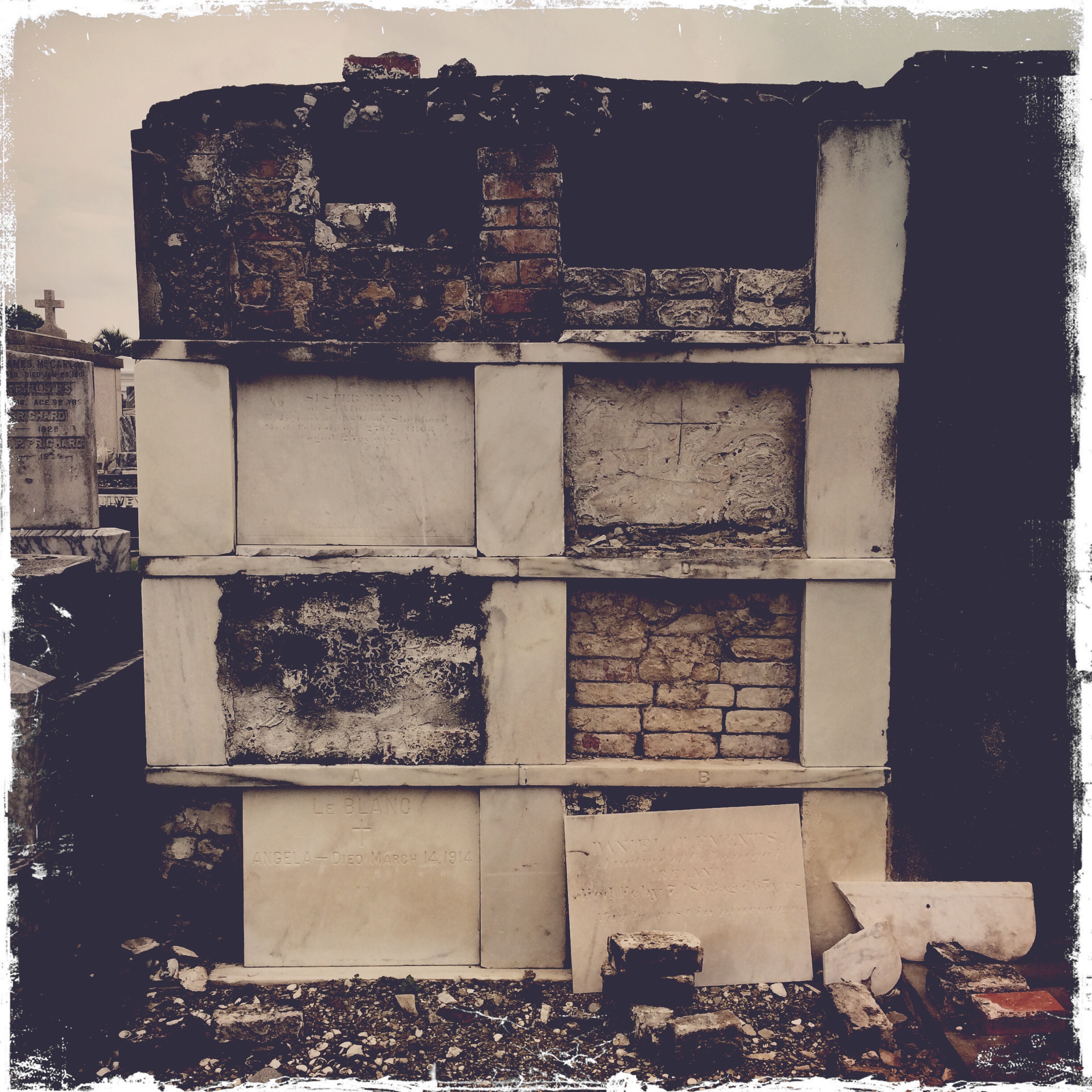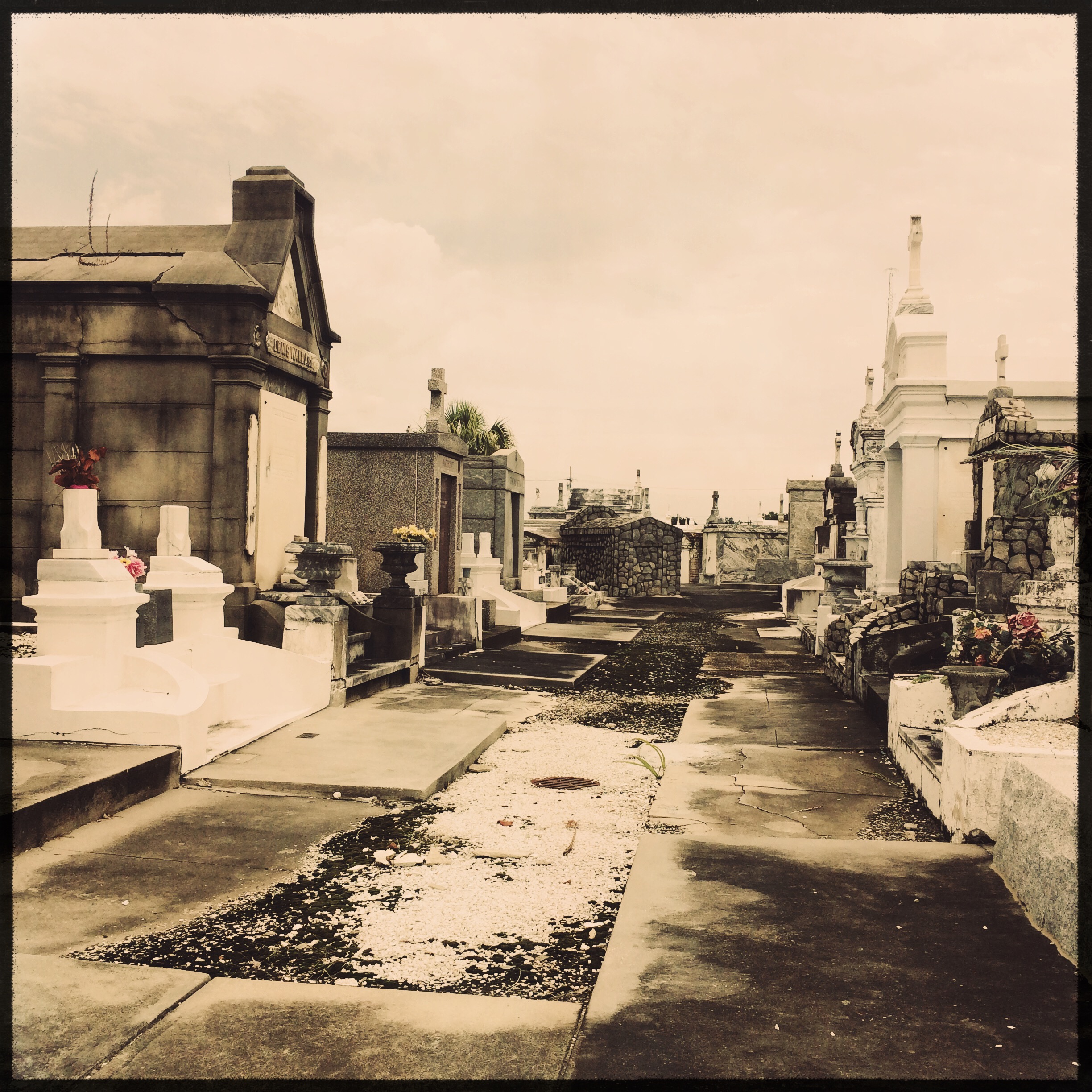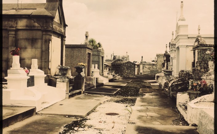 Les cimetières sont vides, aucun risque de déranger un chagrin. C’est très beau, il y a pas mal de tombes abimées, alors que les cimetières sont plutôt neufs. A New Orleans, les morts sont enterrés plutôt en hauteurs, à cause des inondations. Ca évite que les cercueils remontent et fassent du bordel.