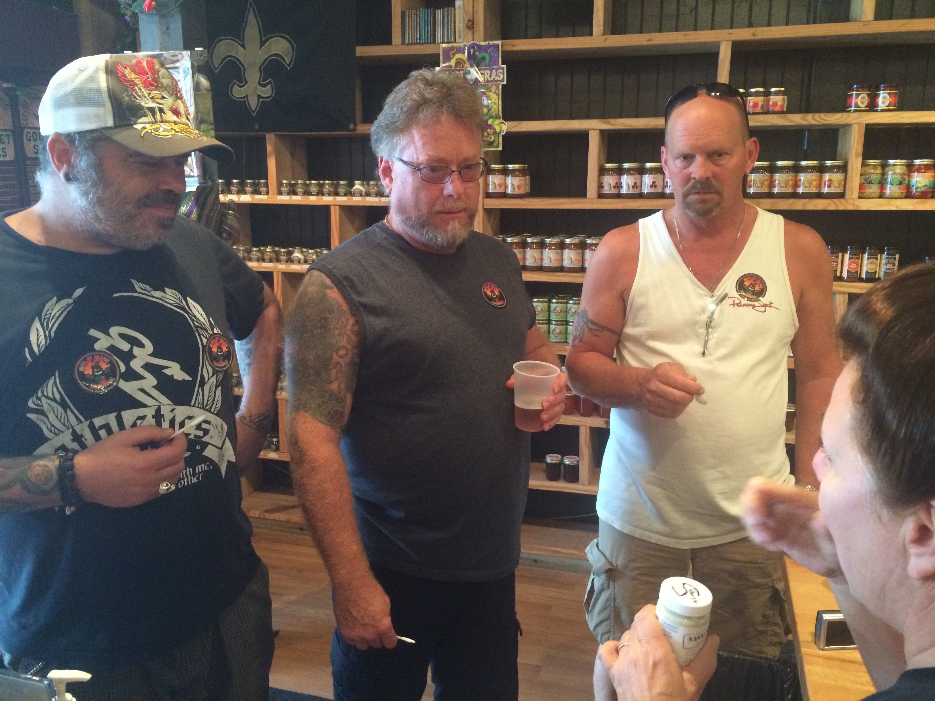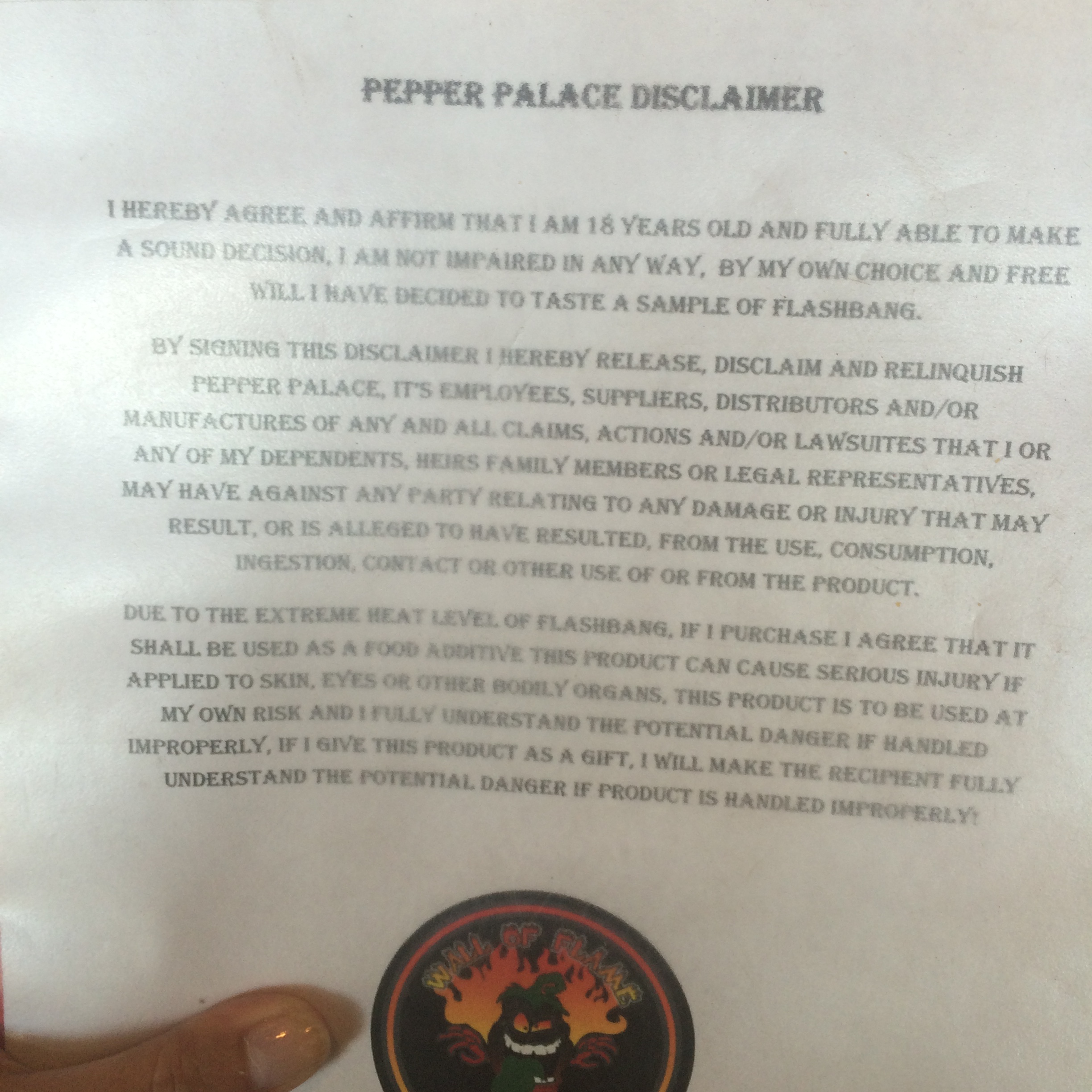 Il fait vraiment une drôle de tête, ça m’inquiète. Il sue pire que dehors alors que la clim est réglée sur 4 degrés. La dame m’explique qu’il a goûté la sauce la plus forte qui existe au monde. Il a signé un papier expliquant qu’il la goutait à ses risques et périls, et qu’il a bien plus de 18 ans. On va laisser le truc des contrôleurs du coup.
