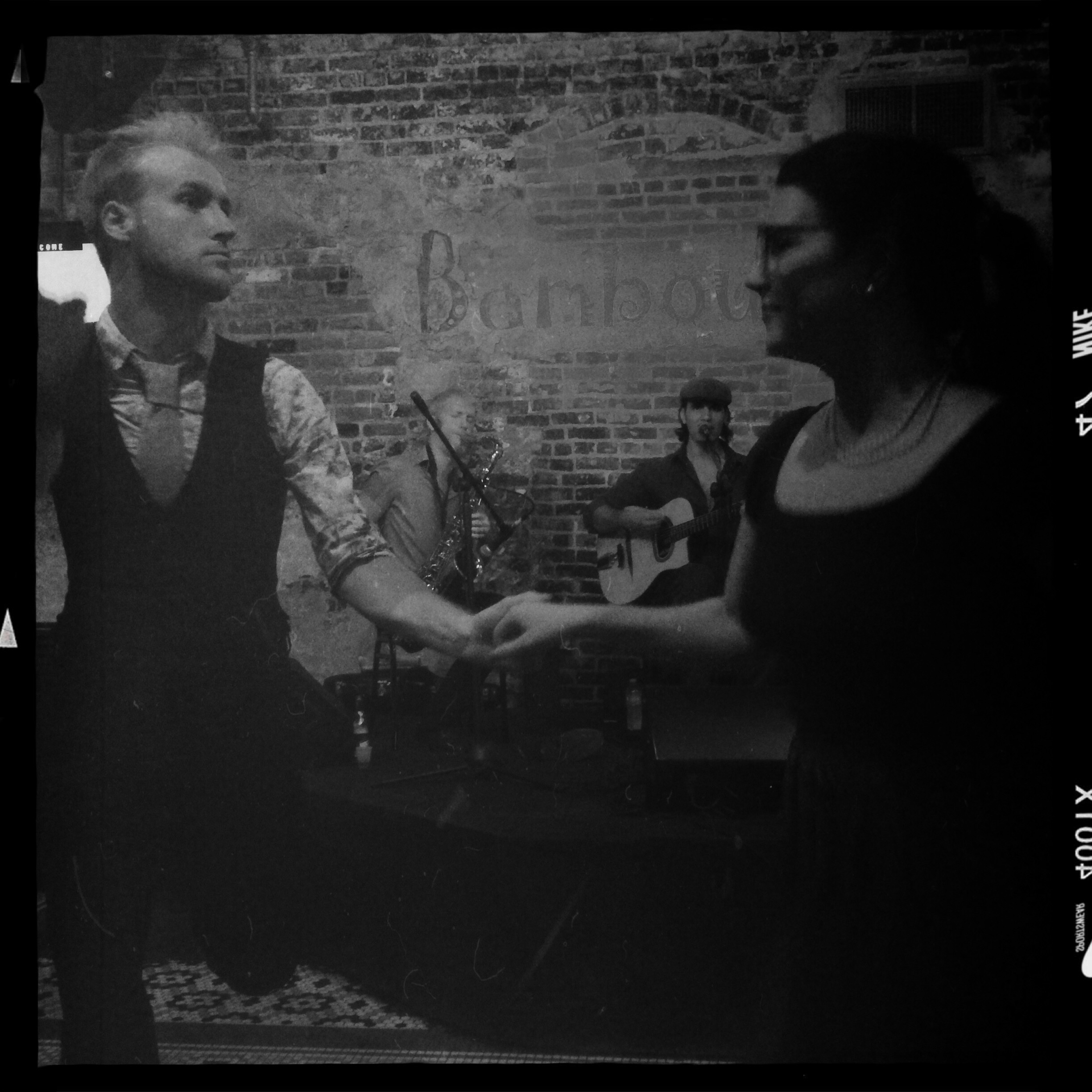Ils sont trois dans le groupe qui joue. Une trompettiste chantant, une guitariste chanteuse ULTRA douée, et un contrebassiste. Ils s’appellent les Messy Cookers Jazz. C’est vraiment chouette, ils sont jeunes et pétillants, ils jouent des vieilles chansons qu’on aime et qu’on connaît.