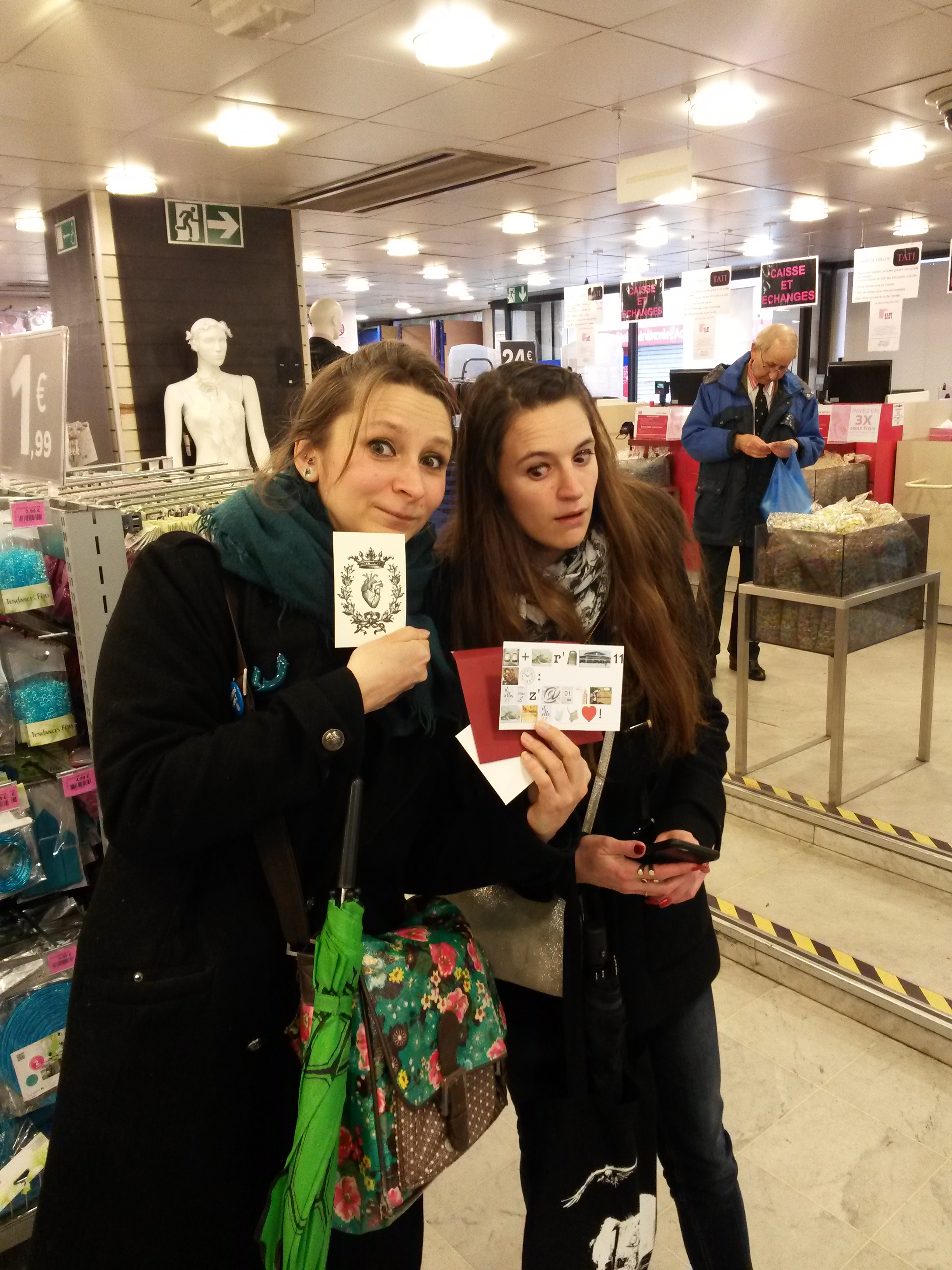 Alors on a erré quelques minutes, j’ai regardé les belles décorations qui brillent bien trop, les robes qui ne sont certainement pas ignifugées, et quand soudain, au détour du rayon « chemin de table en rotin luisant », Marie nous attendait. Hihi.