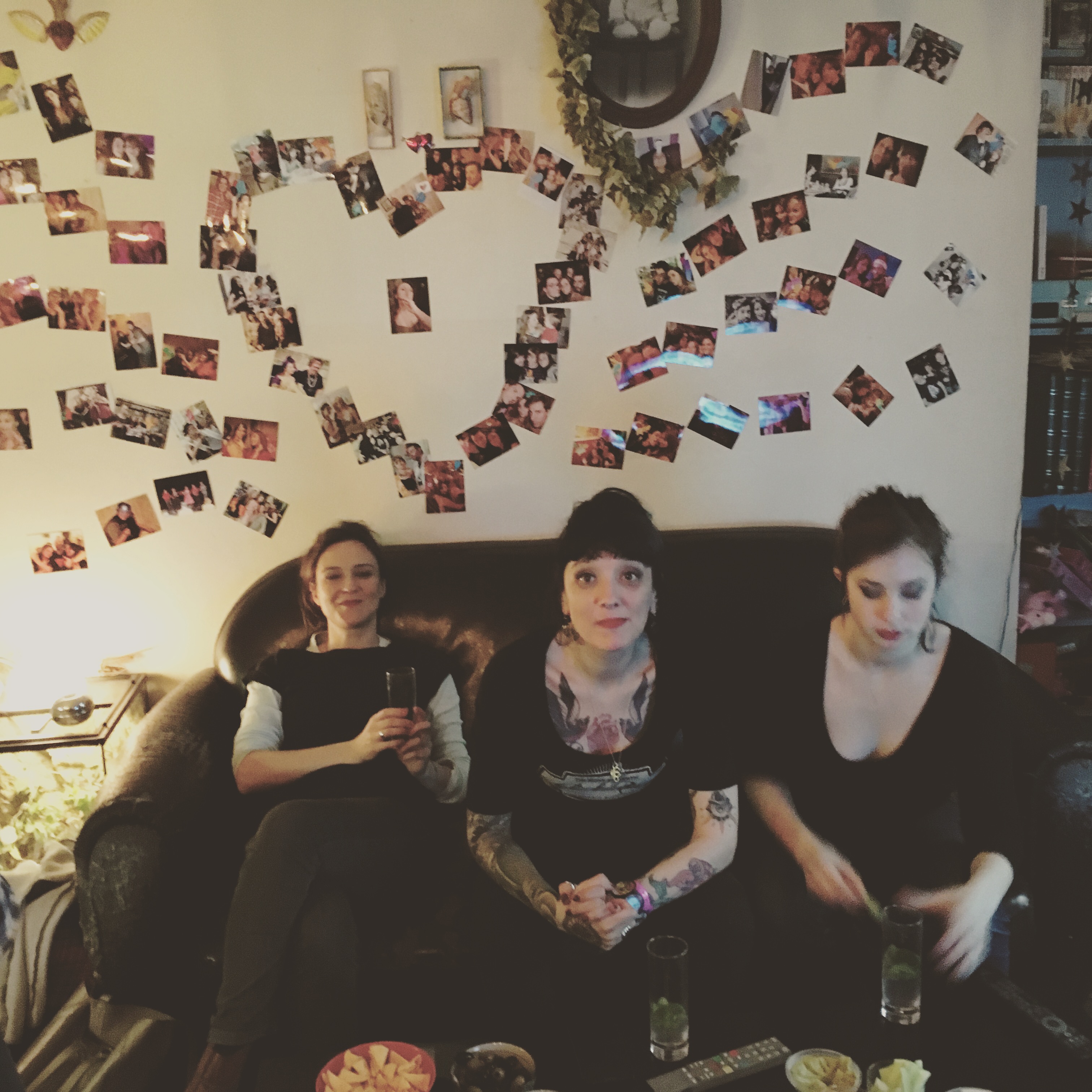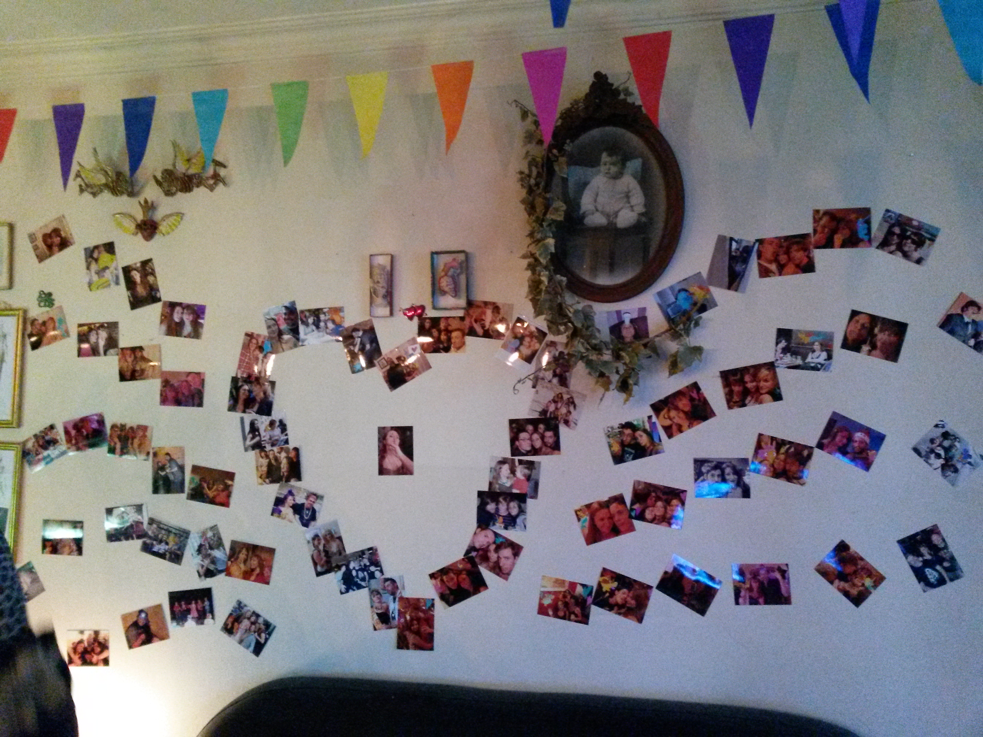 On passe une porte, on grimpe un escalier, qui est effectivement familier. On est bien chez moi, j’entends une musique, on m’enlève mon attirail, je suis éblouie par la pénombre, et je découvre que les garçons ont décoré l’appartement avec plein de photos, les mojitos sont prêts, Singstar est branché, il y a des tas de trucs à manger, la vieille et fine équipe est au complet. (pour mémo : il fut un époque où nous faisions des soirées Singstar (c’est un jeu vidéo pour chanter), quasi une fois par semaine ou presque. Et puis le temps passe, et les emplois du temps se remplissent, on s’aime toujours autant, mais on a moins le temps.)