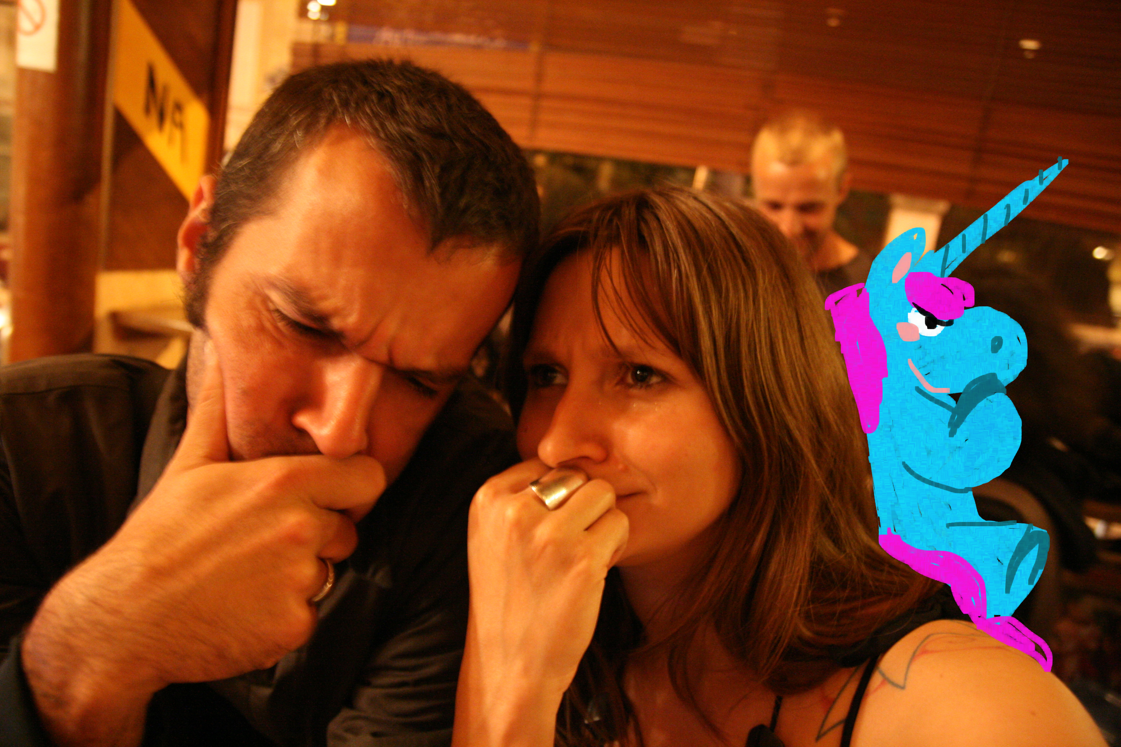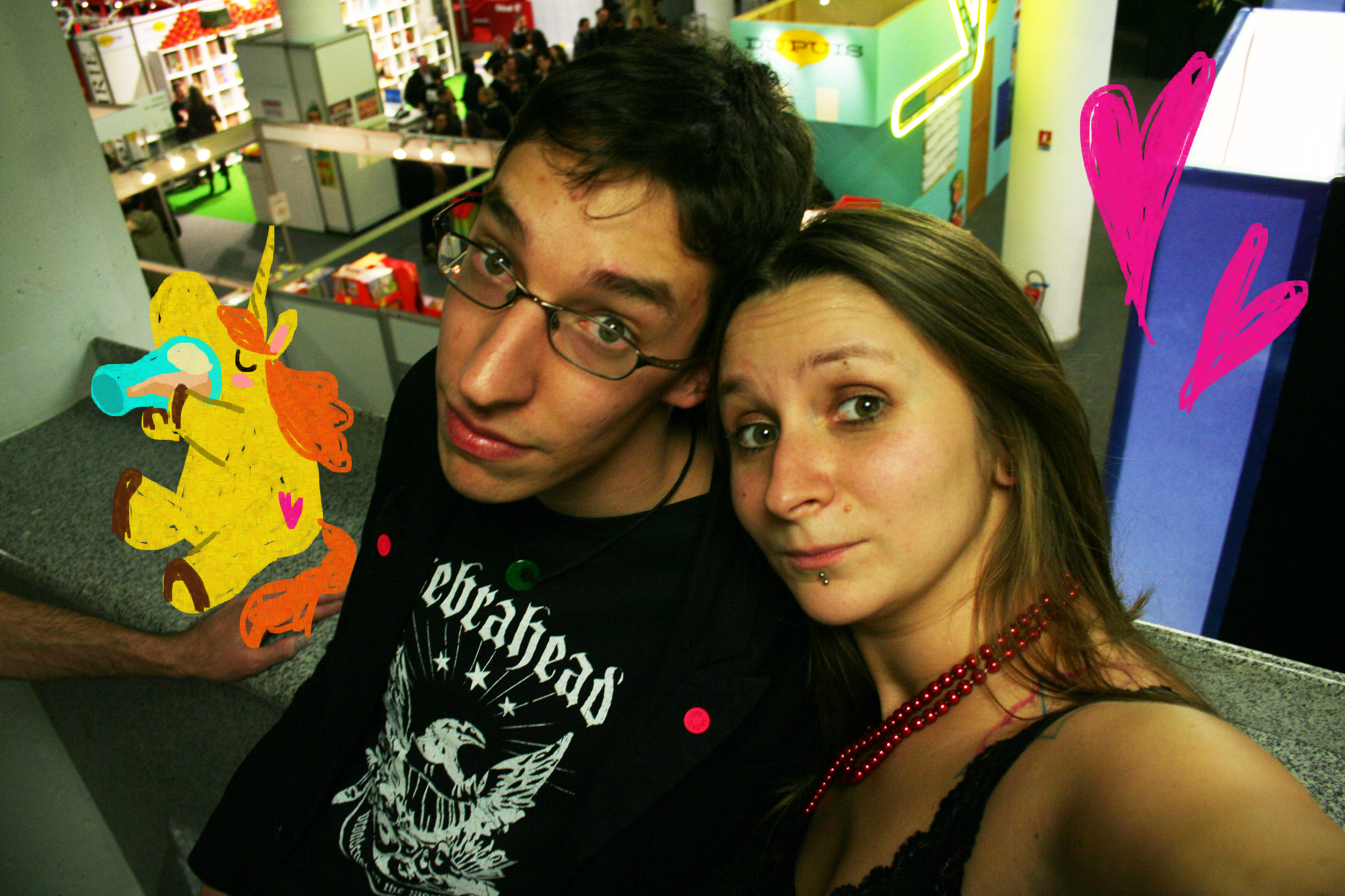 J’ai pu prendre le temps de regarder les photos sur les murs : sur presque toutes, Marie a dessiné des licornes ! Des licornes qui font des blagues et des bêtises, c’est tellemeeeeent une bonne idée. J’ai d’ailleurs dit qu’il faut qu’on monte un site internet « Pimpyoupictureswithunicorns.com ». On va devenir riche.