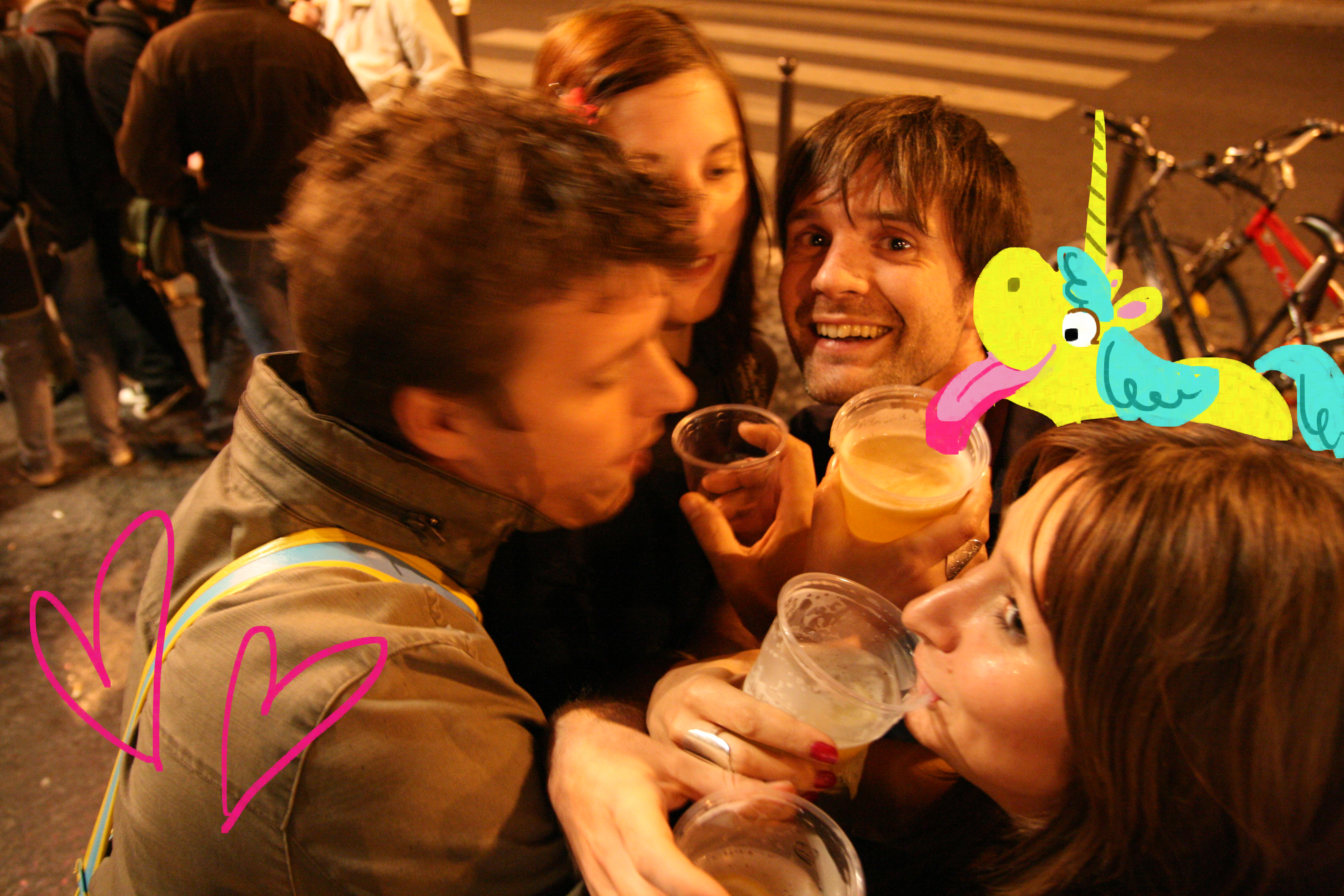 J’ai su et vu après que les gens de la rue et du métro ont posé sur des photos avec moi. Je suis au milieu, et ils font les andouilles autour, très enthousiastes. Huhuhu. J’ai donc tout un tas de photos avec des inconnus qui rient pendant que je me pose des questions sur la théorie du néant.