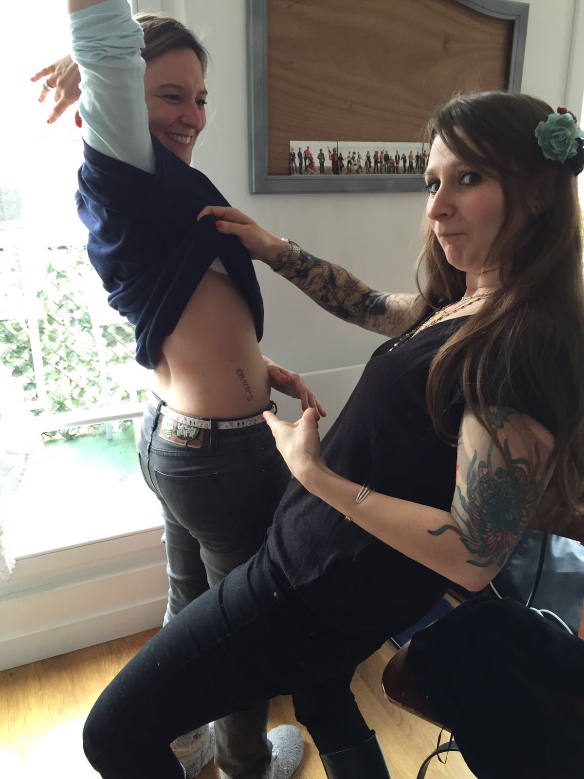 De retour au bar, la photographe a remballé son matériel, nous a demandé si nos amoureux étaient des motards (à cause des tatouages, pas de nos démarches) et le gentil monsieur du bar a proposé d’en ramener une en moto. On a fait hihi haha hoho, et hop we go.