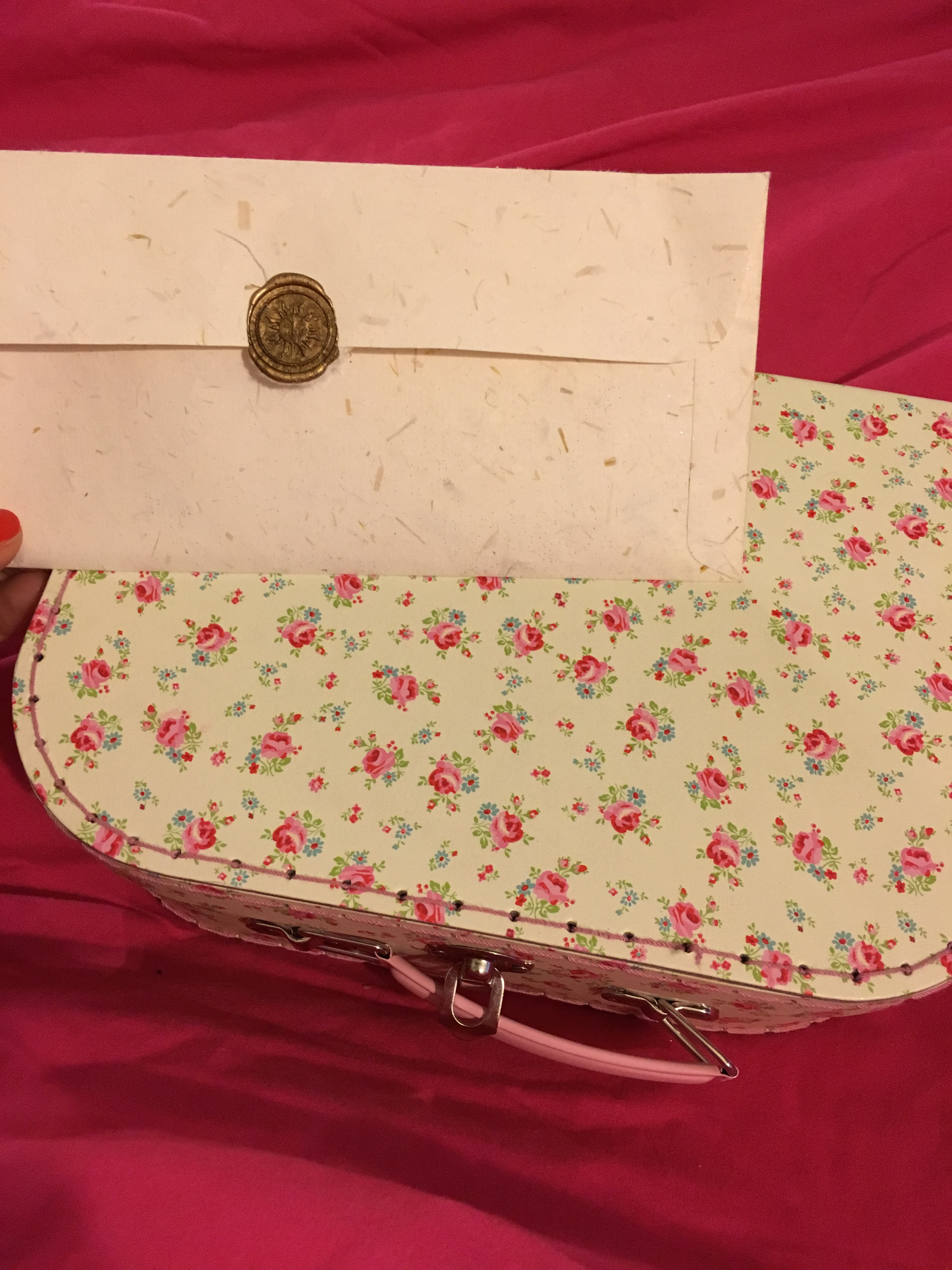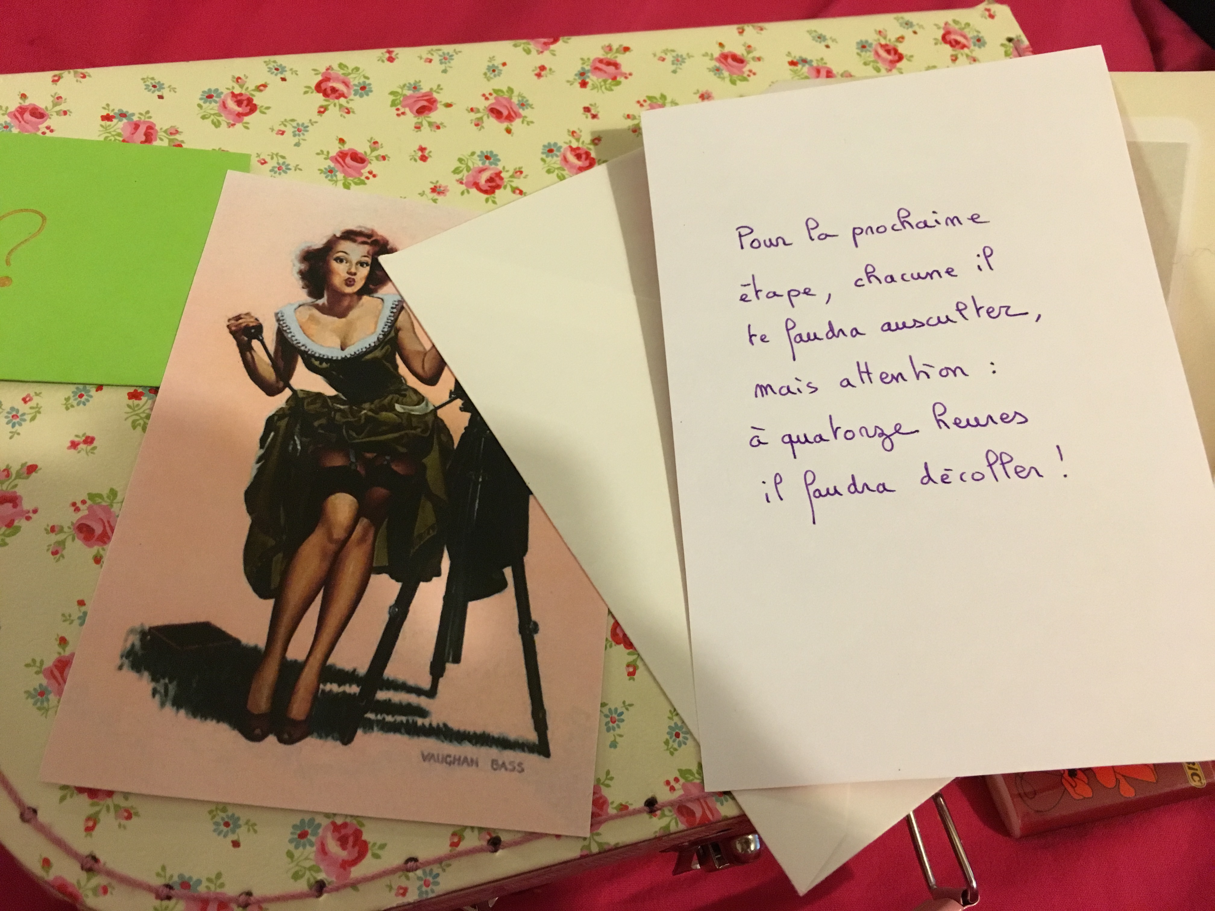 Margaux sonne à 9h. elle me confie une ravissante mallette à fleurs. Je l’ouvre. Dedans, le nécessaire à journée.
