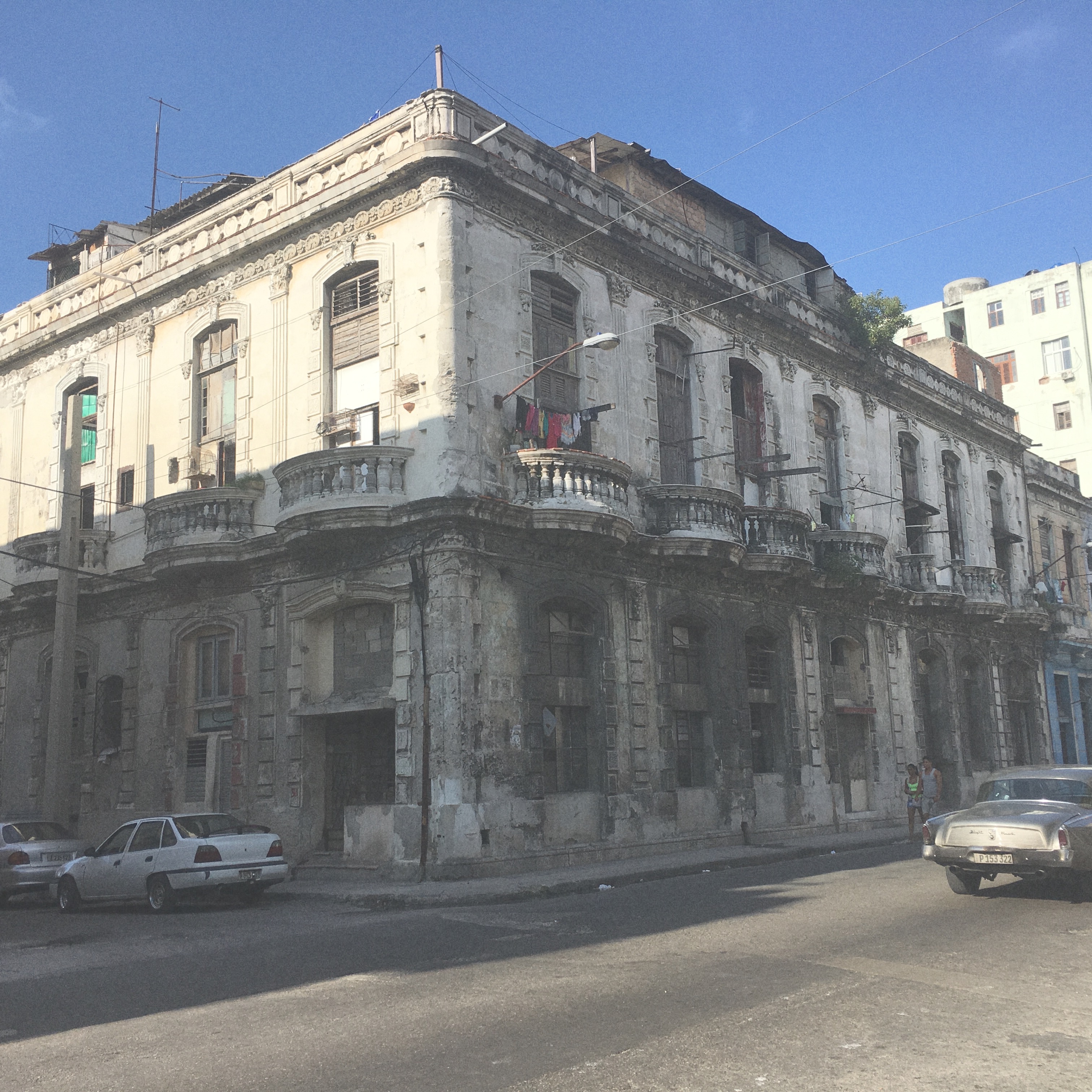 Ce que nous pensions être la vieille Havane ne l’était pas, mais nous y voilà. Bâtiments grandioses, touristes et vieilles voitures. C’est le quartier qui rassure. La dose d’abimé, les bars plus chic, du maintenu en vie, un peu mieux qu’il y a quelques mètres. Pas vraiment de client cubain dans les rades et les restaus, par contre. Mais de fait, c’est beau, très. Un théâtre abandonné me bouleverse tout particulièrement. Je prends une photo de l’intérieur au travers d’une fenêtre écroulée. On aperçoit les balcons, tout est envahi par la végétation, c’est incroyable, magnifique et si étrange, car dernière nous, le Capitole est flambant neuf (réplique du Capitole ricain…)