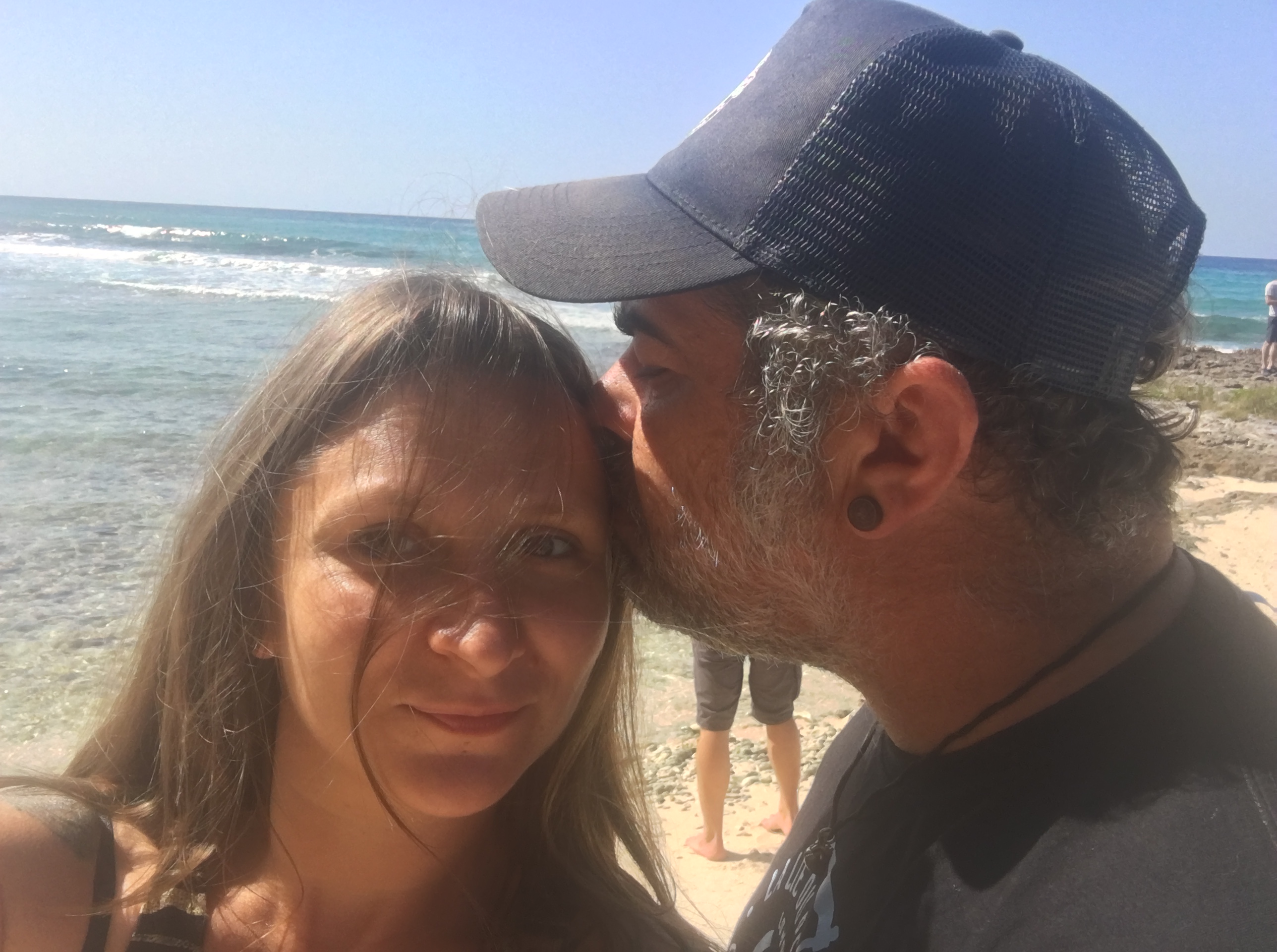 Une pause bière, puis quelques km plus loin, une pause station service. Les garagistes regardent notre nouveau pneu en rigolant et disent « mierda », je fais mieux l’océan que je ne parle espagnol mais je pense que notre pneu de rechange est un peu pourri.