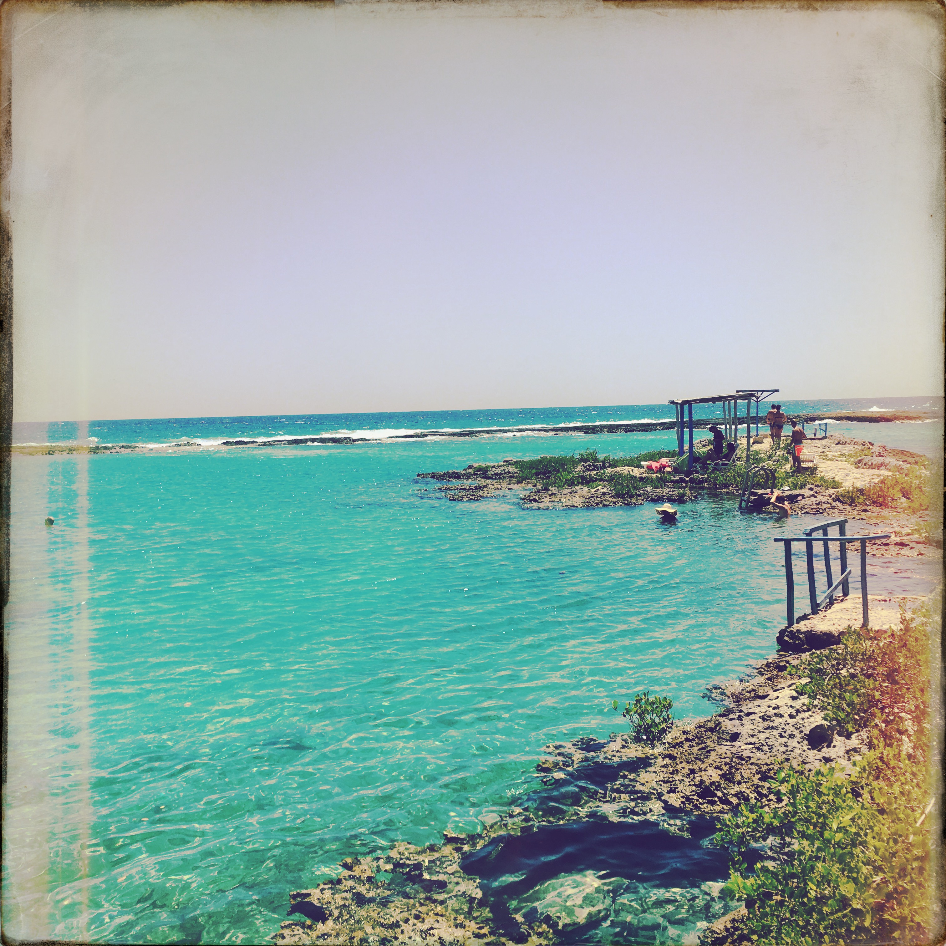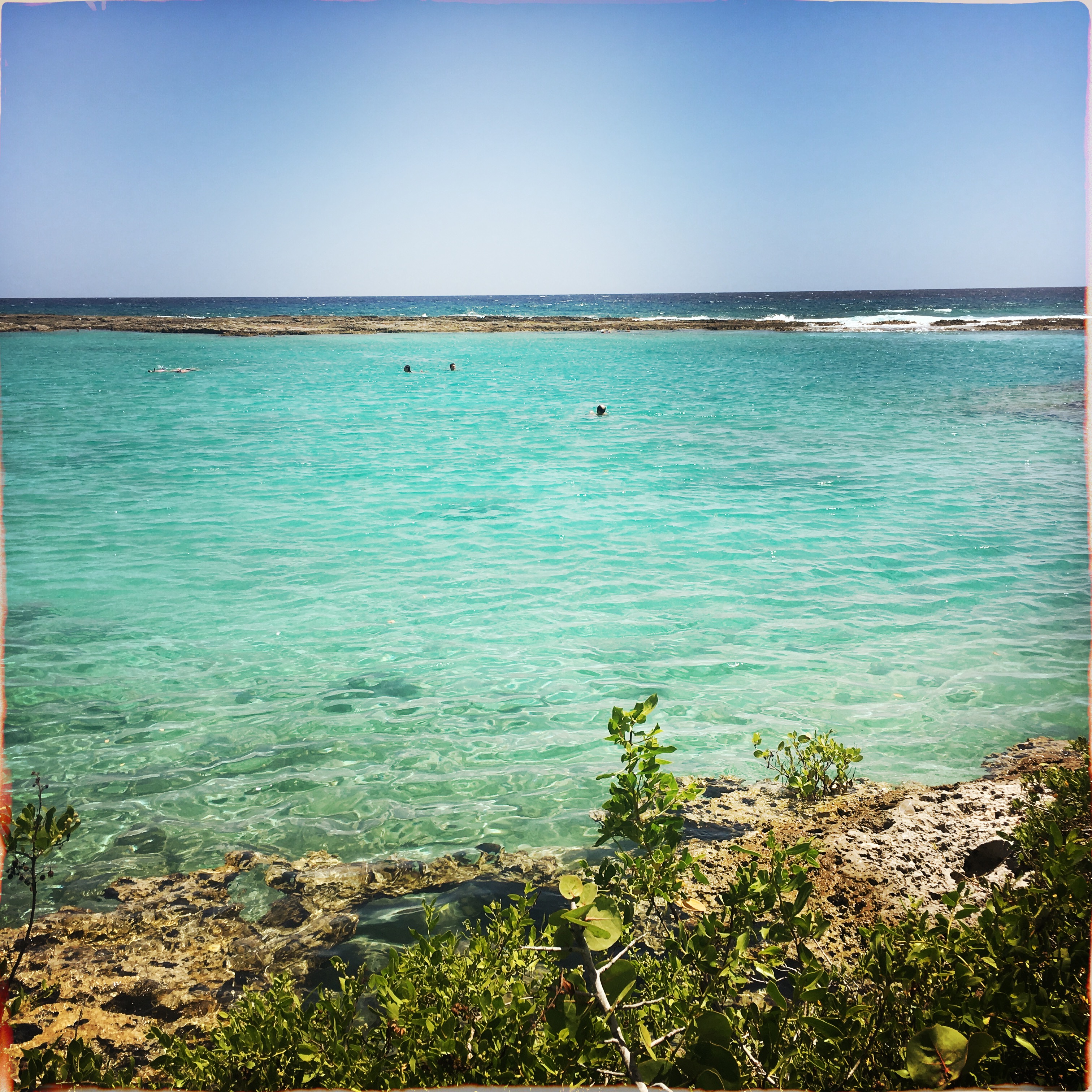En plus, il y a une sorte de piscine naturelle, où l’océan rentre par un mini tunnel sous marin, qui est rempli de poissons de tailles tout à fait honnête. (pas des guppys, plutôt des beaux gros jambons.). L’eau y est plus fraiche, c’est excessivement agréable. Nous sommes loin de poubelle-plage. Ca peut paraître snob, j’en sais trop rien, mais de fait, c’est très apaisant d’être ici, près de l’eau bleue parfaite.