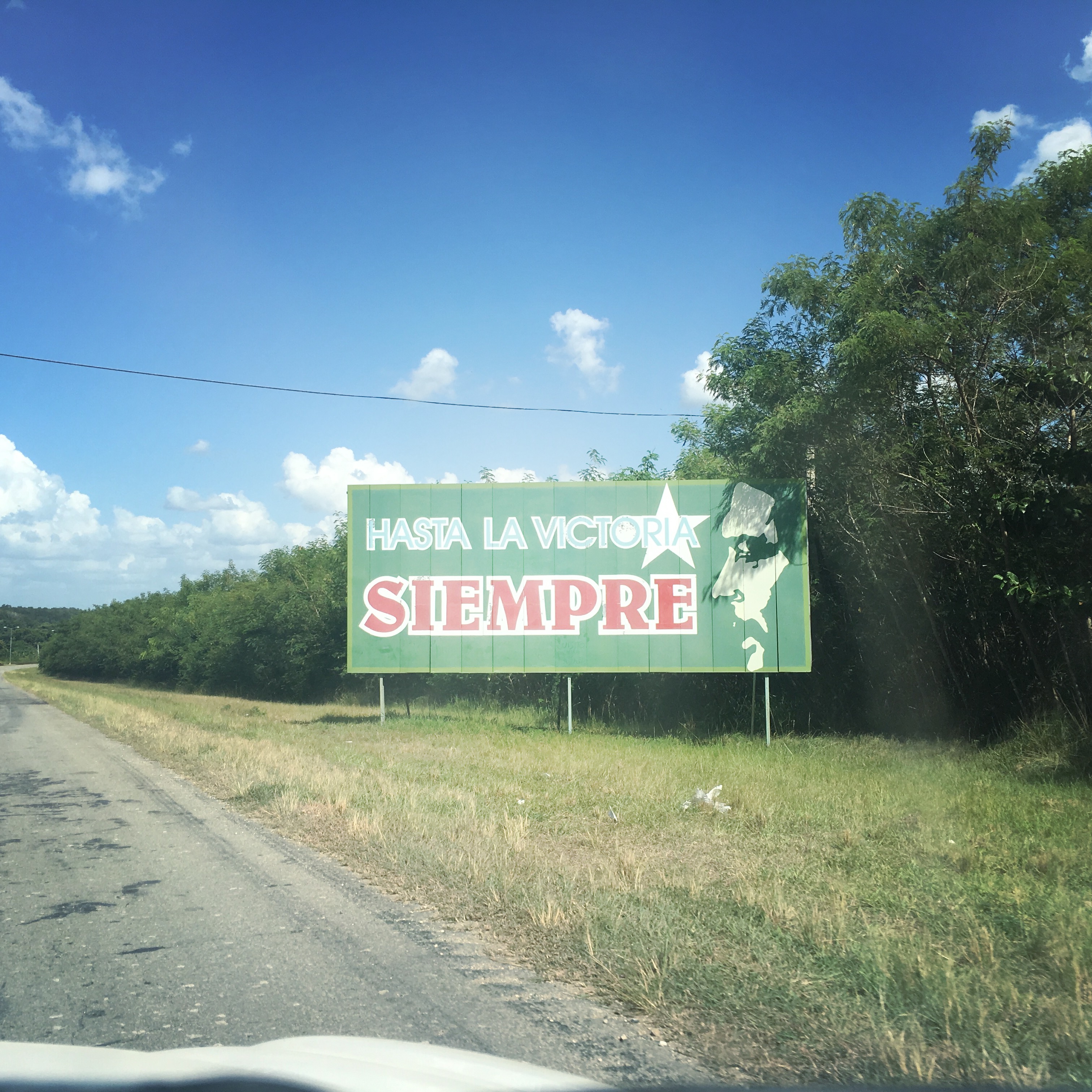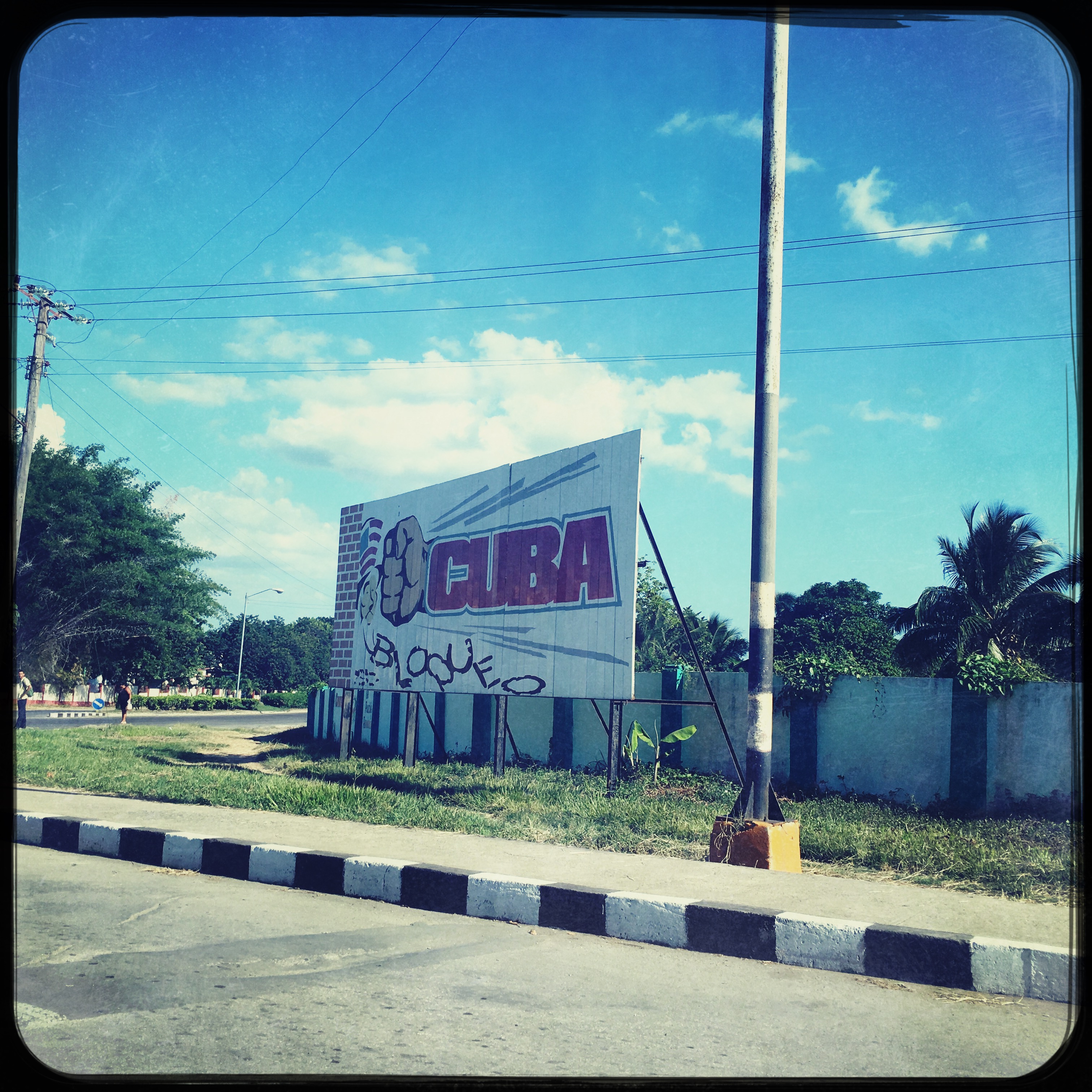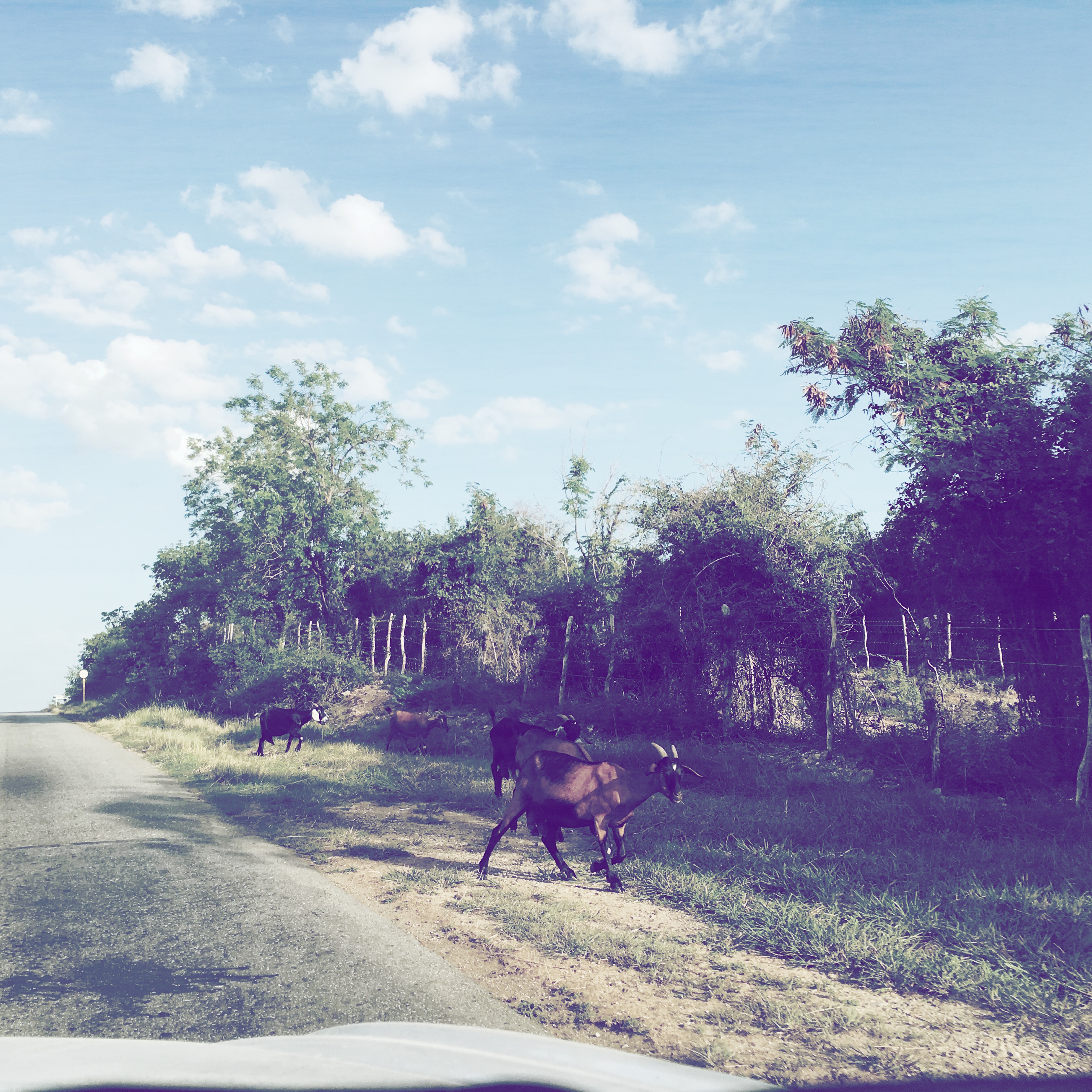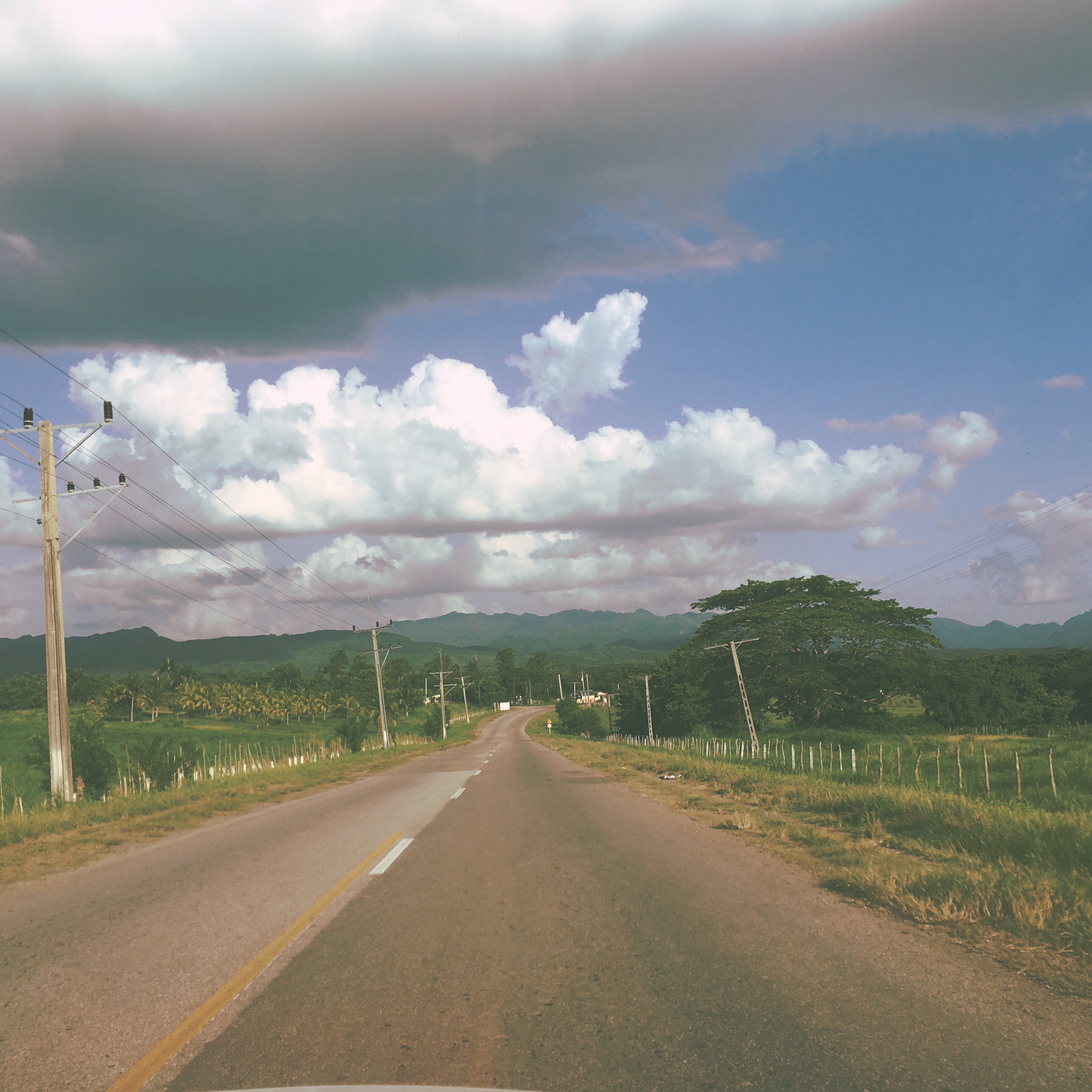 Ce qui devait arriver arriva. Enfin non, ça n’aurait pas dû, mais hé. Sur la to do list : crève un pneu à Cuba : c’est bon, c’est fait. En entrant dans Cienfuegos, un type en bagnole nous fait signe, force est de constater que le pneu avant droit est à plat. Arrête au bord de la route comme on peut. Il y a bien un pneu neuf dans le coffre. A trois, ils ont sué sang et eau pour faire monter notre voiture chinoise sur le cric chinois. La barre se tord, tout est retors. 20 minutes plus tard, le pneu est changé, tout le monde est un peu fier (moi moins, je me suis contenté de lire le contrat pour voir ce que ça allait nous coûter, je n’ai pas trouvé), et tout monde sent un peu mauvais. ❤ Hihi. On reprend la route, en écoutant chaque grincement de la voiture. Je pense que silencieusement, on se dit tous que la voiture en plastique appelée Geely va tomber en morceau au prochain carrefour. On met de la musique pour couvrir les bruits louches.