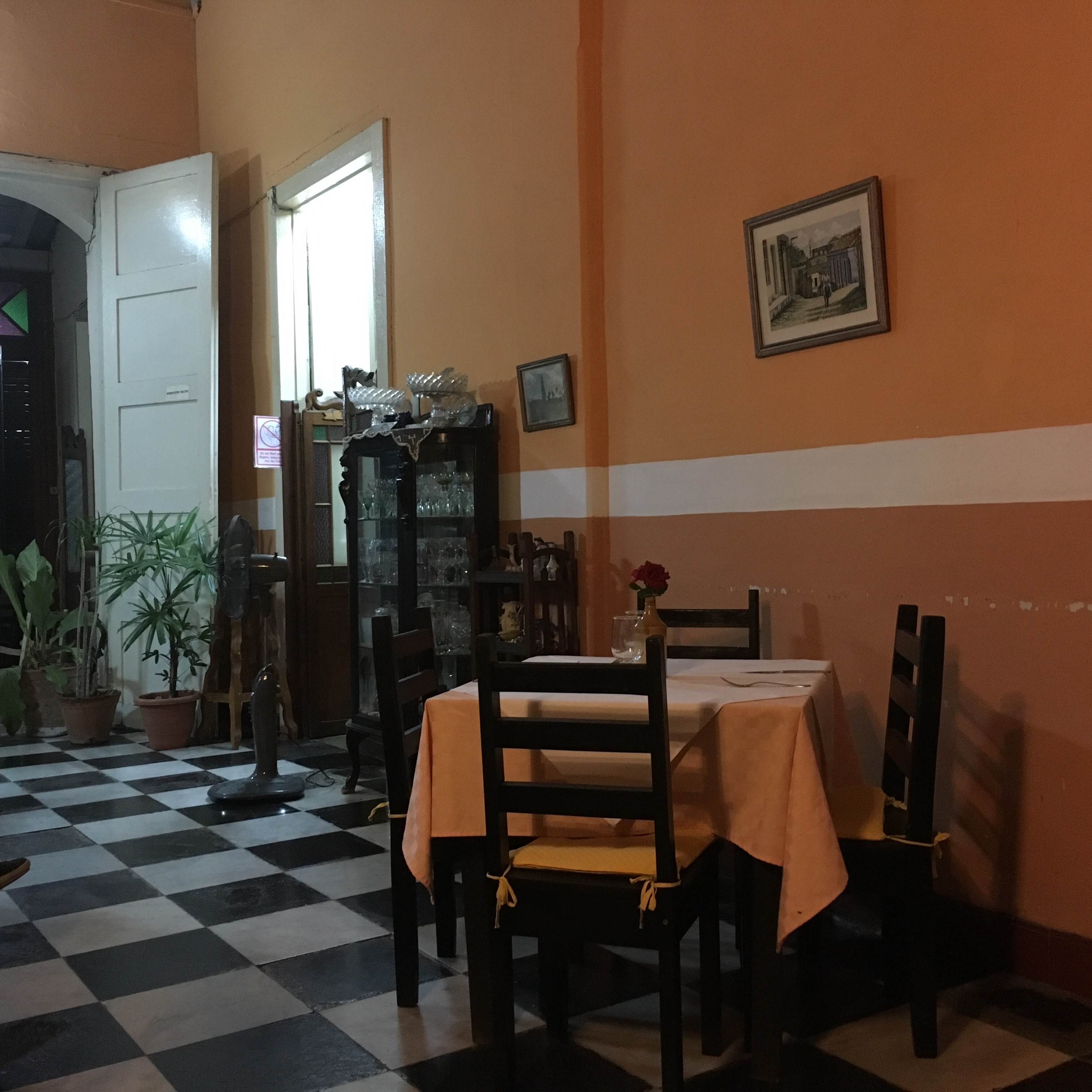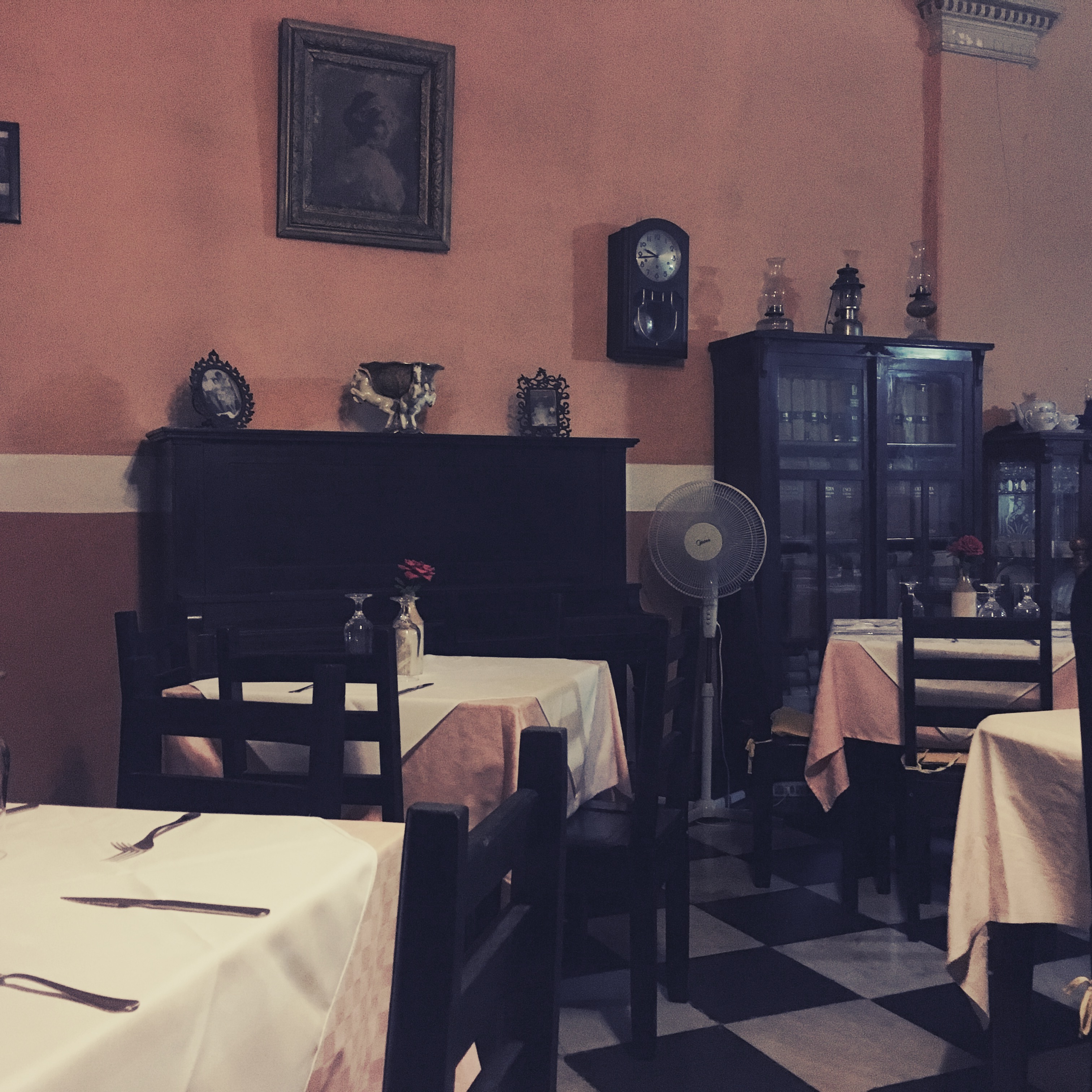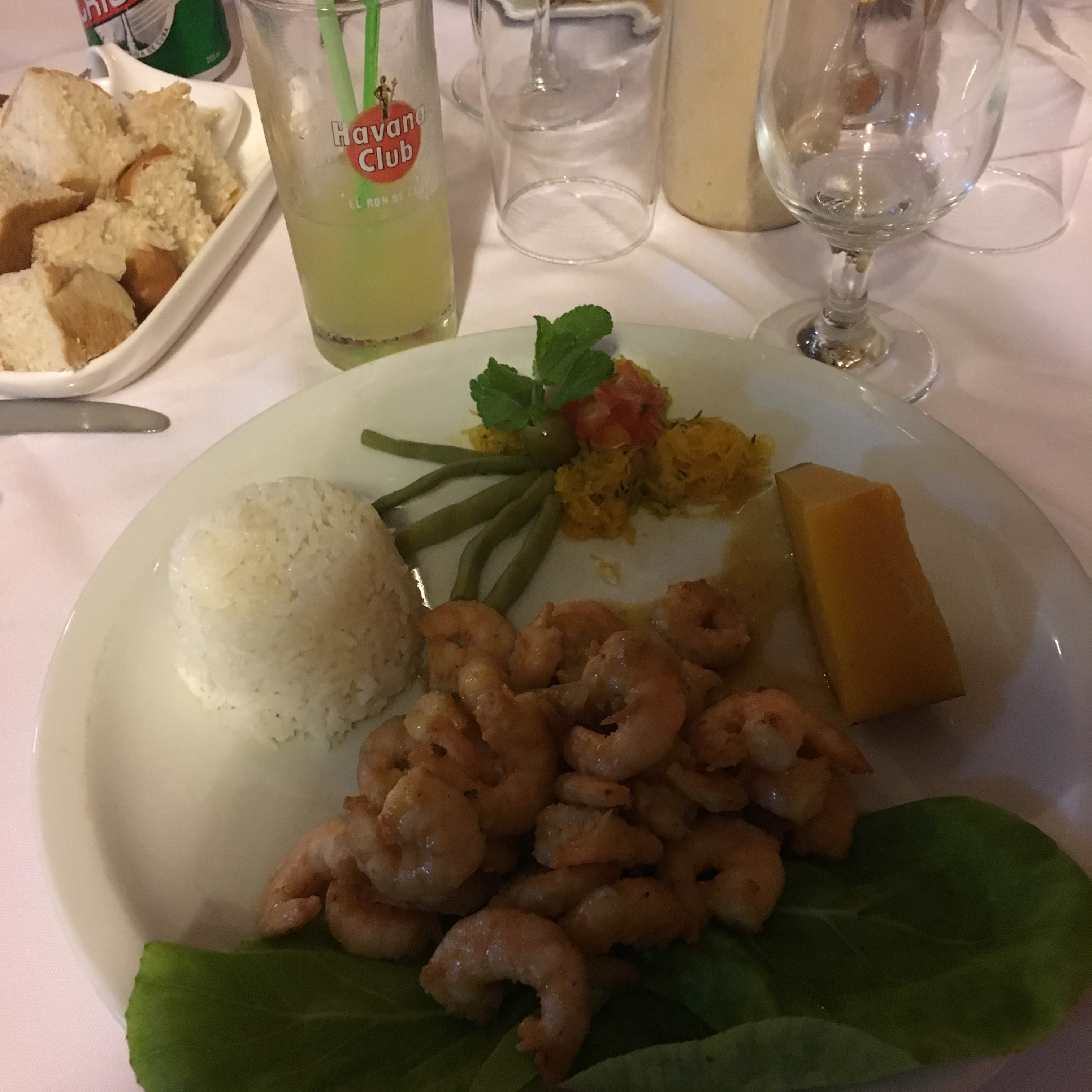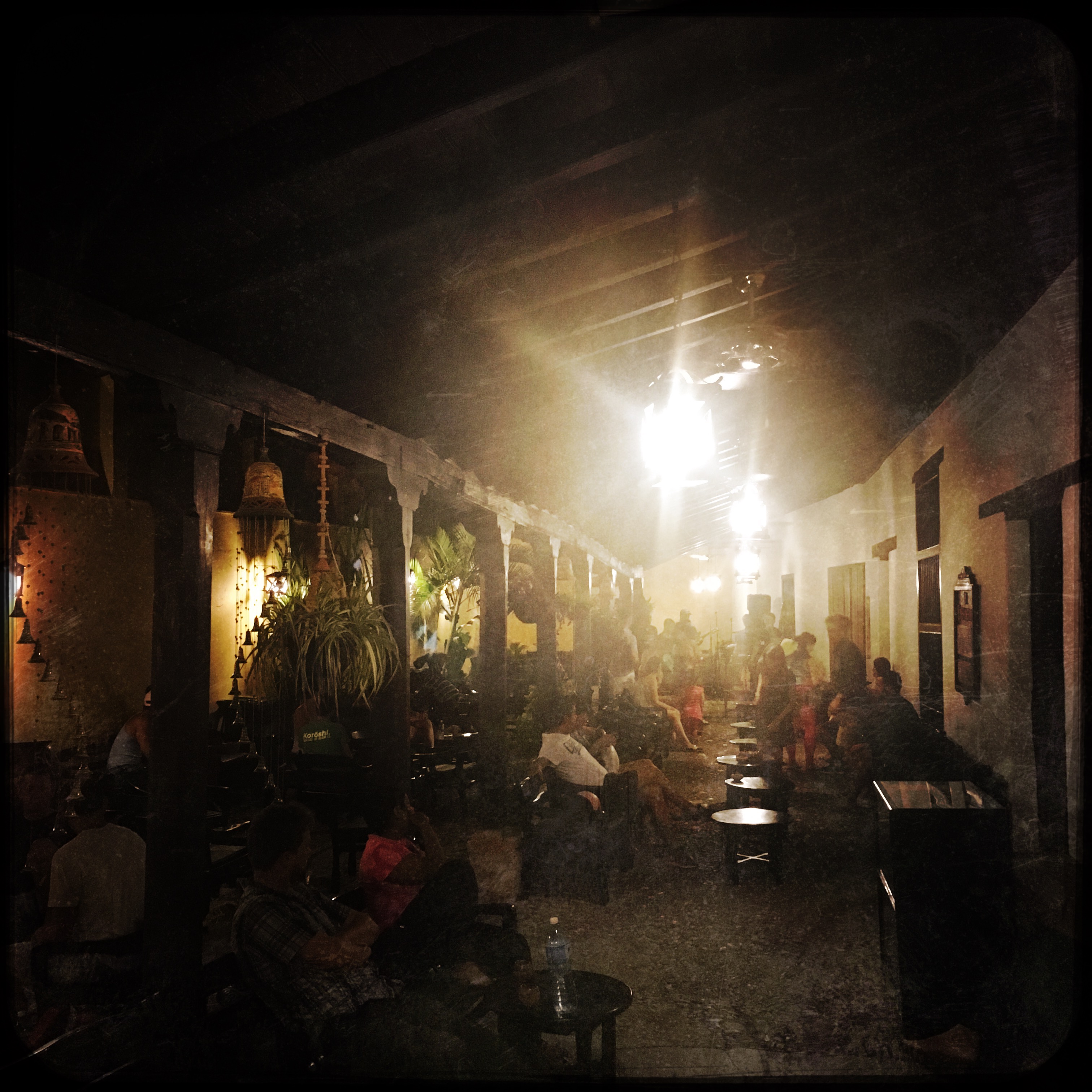 Le restau est effectivement très sympa, je prends le cocktail canchachara (normalement servi dans un petit verre en terre cuite, mais pas là), Manu une margarita. Le restau, c’est également une vieille maison coloniale, chaque objet raconte une histoire, c’est très haut de plafond, il y a même un piano. On mange des crevettes délicieuses, je prends même un dessert (du flan en caramel, avec de la glace). Ce qui certainement fut une erreur, car j’ai l’impression d’avoir avalé seize baleines.