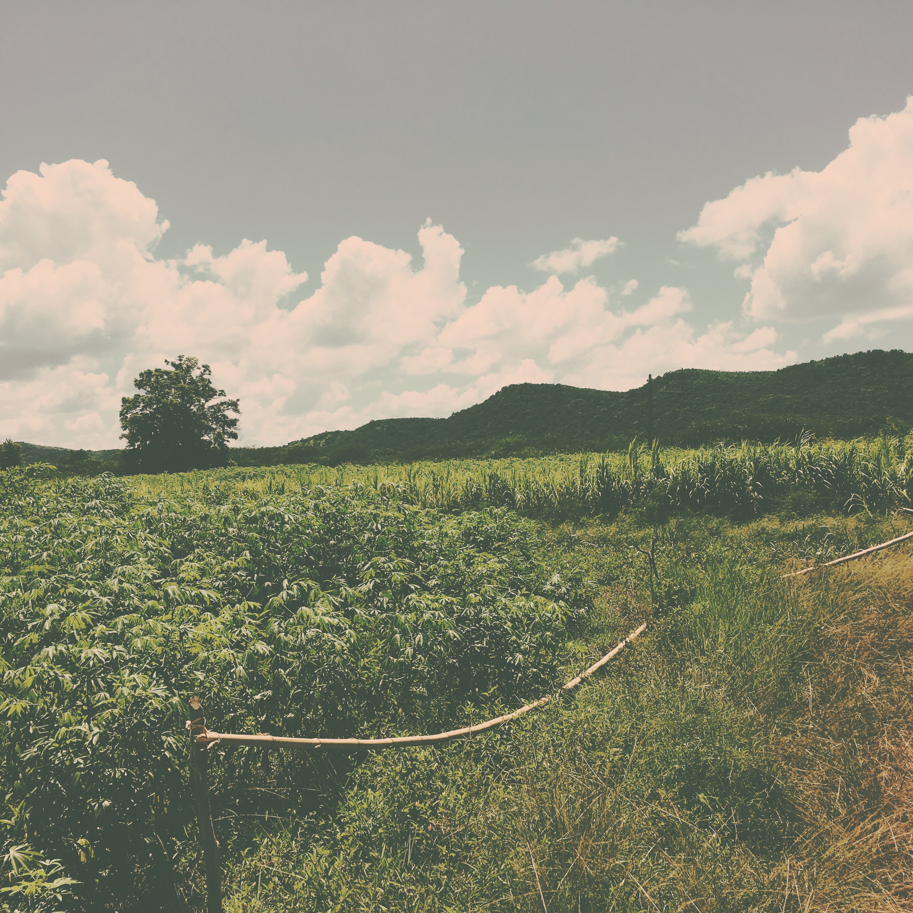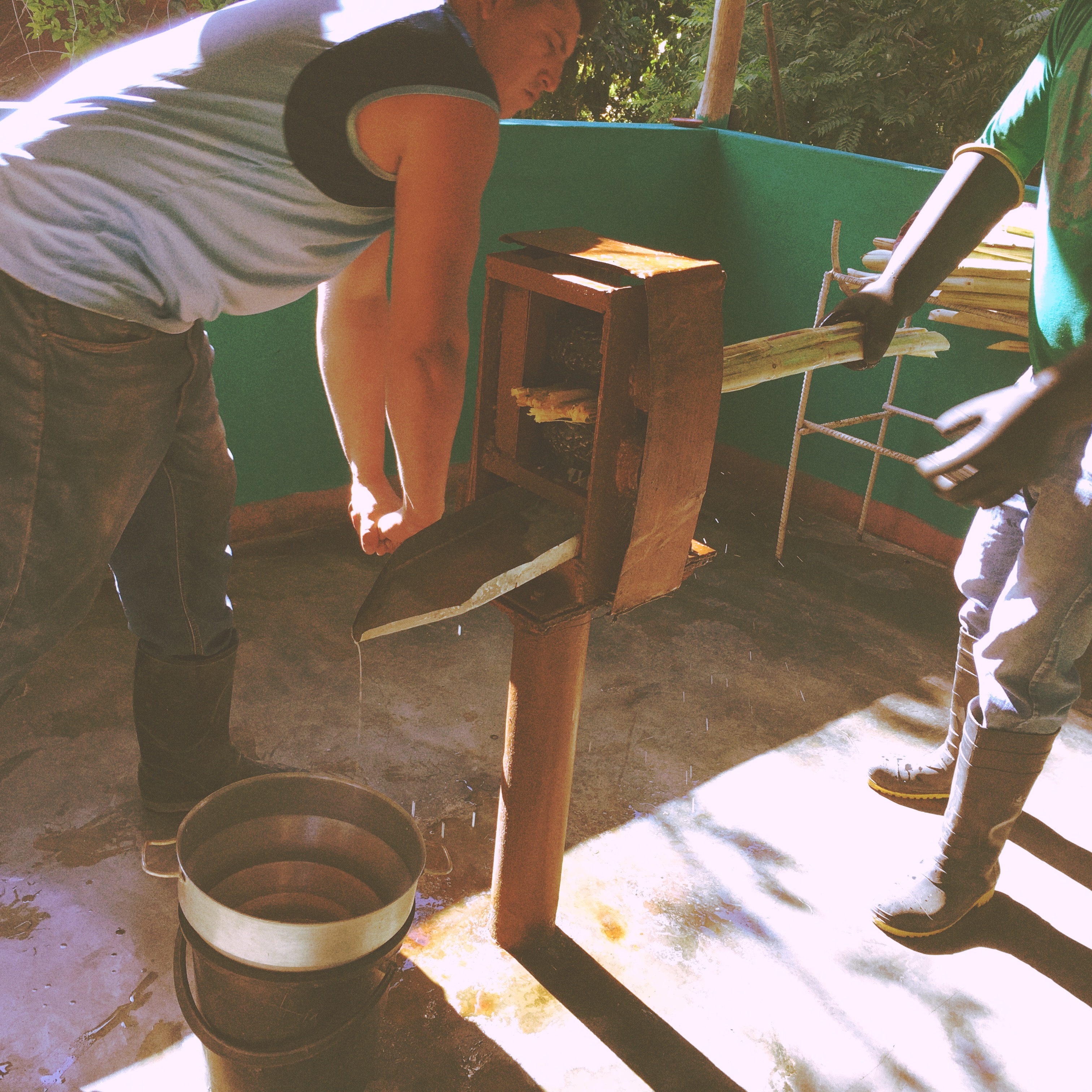Au premier stop, un genre de restau au milieu de nulle part, où l’on s’arrête. Sans conviction, il m’amène à un genre de pressoir, me montre des bâtons de canne à sucre, et, lui et un collègue presse le dit bâton une première fois, le plie, represse, et encore un coup. Le jus s’écoule dans une rigole en métal, le tout dans un seau. Le seau sert ensuite à remplir le broc de la serveuse, et bien entendu, on me propose un verre, avec ou sans rhum. Je prends sans, il est 10h du matin, c’est tôt quand même. Je prends aussi une bouteille d’eau, parce que je suis une grosse gourdasse, j’ai oublié d’en prendre une avec moi. Alors j’essaye d’imagine la scène avec un groupe, avec des gens qui font « aaah, ohhh », ça c’est un peu pathétique, et je raque donc, mon verre et ma bouteille. Normal.