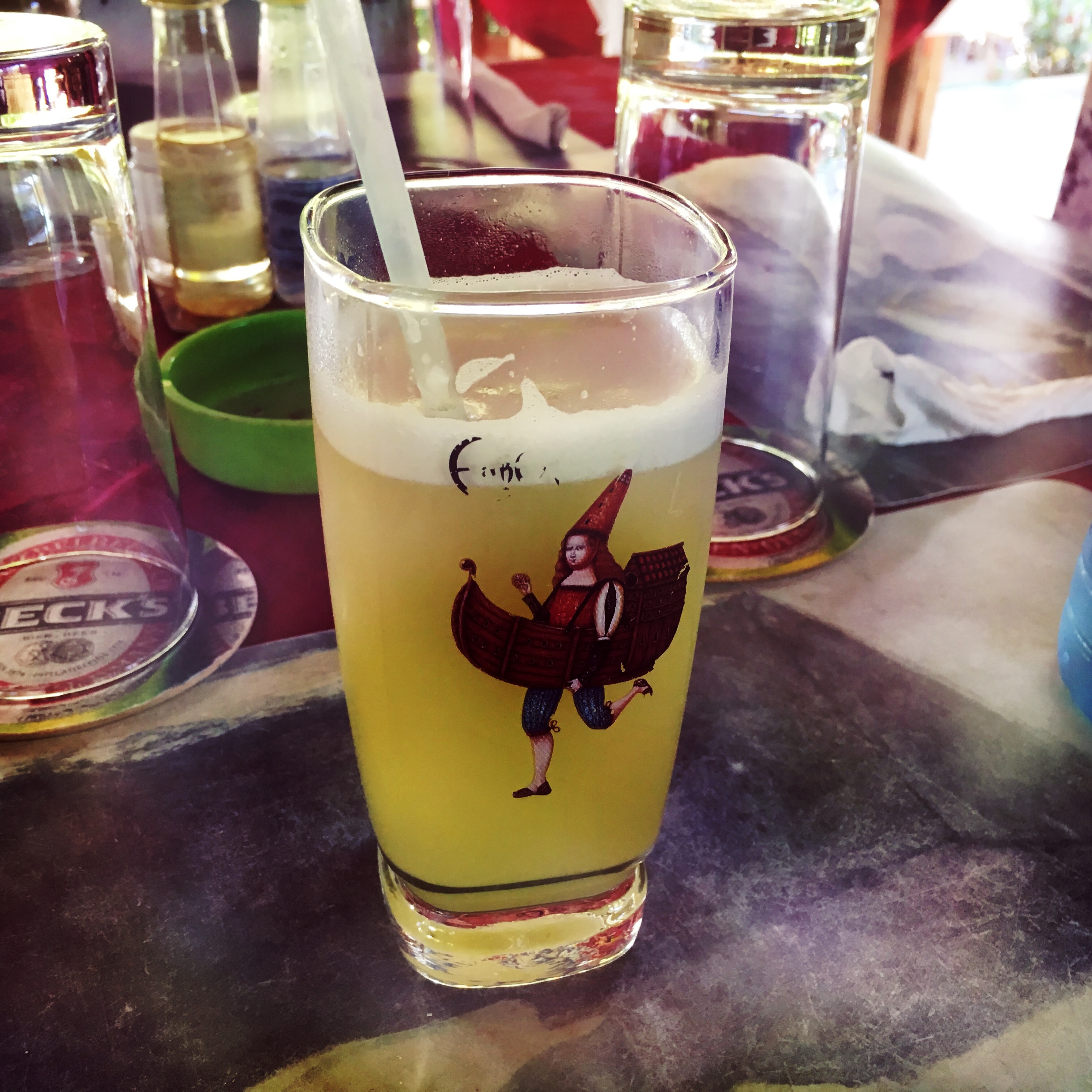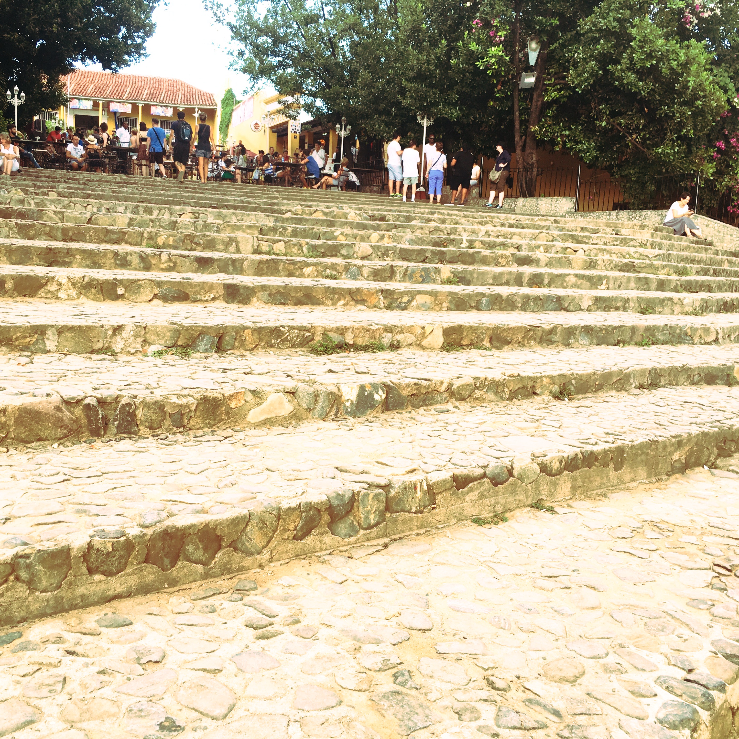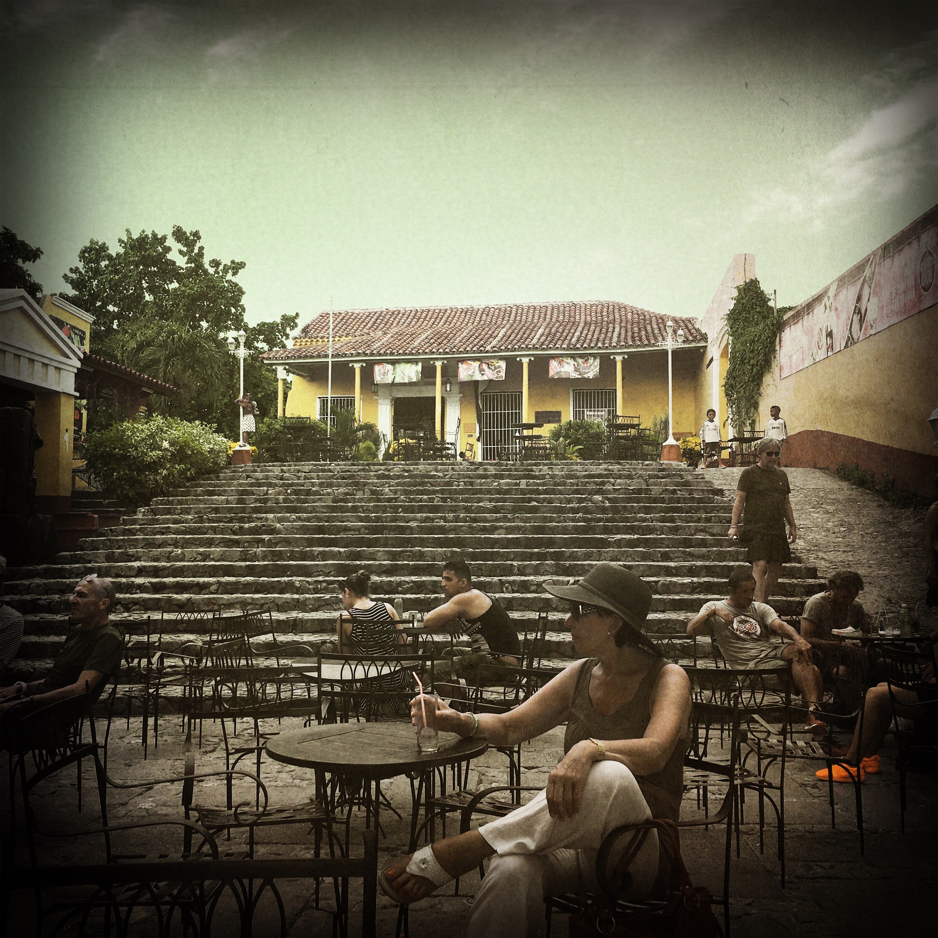 On va faire un tour dans la ville. C’est très à part, ça ne ressemble à rien de ce qu’on connaît. On tente de trouver des souvenirs à ramener, c’est une quête qui semble vaine. On s’arrête pour que je mange une crêpe (il est 16h, mon petit déjeuner est loin, et j’ai déjeuner au rhum), on prend tous les deux une pina colada, moi sans rhum, Manu avec, c’est pour le goûter. On se perd un peu dans les rues, on fait un stop à la Casa de la Musica, un groupe commence à jouer, c’est super. On reste quelques morceaux, et on retourne refaire une pause à la casa parce qu’il fait vraiment chaud dehors. Caliente.