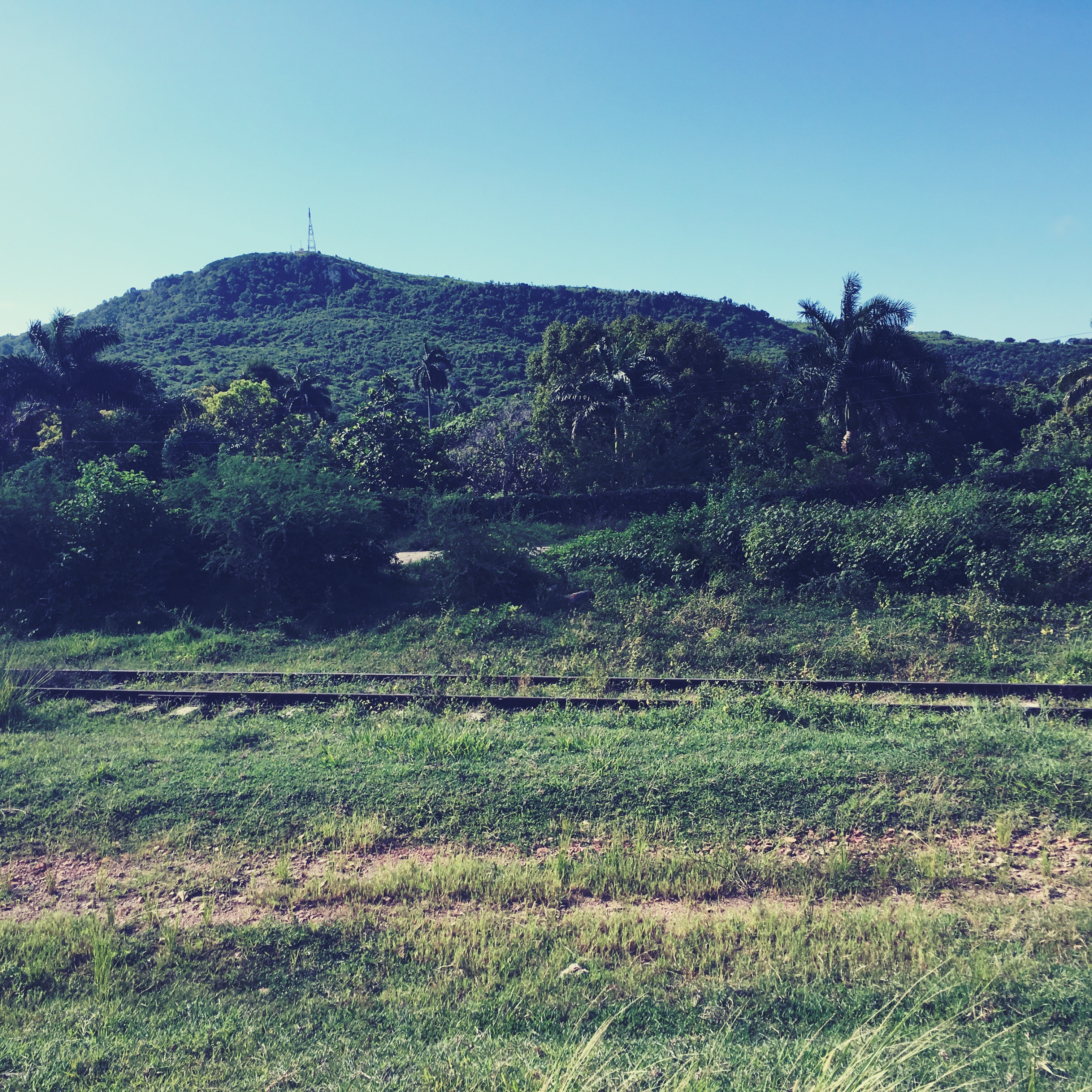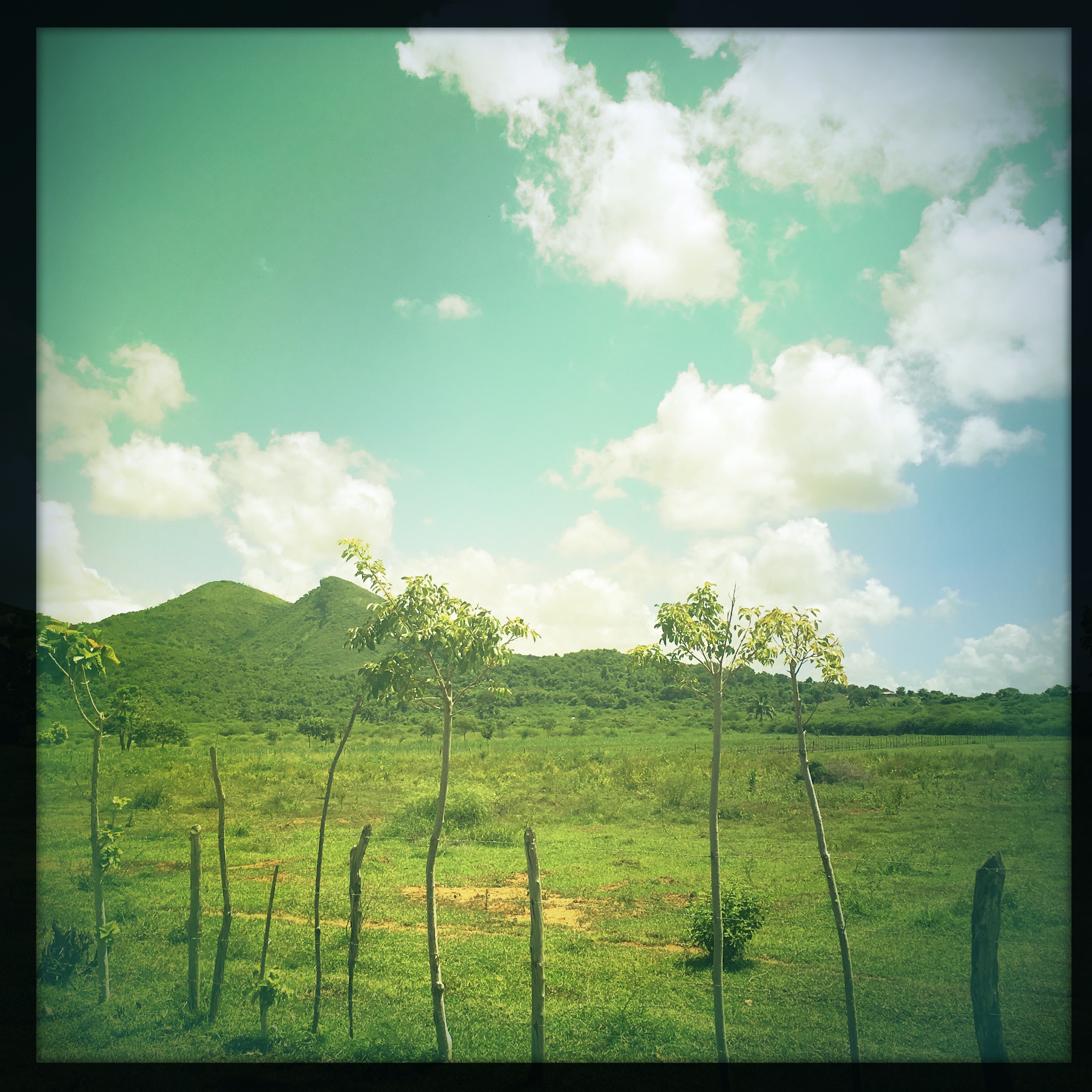Le paysage autour de nous est fou. Des montagnes verdoyantes, des champs encore plus verts, des papillons jaune fluo, des grosses vaches, des rails désaffectés. Cowboy met de la musique avec son téléphone. L’immensité a une bande originale, il chantonne, et de temps dit « Caballo ! » ou « Lady » quand il veut me montrer quelque chose. Je profite de ce presque silence, je m’émerveille en souriant beaucoup.