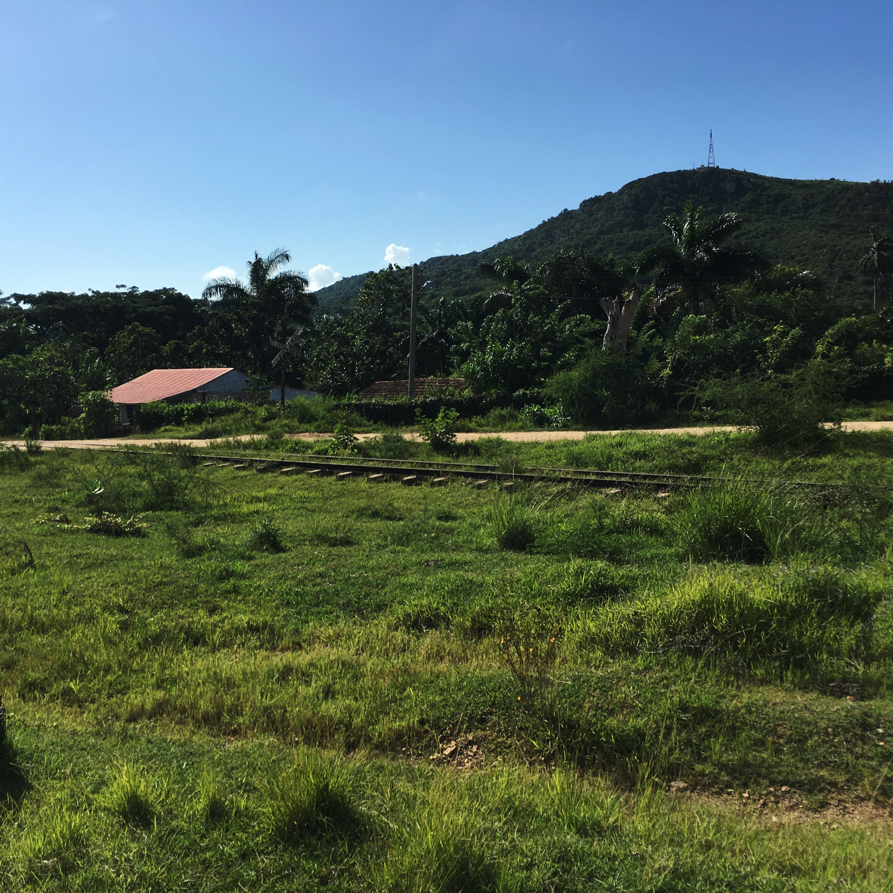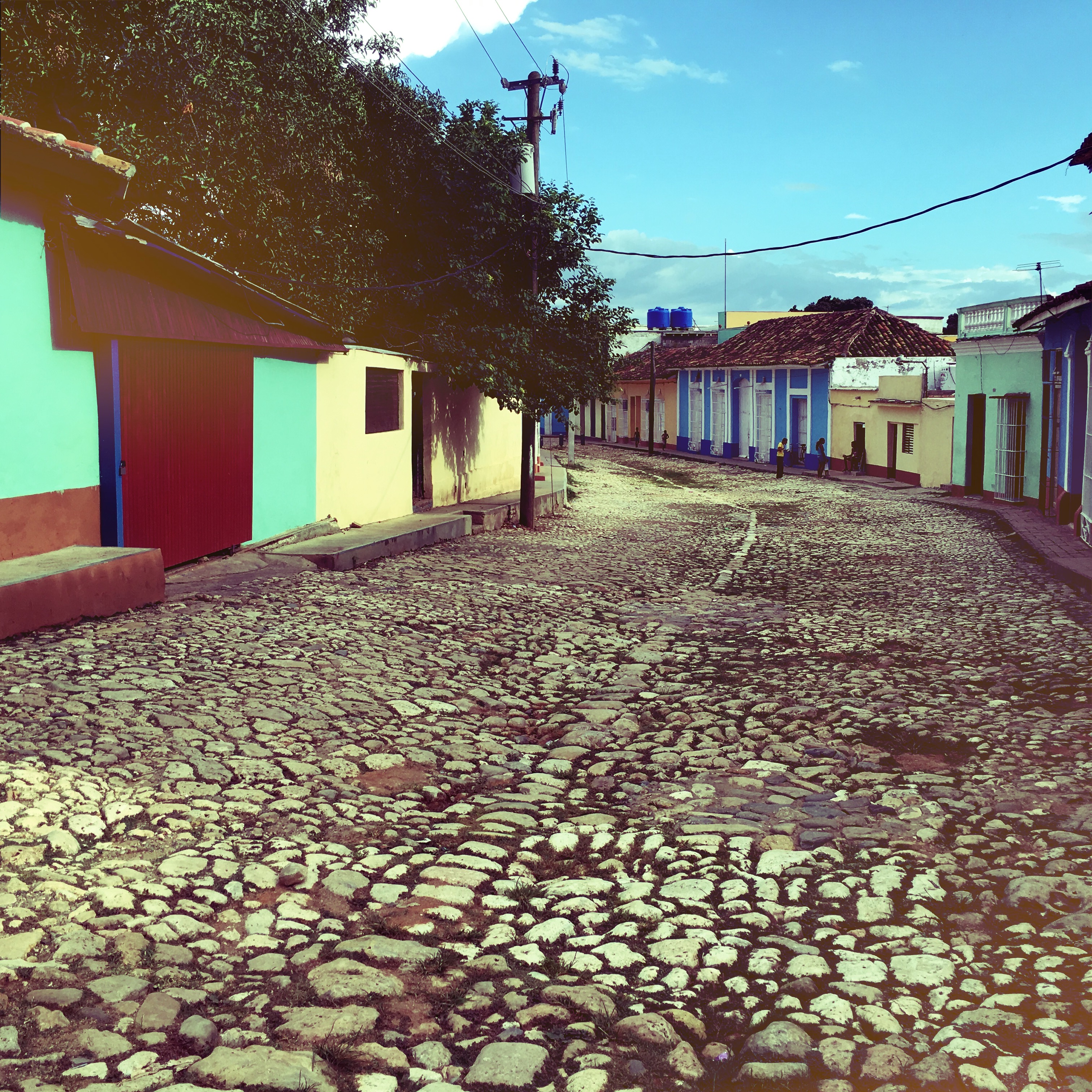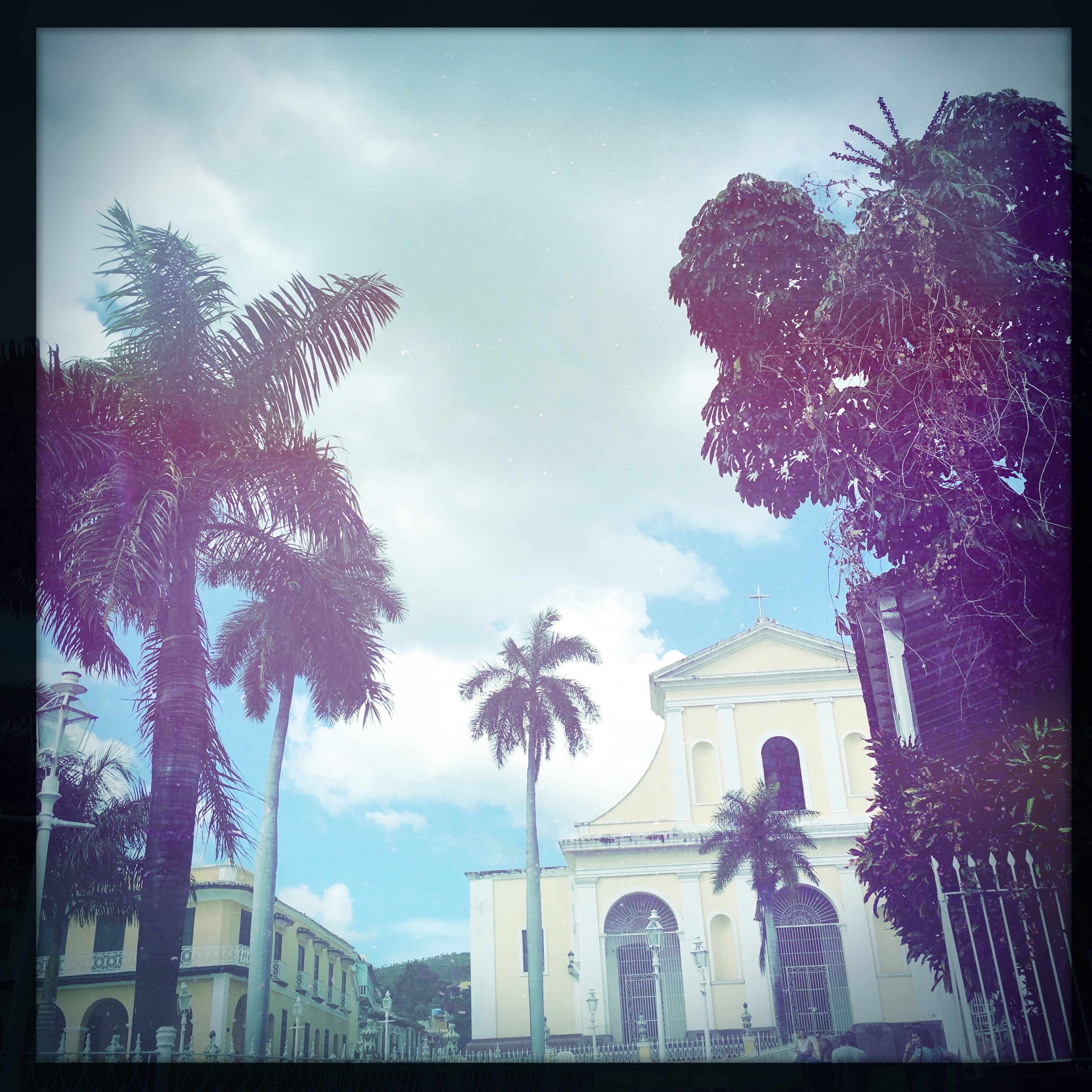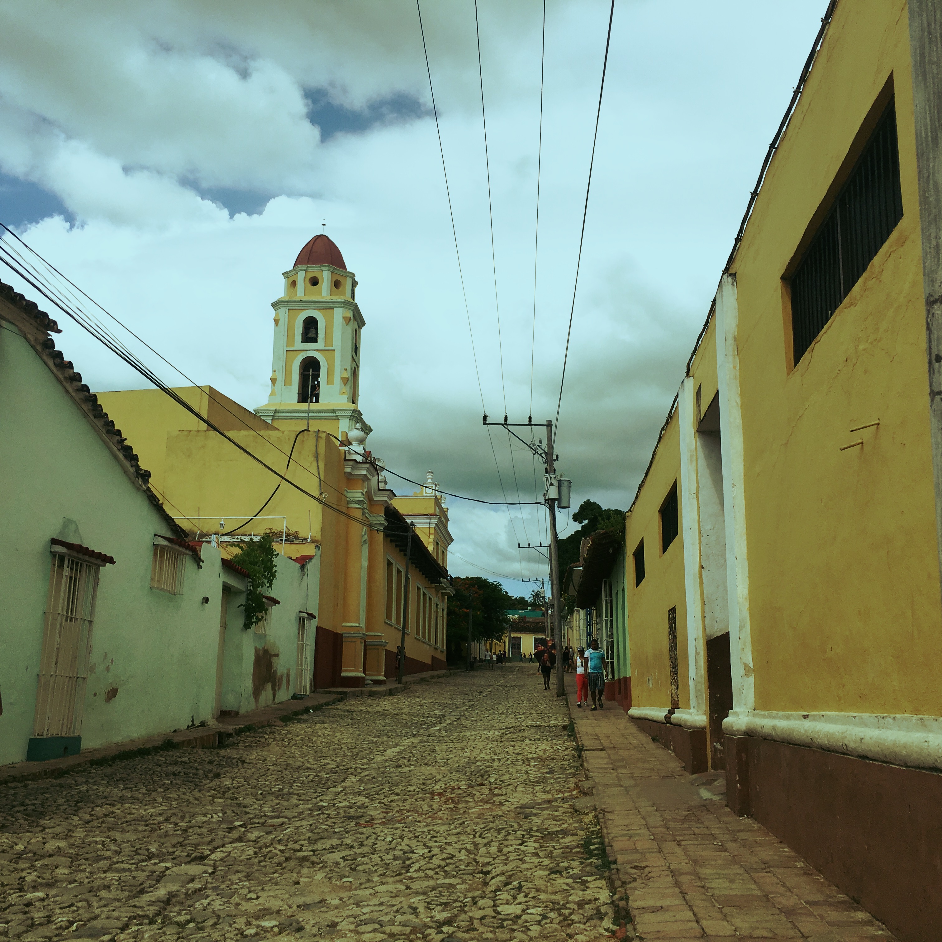 Il est 9h, le cowboy du jour passe me prendre. On part donc tous les deux en vélo-taxi, un gros tricycle avec un toit, qui semble excessivement fatigant à conduire. Zéro optimisation du coup de pédale. On traverse la ville. Trinidad est très différente de La Havane, encore plus de Vinalès ou de Playa Larga. Les routes sont pavées, c’est très chaotique. Dans le Routard, il était dit de jeter un œil à l’intérieur des maisons, en lisant, j’avais trouvé ça plutôt grossier comme suggestion. Mais en passant devant les maisons, le regard traine… Là aussi, c’est hors du temps, le mobilier semble ne jamais avoir bougé. Il y a souvent des rocking chair, des vieilles photos, des lustres un peu fou. Les maisons sont de toutes les couleurs, les gens semblent plus détendus ici, quelques sollicitations, mais ça va.