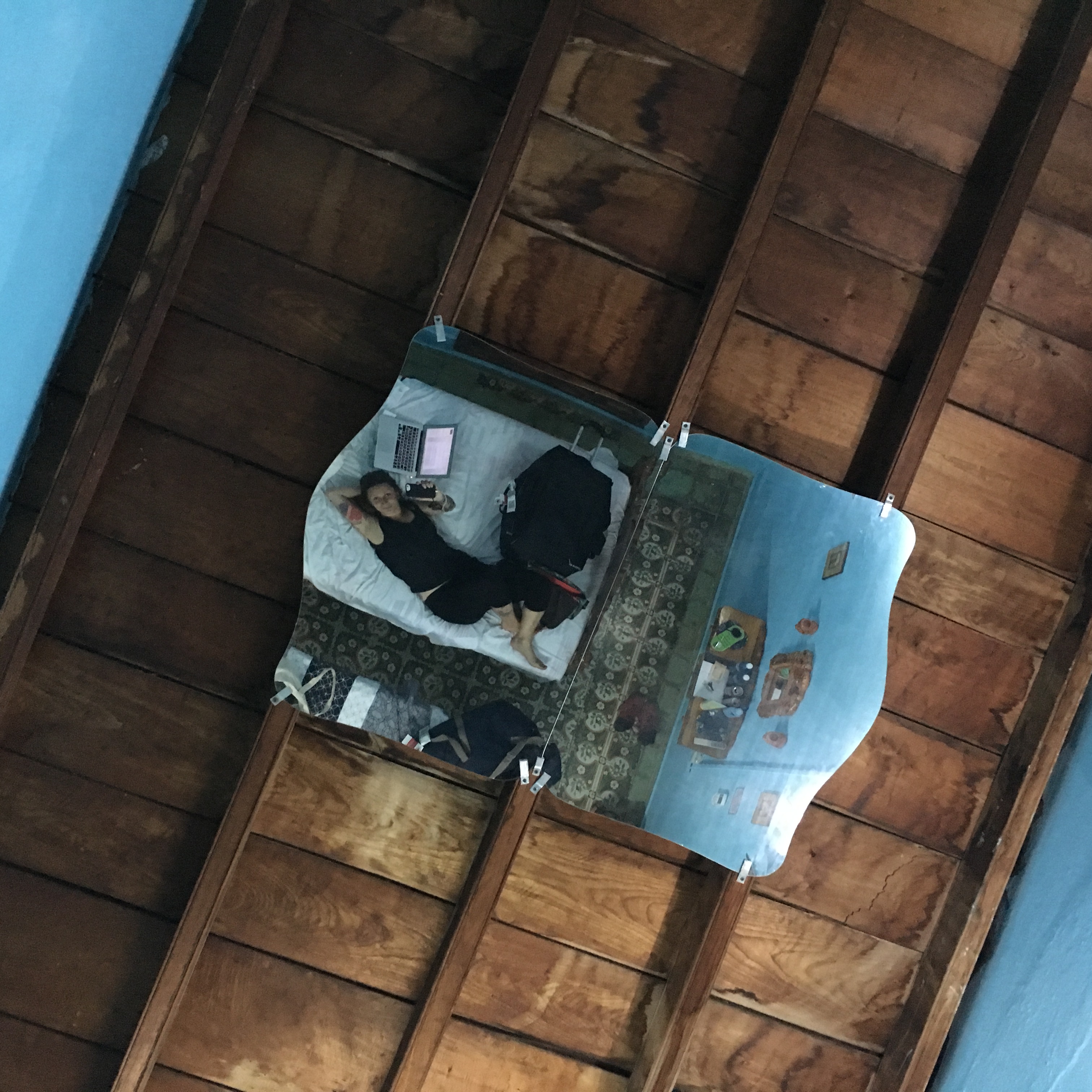 Un jus nous attends, nous donnons nos passeports comme à chaque arrivée. Impossible de savoir si ce couple assez âgé sont les parents de notre hôte. Le monsieur se déplace avec un déambulateur à roulettes. C’est un homme grand, qui devait être drôlement imposant quand il était jeune. La dame est adorable, nous demande l’heure du diner. En revanche, personne ne parle anglais. On se dépatouille. Manu fait sa traditionnelle blague d’arrivée, il dit en espagnol « Mon espagnol est comme ton français ». C’est toujours rigolo.
