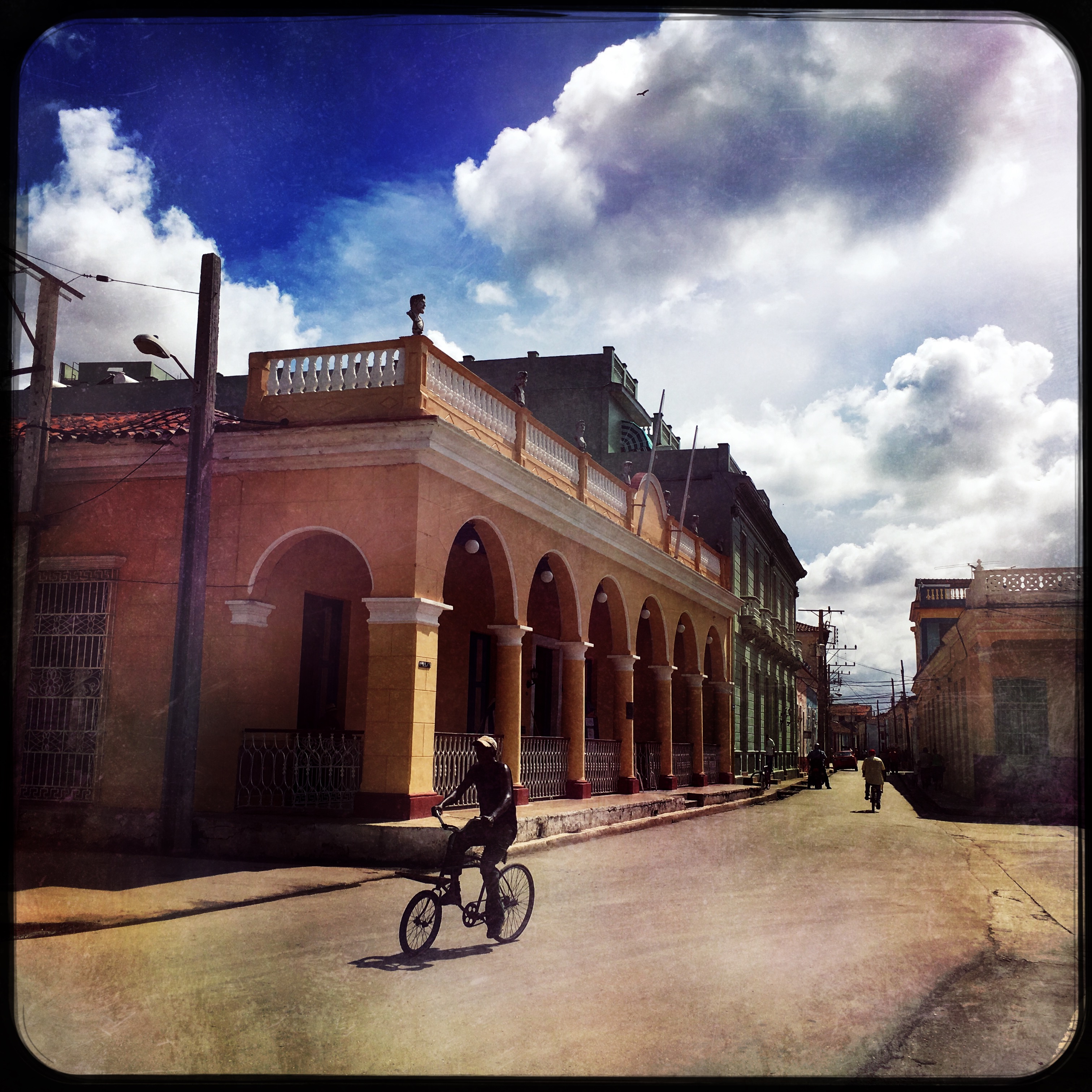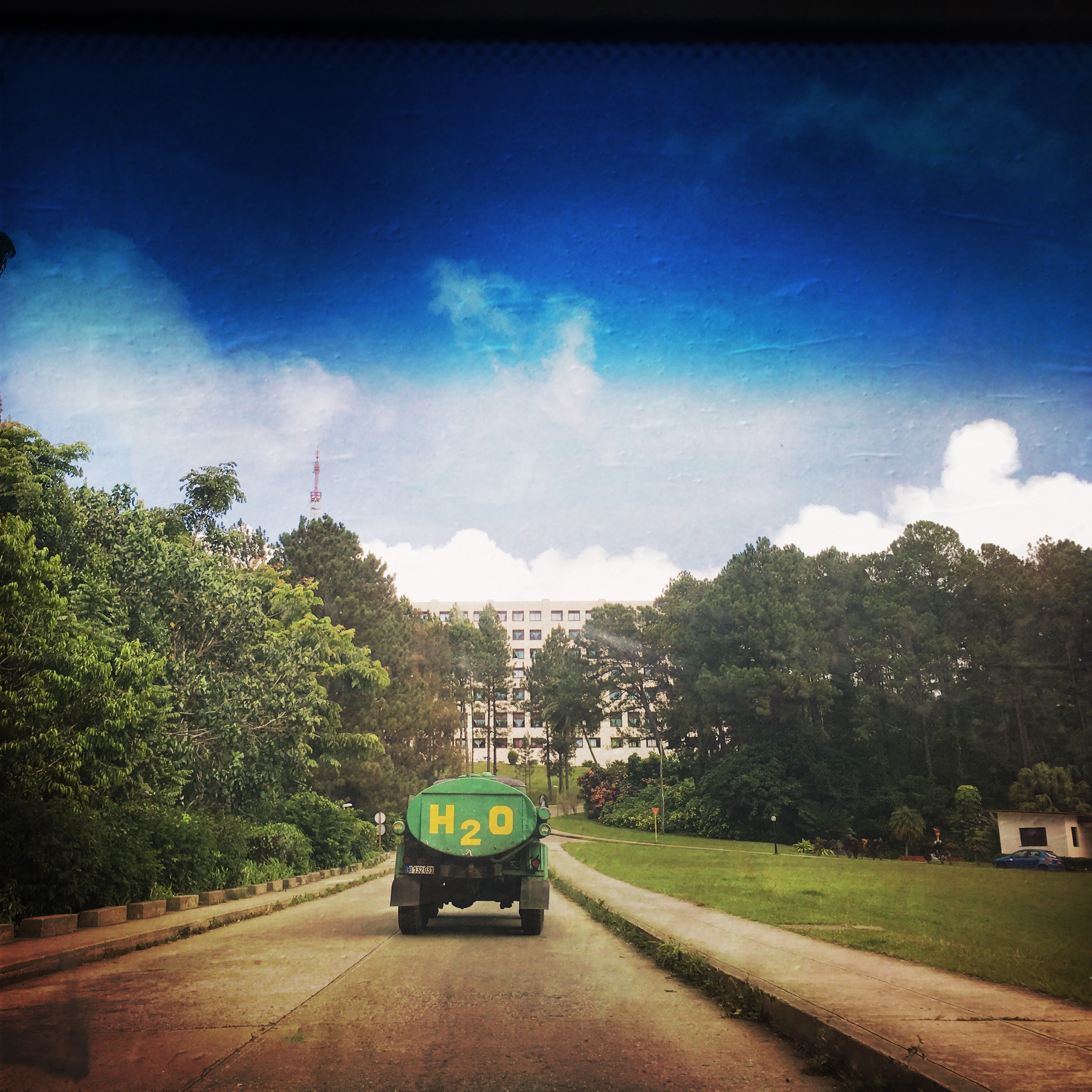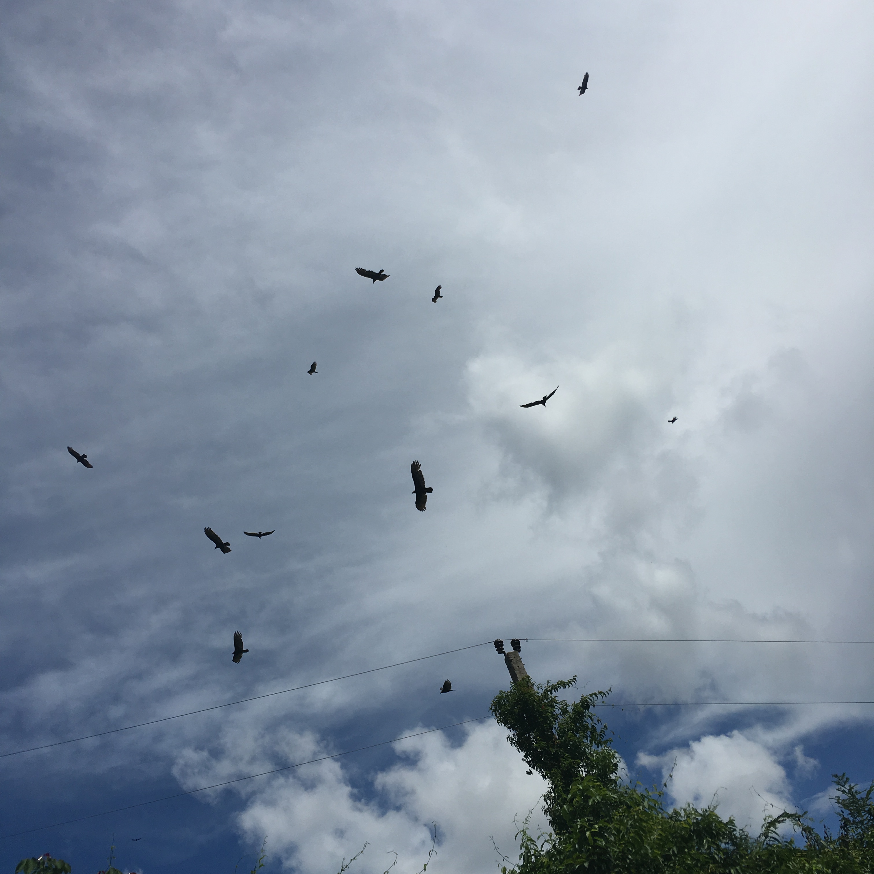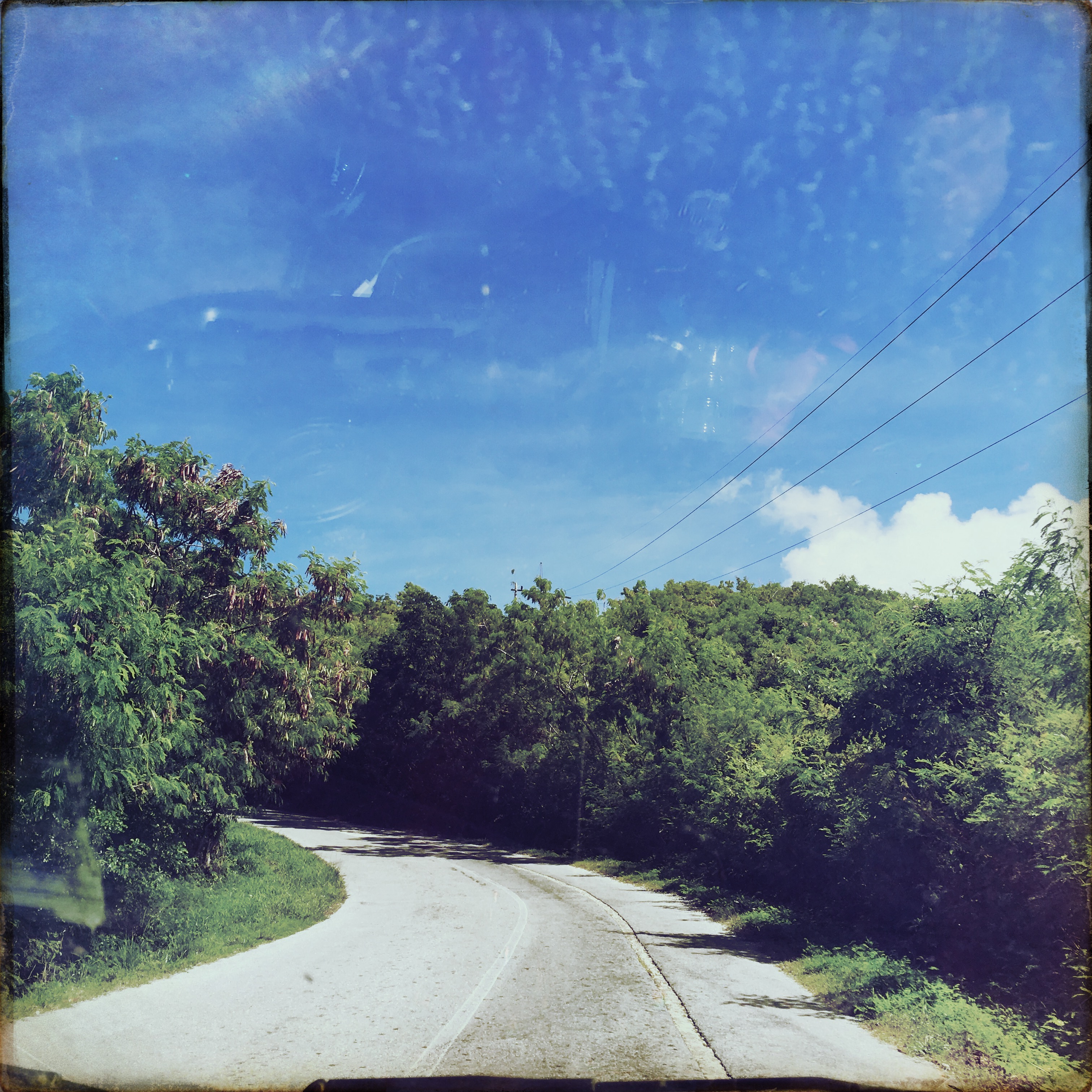 La route ne cesse d’être surprenante. Parfois, elle disparaît, comme scalpée. On roule sur la route épluchée en spéculant sur notre durée vie envisageable si on crève de nouveau ici. Il y a des habitations, de temps en temps un petit village. Les gens circulent, comme partout à Cuba à cheval, ou à pied. Les vautours sont partout, leurs ombres passent régulièrement sur la voiture.