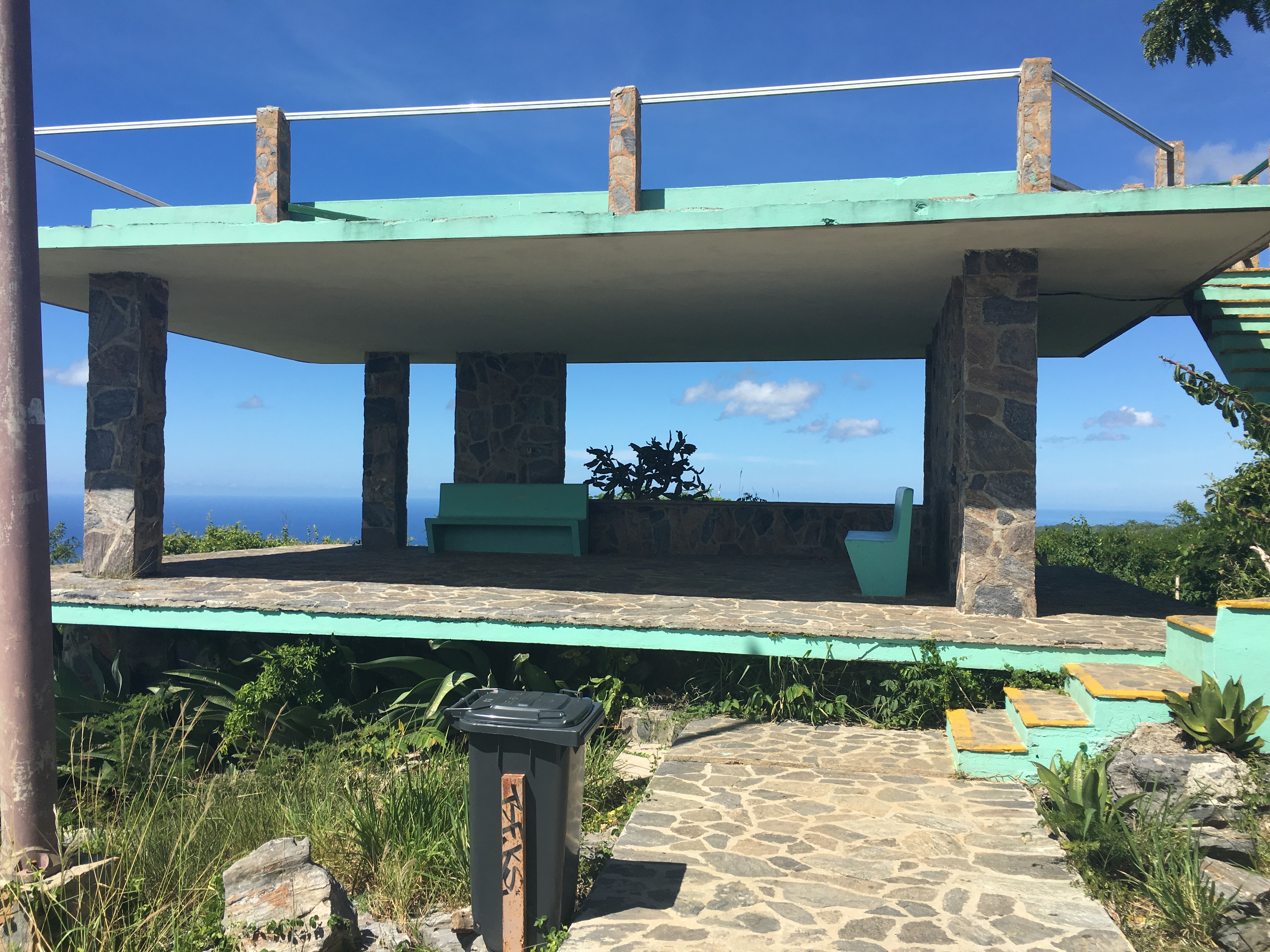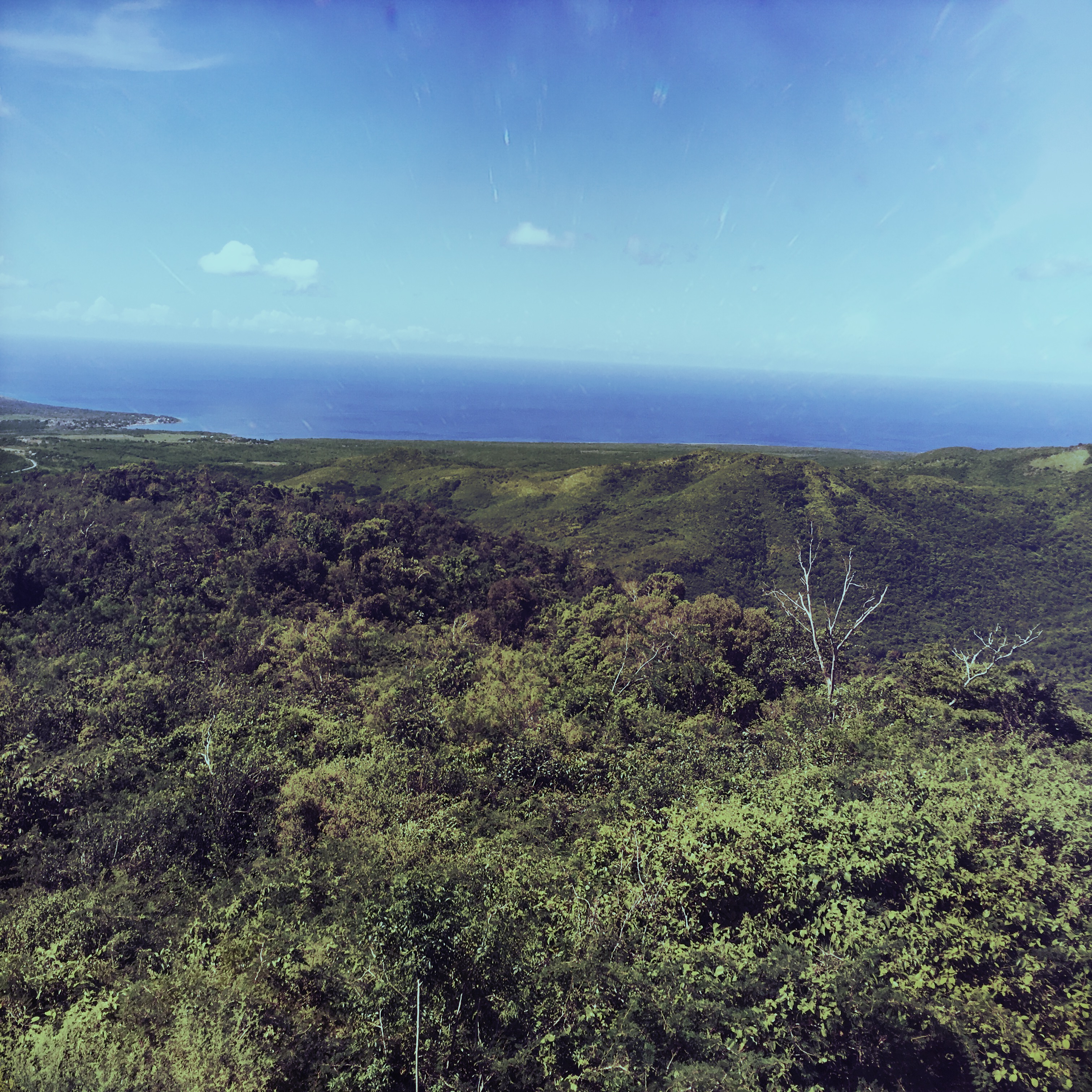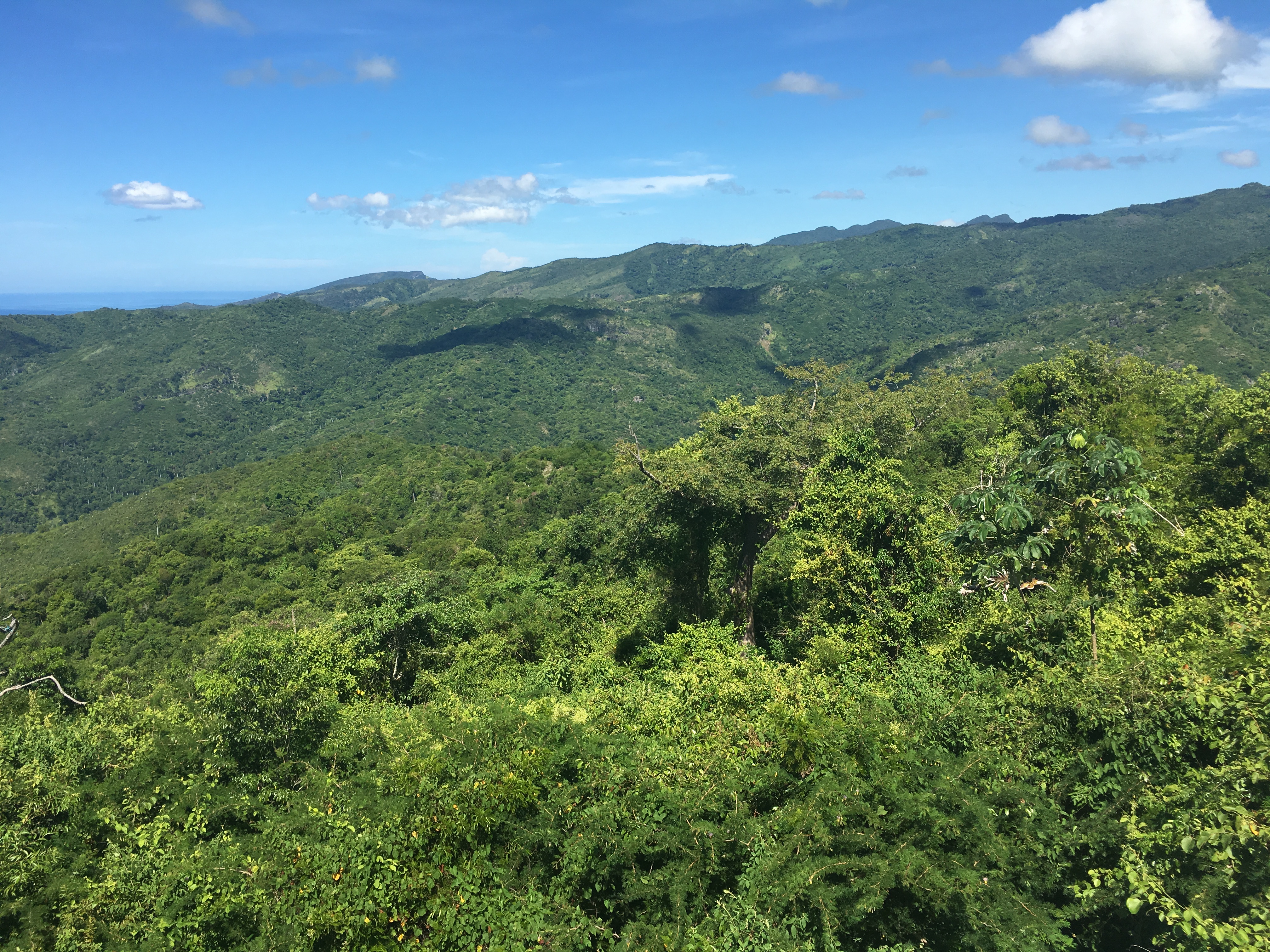 On arrive en haut. Nous surplombons toute l’ile. Les montagne, le mer au loin, tout ces verts ! La beauté nous happe, on reste quelques minutes à profiter du spectacle immobile avant de repartir.