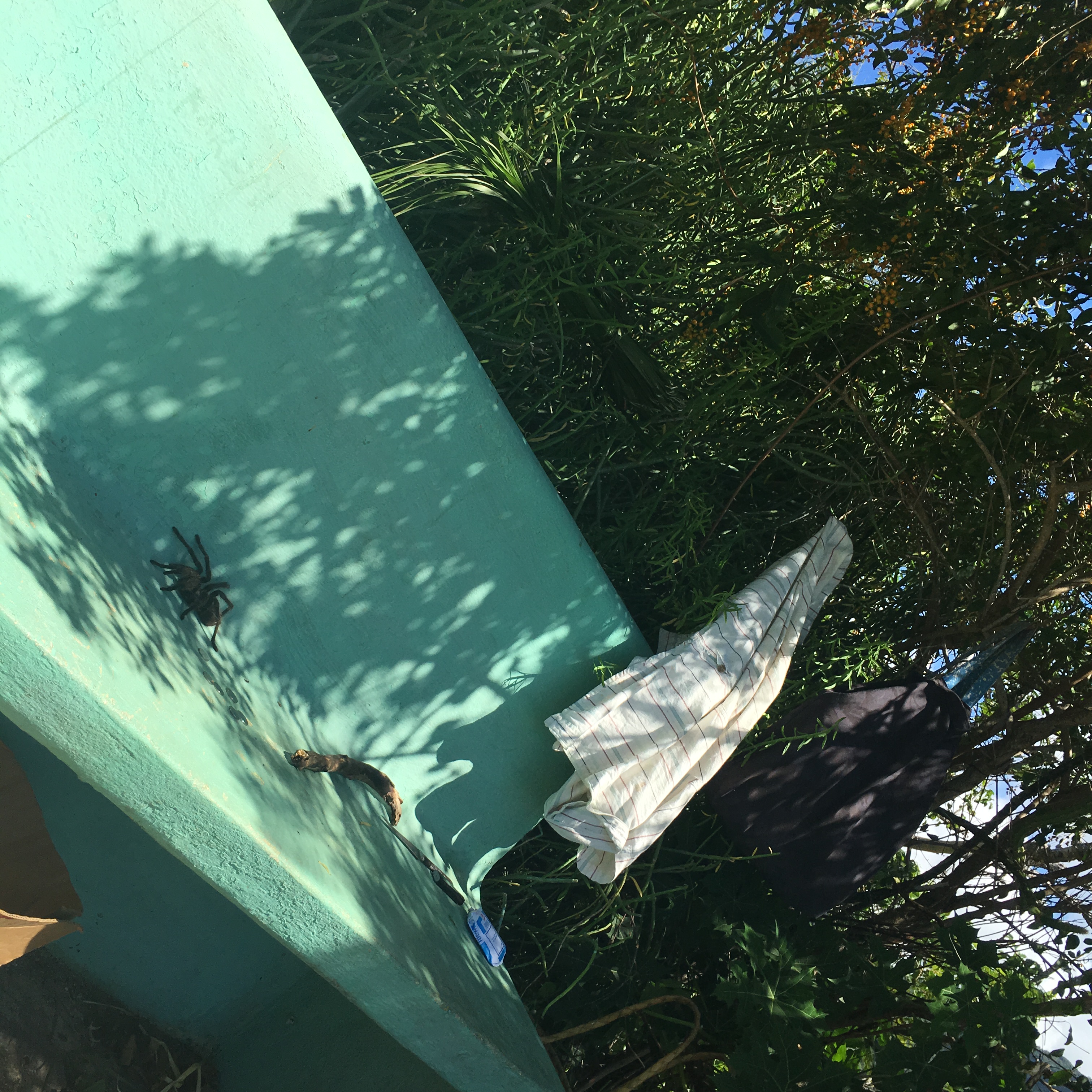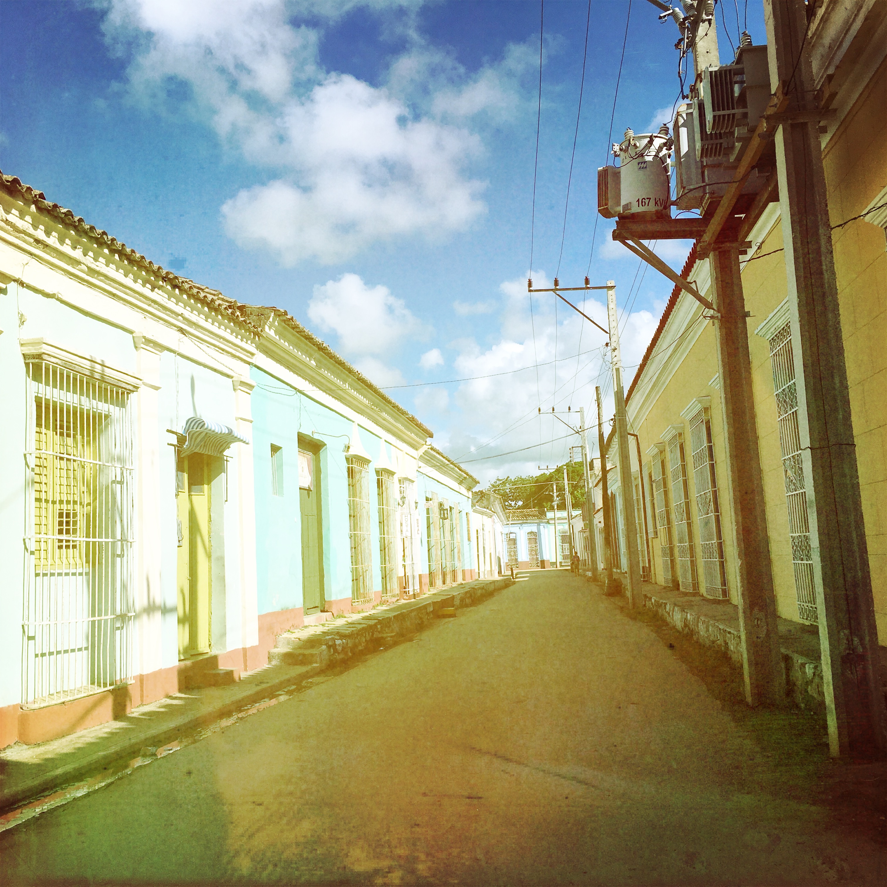 La première nouvelle du matin n’est pas formidable : la voiture, garée devant la casa a un pneu à plat. Et donc nous n’avons plus de pneu de rechange. Aliuska nous aide en passant divers coups de fil. A l’assurance, au truc de location de voiture, et bien c’est parfait, personne ne peut rien pour nous. Elle se charge de demander à des mecs du quartier. Pendant que Manu attend dehors, un type lui demande du savon, des chaussettes. Manu revient en chercher et lui donne, le type lui demande donc des t-shirts, des chaussures, etc… Ça agace beaucoup Aliuska qui ponctue l’affaire par « Il n’a qu’à travailler. »