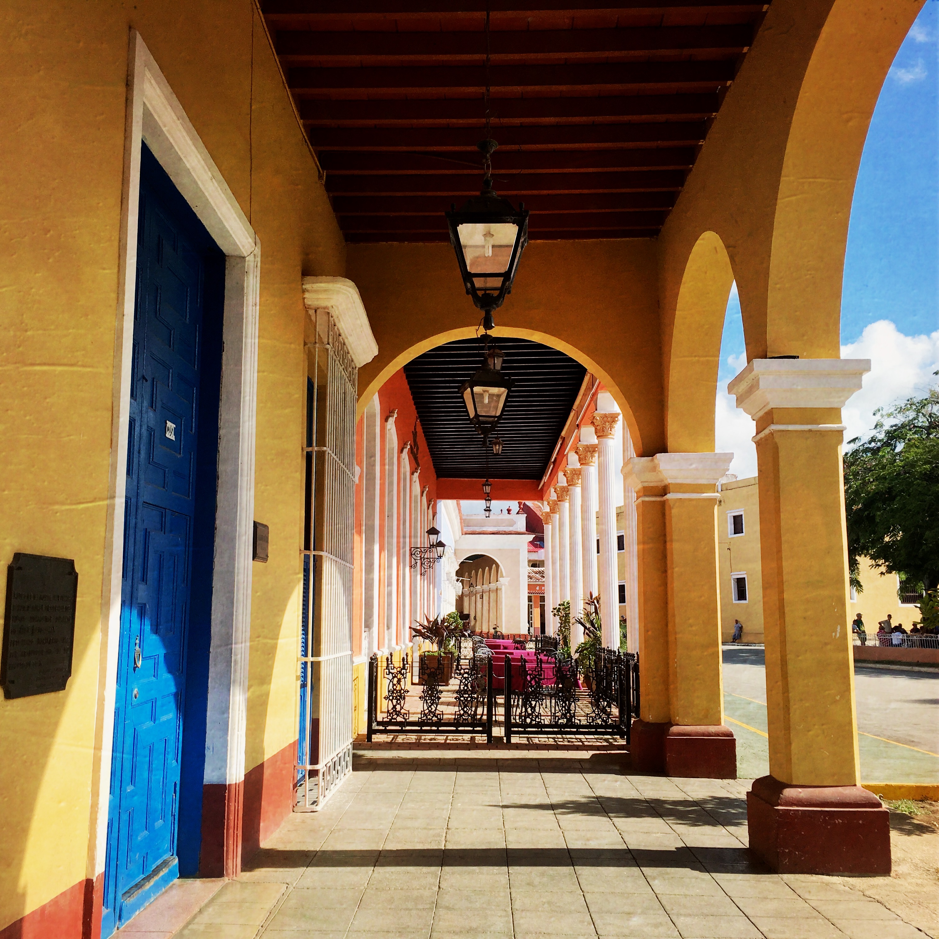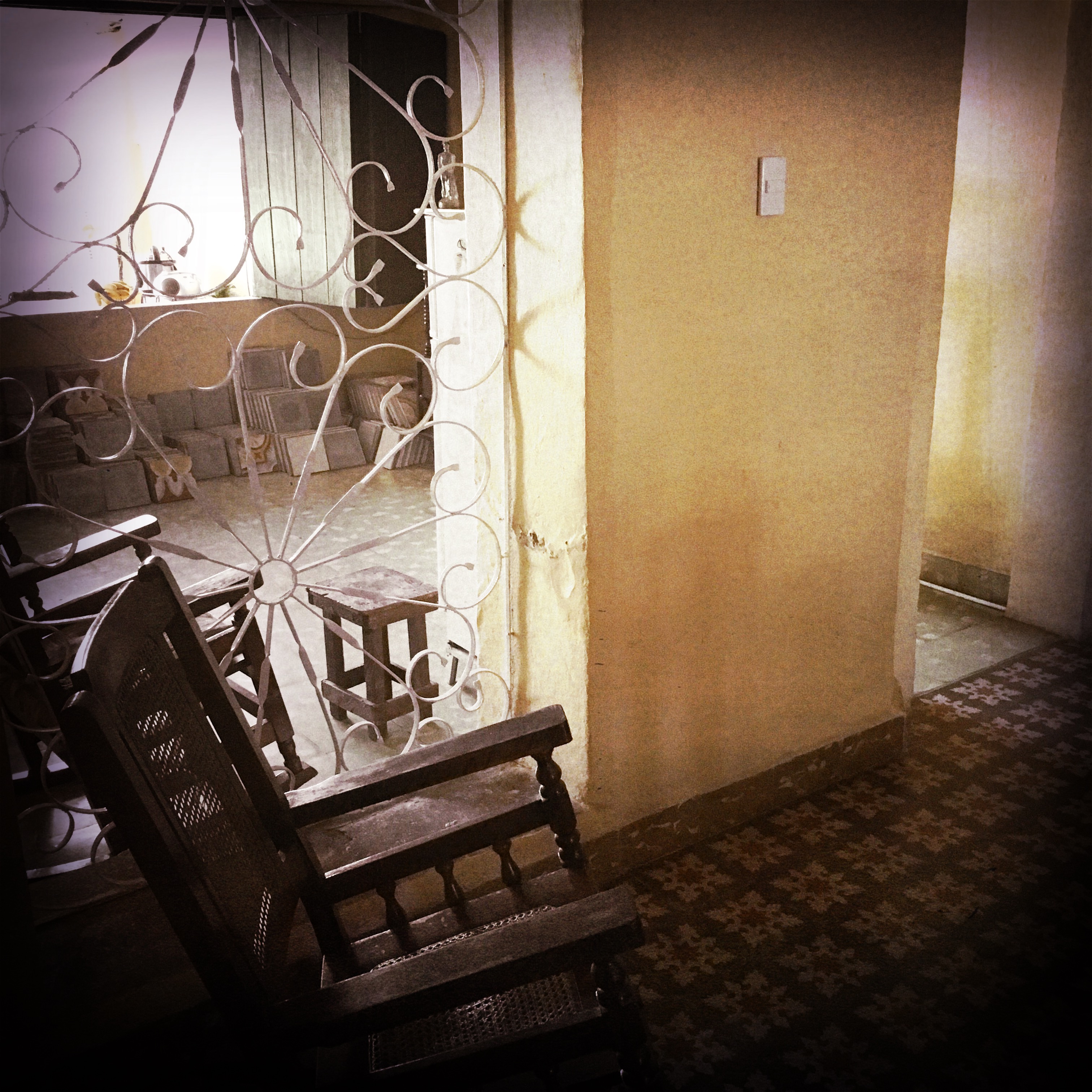 Il doit être 15h quand nous arrivons à Remedios. Nous trouvons notre casa sans peine. C’est plus facile quand il y a des noms de rue, plutôt que « Près de la statue de crabe » comme à Playa Larga. Un monsieur nous accueille, je pense la trentaine, avec ses parents (ou grands-parents ?). Nous entrons dans cette maison coloniale magnifique, pour découvrir notre chambre qui donne sur la première pièce. Le carrelage est incroyable, les meubles d’époques, c’est très épuré et très beau.
