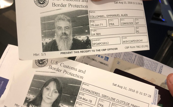 Il nous faut descendre, passer la douane, récupérer les valises, check-in again, et remonter dans l’avion. En 3h, c’est plutôt cool. Comme on est tout au fond de l’avion, on ne passe pas vraiment les premiers, mais ce n’est pas très grave. On découvre les nouveaux systèmes. Ce n’est plus un agent qui prend la photo et les empreintes, il y a des machines qui font tout ça, et qui donnent une papier imprimé avec nos très gracieux visages post-voyage. (Manu est très beau <3)