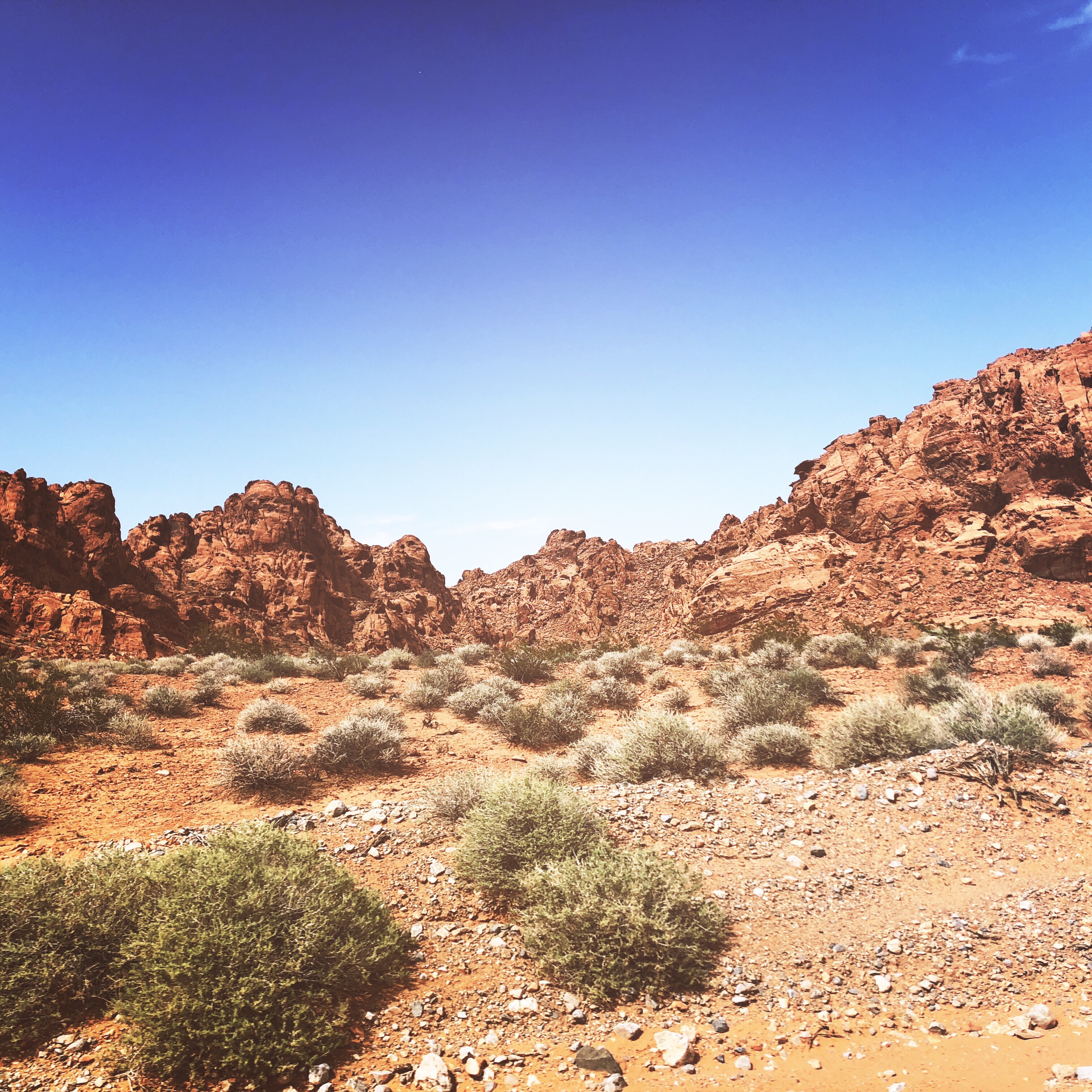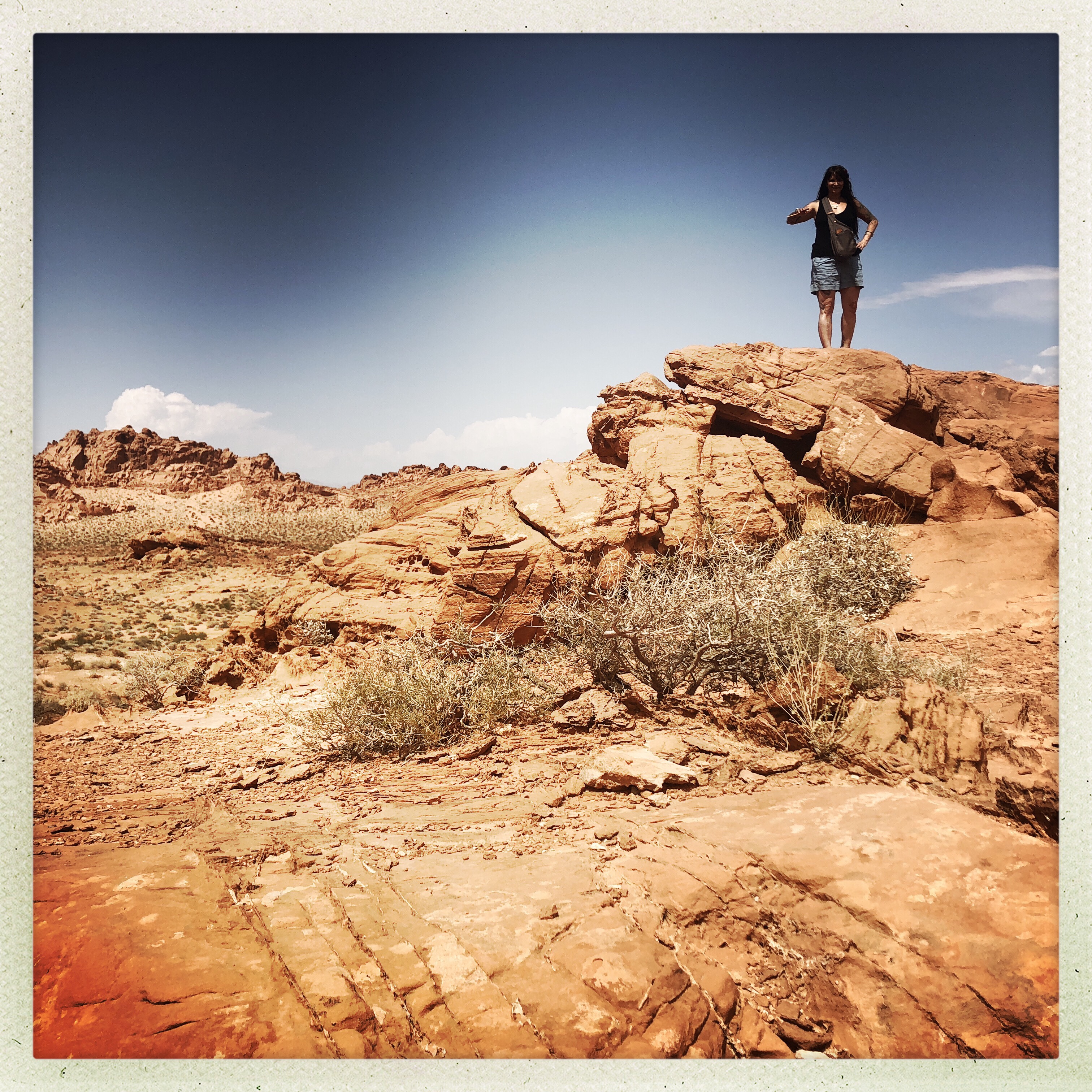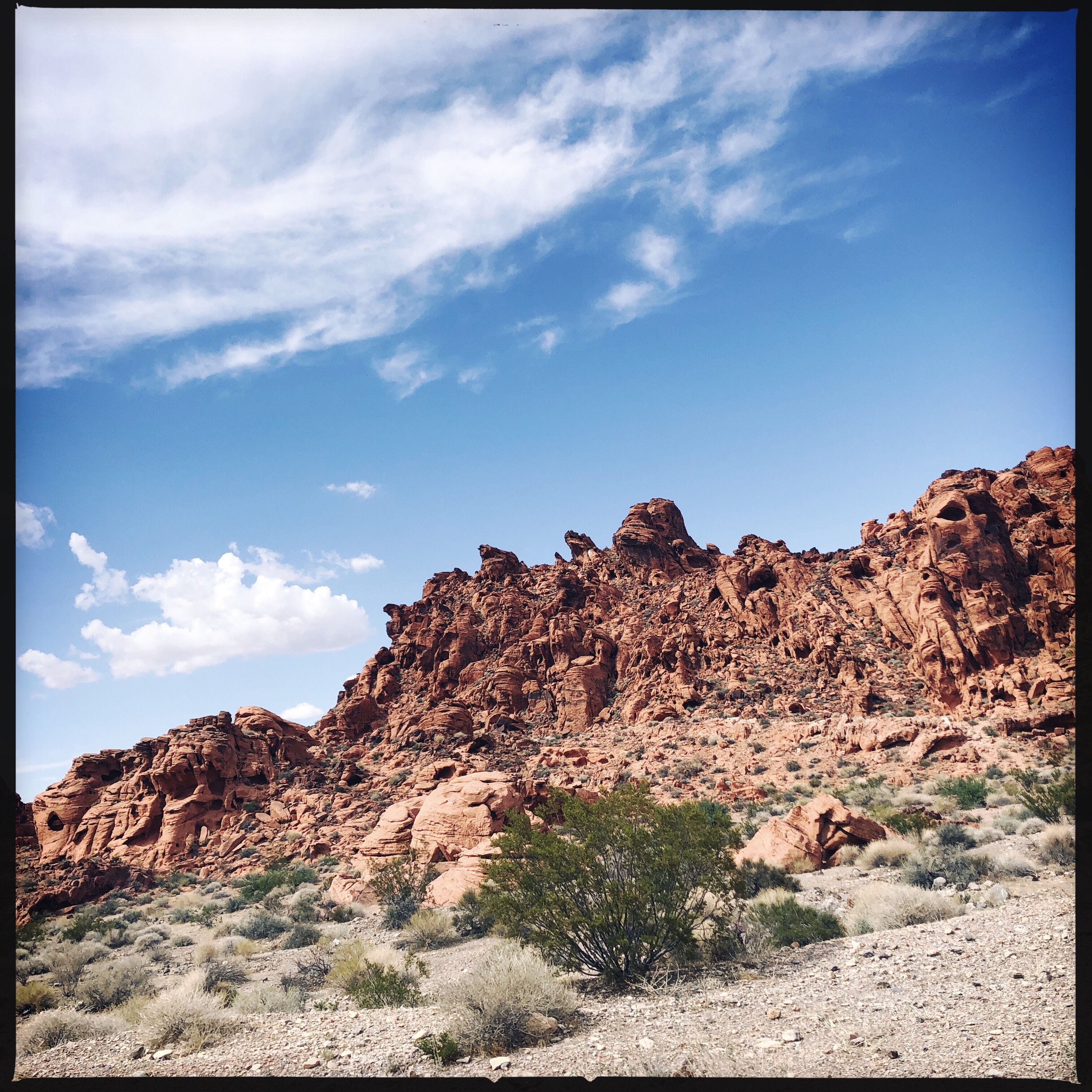A l’entrée (payante, comme tous les parcs), on nous confie une petite carte des lieux. On ne pourra voir qu’une petite partie car une route est barrée. Mais, The Valley Of Fire porte bien son nom. Tout est rouge. Sable, rochers, montagne, mon visage. C’est surréaliste. C’est Mars avec un peu des poils verts.