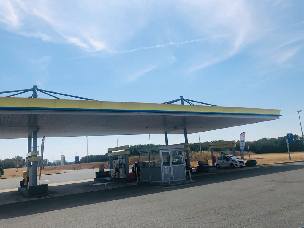 Les stations essence, mochetardes. Mais quand on arrive près de Bordeaux, nette amélioration paysagesque.