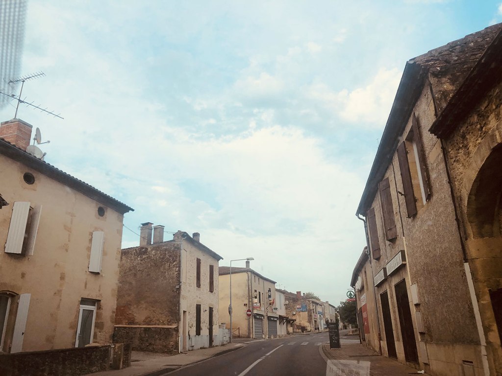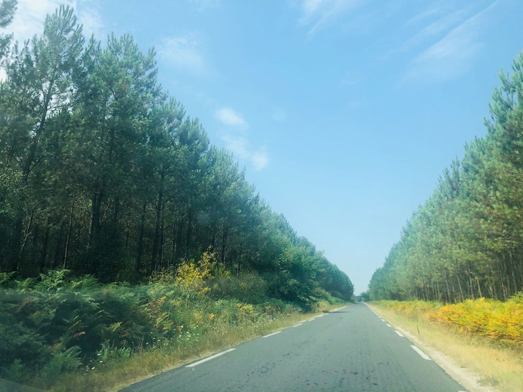 On décolle un peu avant midi. On évite la route moche pour traverser les vignes et les villages mignons. C’est clairement le pays du Sauternes et des châteaux. C’est fou le nombre de grandes demeures-chateaux-manoirs. Ça fait un peu rêvasser.