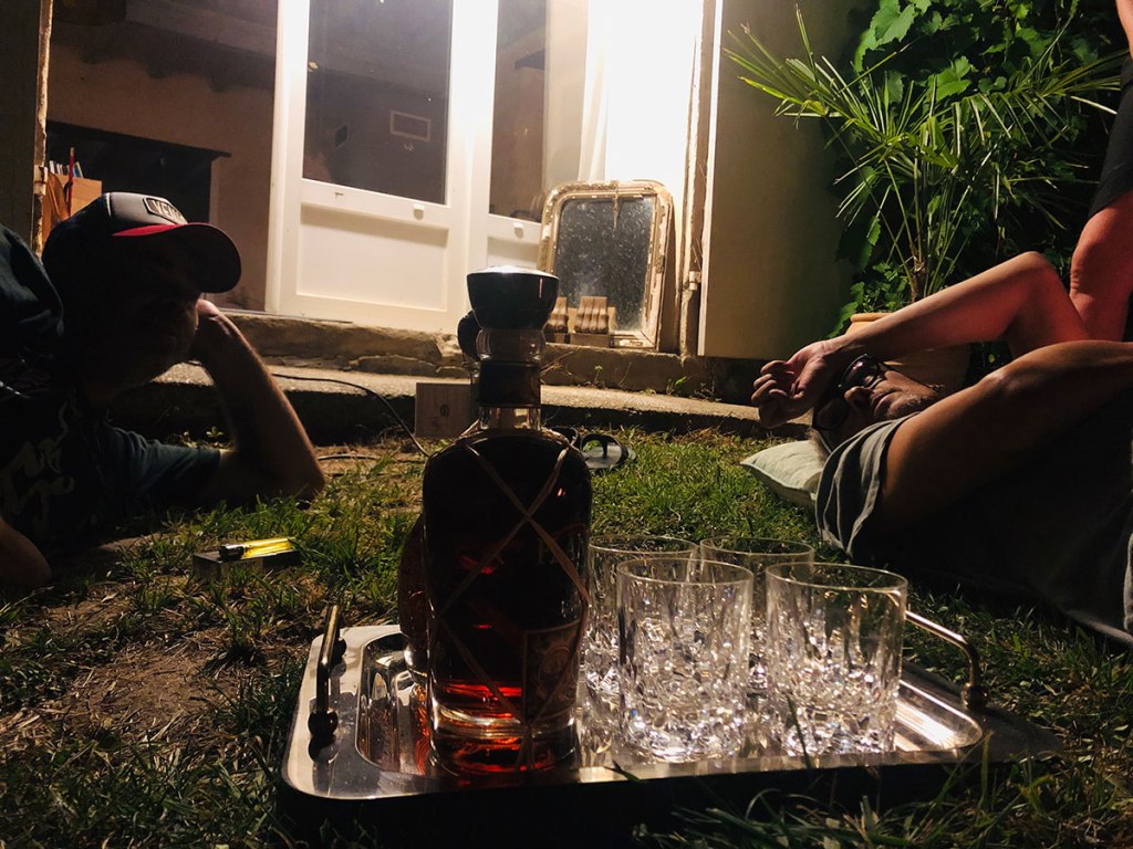 On dine, on papote, on mange, on visite, on boit, on pouffe, on joue avec les papillons de nuit, et les punaises qui volent en faisant des bruits de tractopelle.