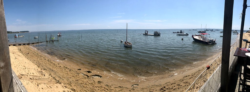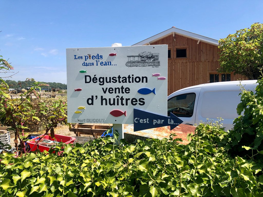 On arrive au Four (on a dû faire une blague raté avec un moulin), on trouve une place pour se garer dans une impasse, on contourne une cabane, et le bar à huîtres est là.