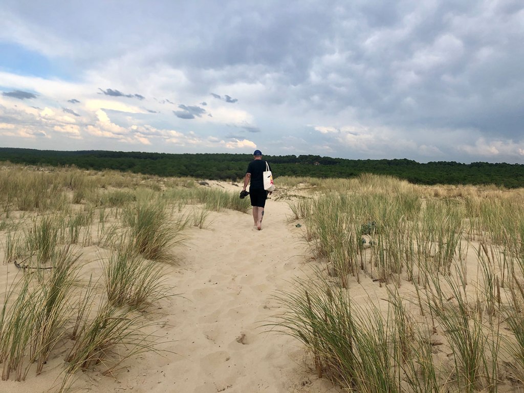 On repart sur la plage des gens tout nus. Il y a eu de l’orage en fin de journée hier, alors cet après-midi, je pense qu’il y a à peu près 6 personnes sur 1km de plage. C’est bien. Je n’aime pas la foule. Les vagues sont plus costaudes qu’hier. On se prend quelque mandales qui font s’emmêler les cheveux, et rebouquinage sur la plage. Il faut ensuite escalader cette truie de débile de bon sang de bordel de dune à la con. Ah ça, ça se mérite de pouvoir agiter ses fesses sous le nez d’absolument personne.