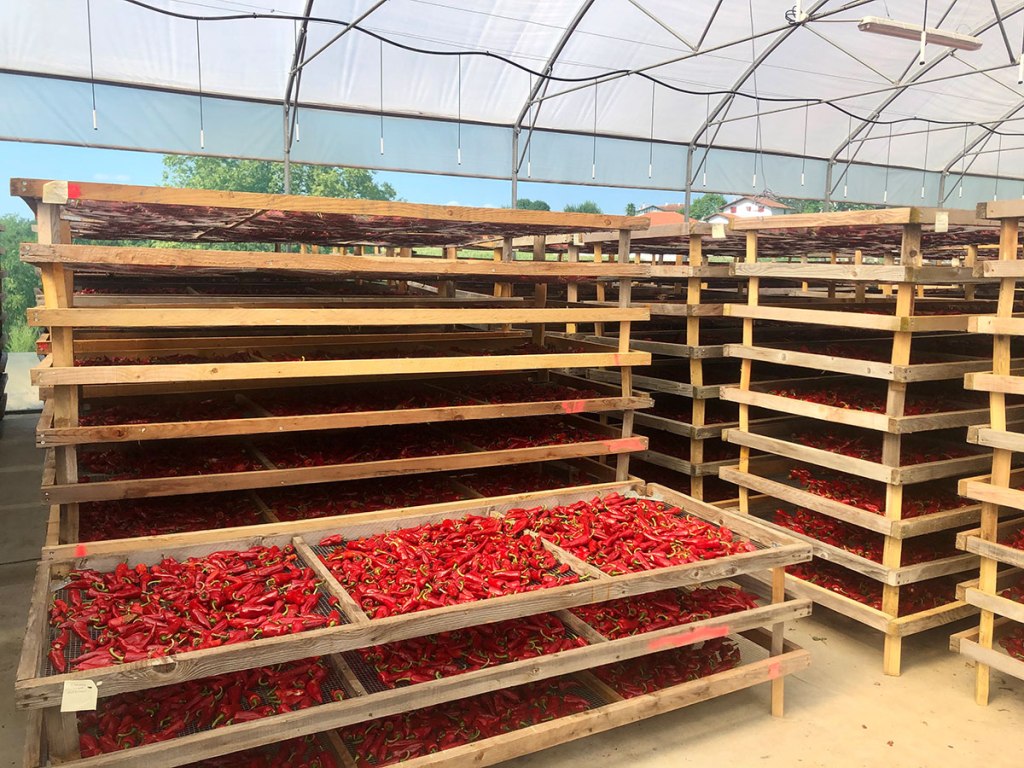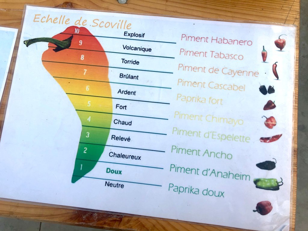Au retour, dans la remontée qui mène à la voiture, y’a un endroit qui s’appelle « L’Atelier du piment », visiblement, ils proposent de la visite, des explications, et une dégustation. Si globalement, les trucs de groupe me saoule, Manu a les yeux qui pétillent à l’idée de se balader dans un champs de piment. Alors, allons-y let’s go, c’est parti les amis.