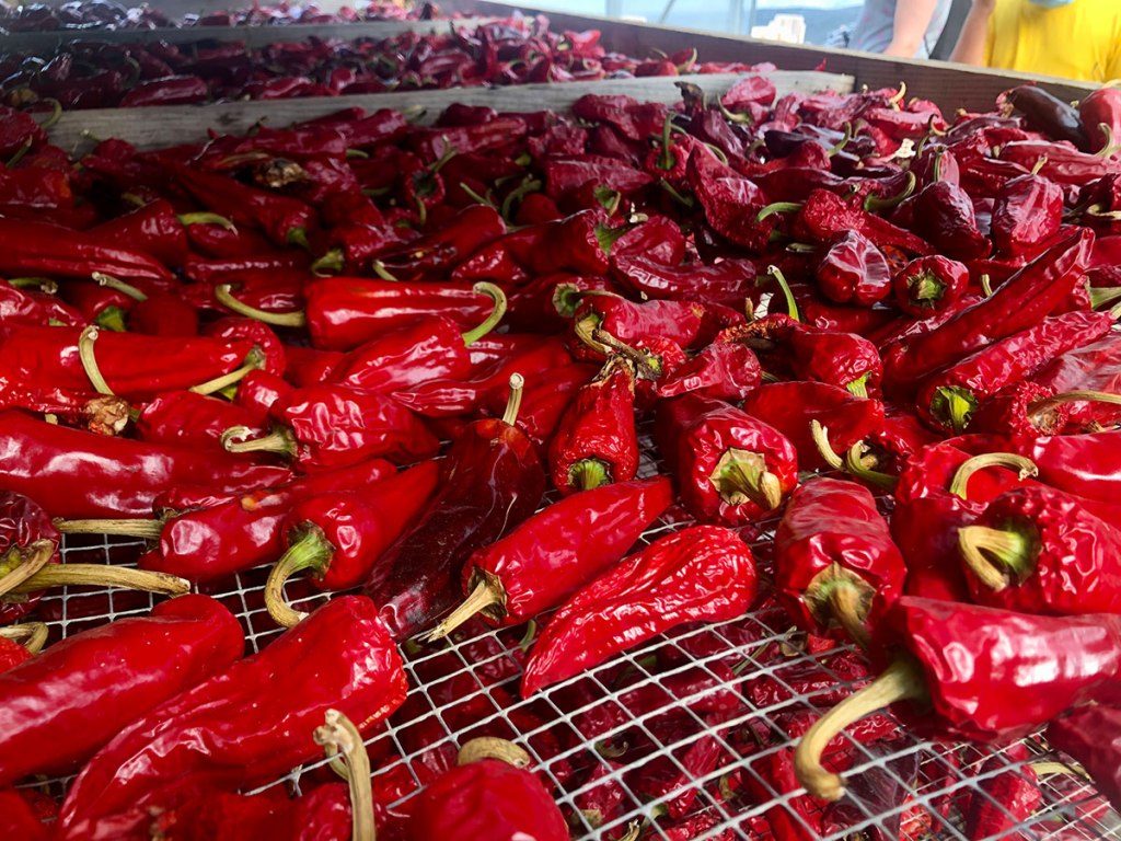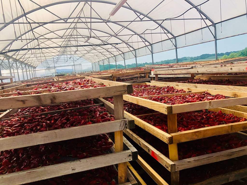 Il y a bien entendu un gros groupe de gens qui n’écoutent pas les explications des messieurs et qui posent les mêmes questions sans écouter non plus les réponses. C’est assez surréaliste. C’est aussi un concerto de blagues ratées. Décidément, je ne suis pas fan des trucs de groupe. En revanche, les champs de piment sont beaux. Les piments qui sèchent sont chatoyants, le comment on fabrique la poudre de piment est assez cool. Et le saviez-vous : le truc du milieu du piment, là où sont accrochées les graines, ça s’appelle le placenta. #funfact