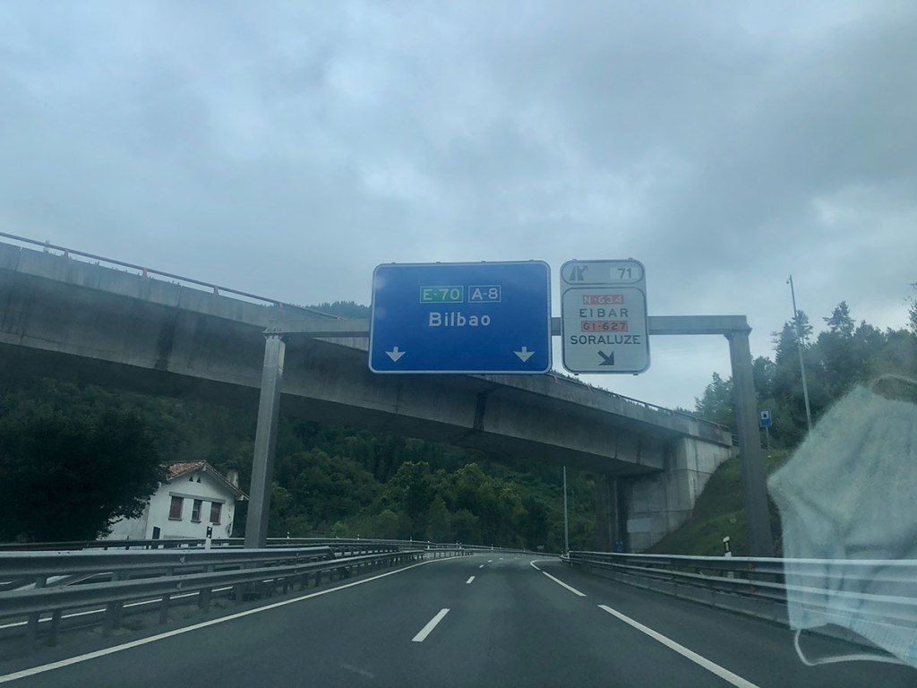 Back on the road, l’Espagne est à 6 minutes. C’est bien 6 minutes. Il y a du rab de route pour rejoindre Bilbao, mais les nuages qui caressent le haut des montagnes sont assez réjouissants. La campagne est verte, les radars nombreux. On arrive à Bilbao, on retrouve Manu, un vieux copains de Manu ! (Pas par hasard hein, c’était prévu).