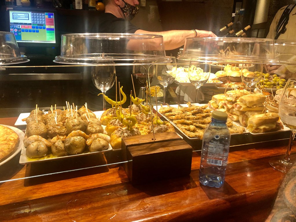 Le Rio Nervion (non, on n’a pas chanté) nous accueille à la sortie de la gare, les petites rues s’emmêlent autour des bars. On a fait un genre de barathon joyeux. On peut commander des petits bières ici, des zuritos, c’est un peu moins d’un demi, alors c’est ce qu’on fait. On en a commandé un par bar, et on est allé dans des tas de bars. Dans la plupart des bistrots, on peut manger des pintxos (prononcer pine-tcho), en gros, c’est du pain, avec un truc dessus à manger. Y’en a même à la tortilla sur du pain. Quel beau pays.