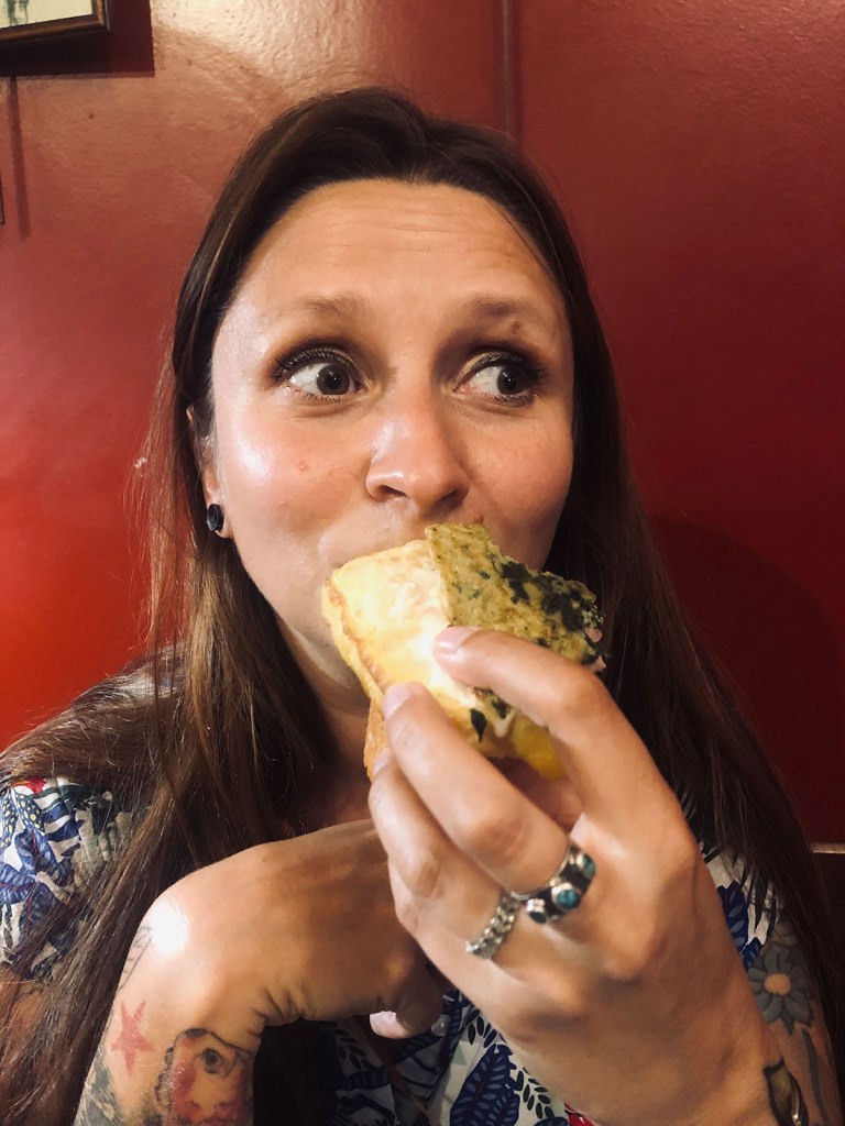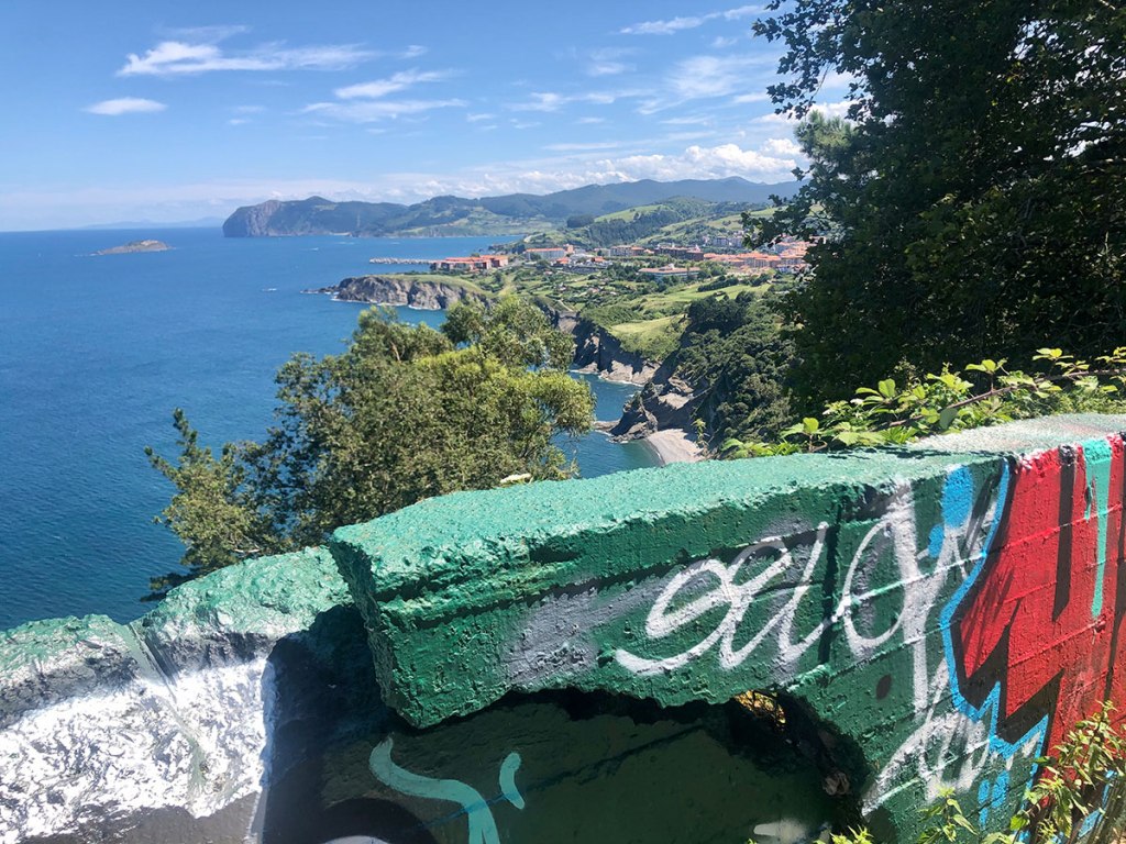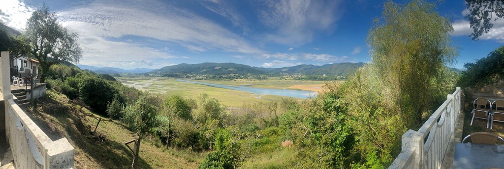 On s’arrête manger dans une taverna sur le bord de la route. C’est très calme, la vue est zinzin, on mange des pintxos, c’est très bien.