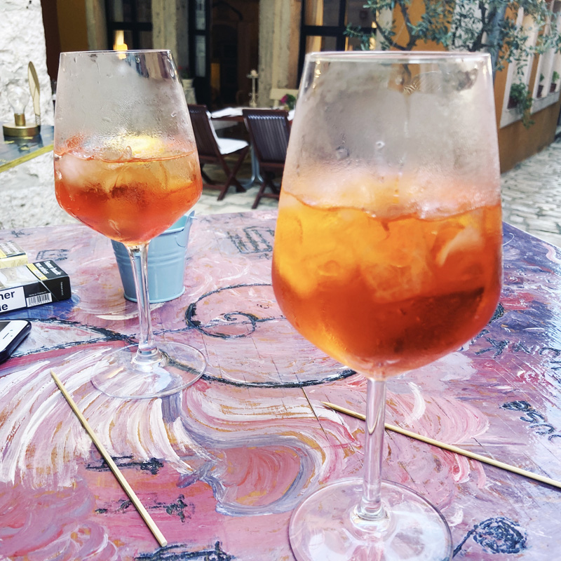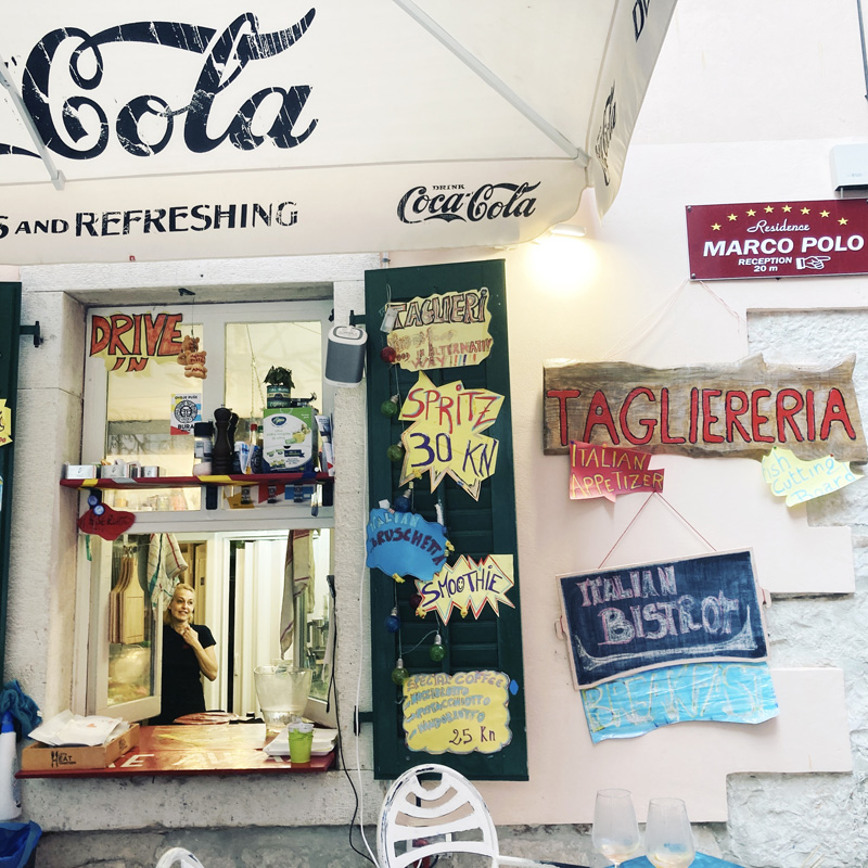 Mais oui, Rovinj est belle. C’est l’Italie en condensé. On trouve un bar avec de la musique formidable pour boire un verre. En revanche, une fois nos Sprtiz avalés, pour trouver à manger, c’est une autre affaire. On tente un endroit qui fait un genre de fish and chips chic et pas cher, mais il y a plein d’attente, Manu prend une petite table, je pensais qu’il fallait être placé, bref, malentendu, et on finit par capituler, agacés. Les aléas du direct.