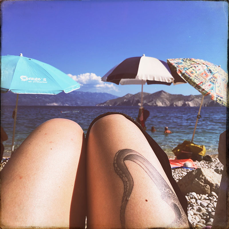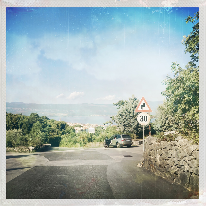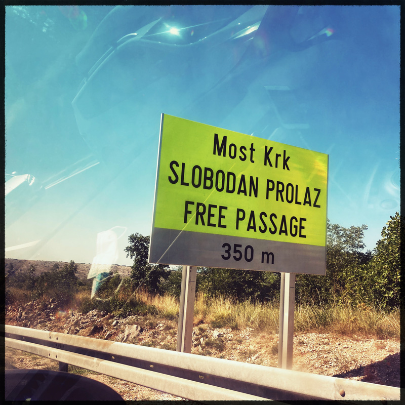 Aujourd’hui, nous n’avons pas tant de route, 250km et un poil. Nous allons sur l’île de Krk. J’ai choisi cet endroit parce que nous avons un ami super qui s’appelle Krouk, et qui a eu un groupe qui s’appellait Krk, alors en planifiant le voyage, j’ai dit banco.