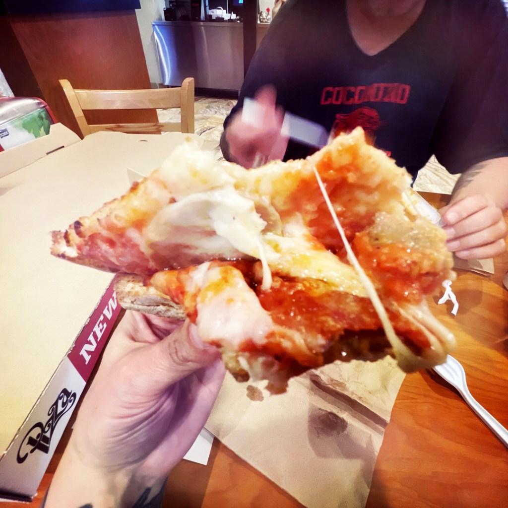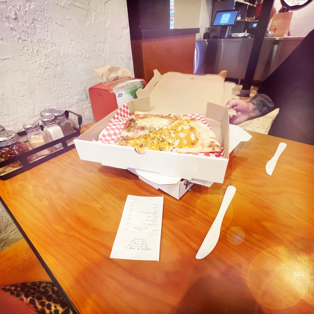 Direction downtown Tampa. Les grands buildings et le Tampa theatre, un vieux cinéma très beau. Mais on n’ira pas voir de film, on va plitô aller à la pizzeria d’en face, conseil de marraine Tartine. Des pizza New York style. Et beh punaise oui, j’ai l’impression d’être en 1985 à NY city quand j’ai mangé ma première part de pizza au pepperoni. Une révélation !