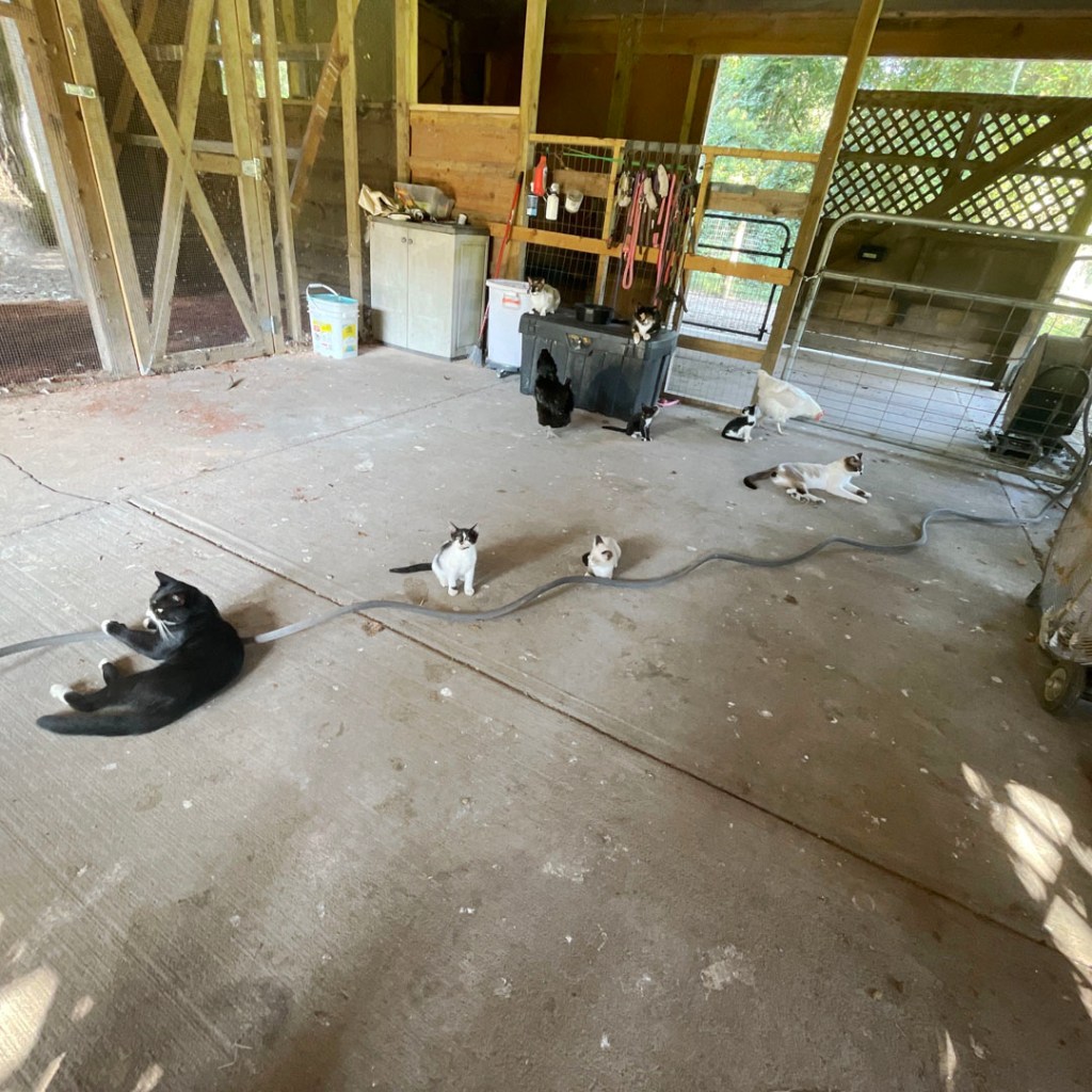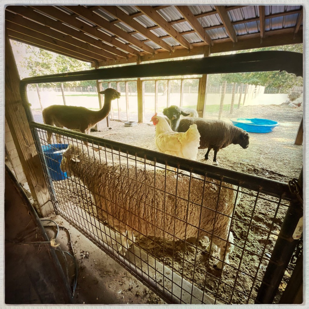 Comme je l’ai dit, on a dormi dans une ferme, dans la petite ville de Pembroke. Il y a des tas de chats et des tas de chatons, alors c’est mignon. Il y a 30 poules, deux chiens, des canard et des oies, deux lamas, deux alpacas. Certains sont régulièrement tondus (les trucs à tondre) pour faire de la laine et des pulls (pas les poules par exemple), mais Pat, la propriétaire, dit qu’avec ces températures, la laine n’a que peu de succès. Mais ces bestioles sont sa joie de chaque jour et elle rit à chaque fois qu’ils font une ânerie. Enfin, une montonnerie, une alpacarie, je ne sais pas…