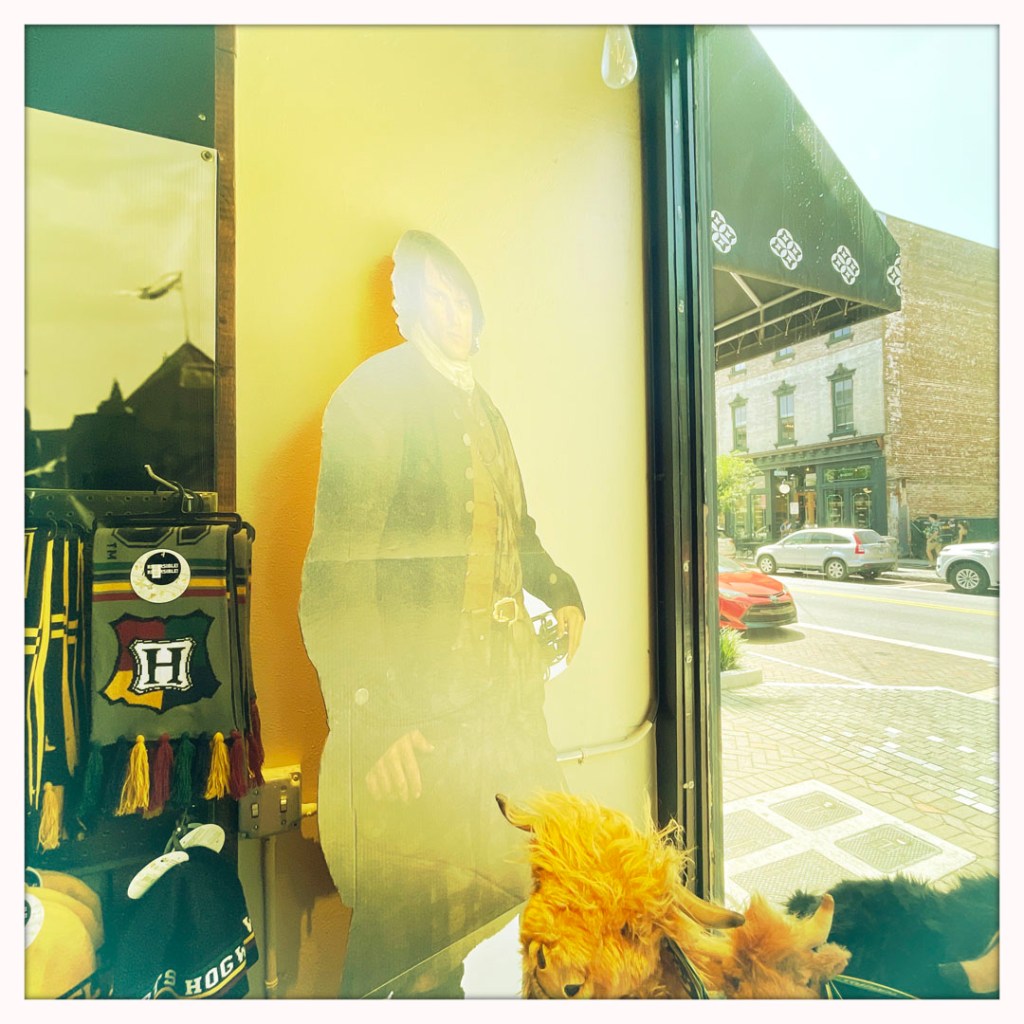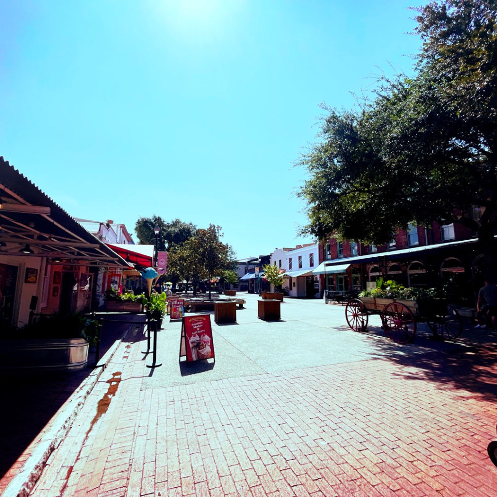 On se balade un peu sous le soleil qui écrabouille, pour aller de la voiture au centre historique. C’est gentiment touristique, y’a des boutiques de souvenirs avec quelques trucs cool (cette année, j’ai décidé d’acheter une décoration de Noël par État visité). Les souvenirs aux USA sont souvent assez cool finalement. Bien plus qu’en Écosse l’année dernière, où j’ai été tant déçue (pas un seul truc sympa avec Nessie, sans déconner).
