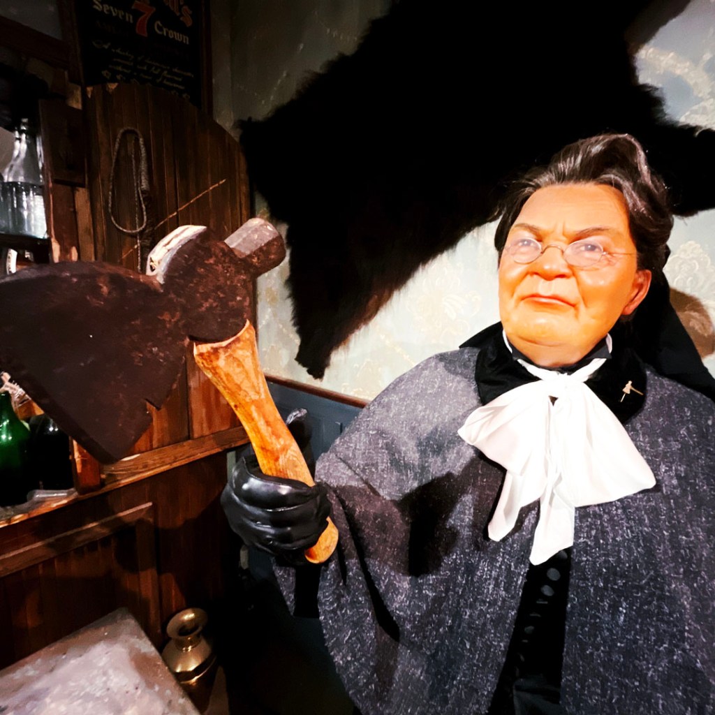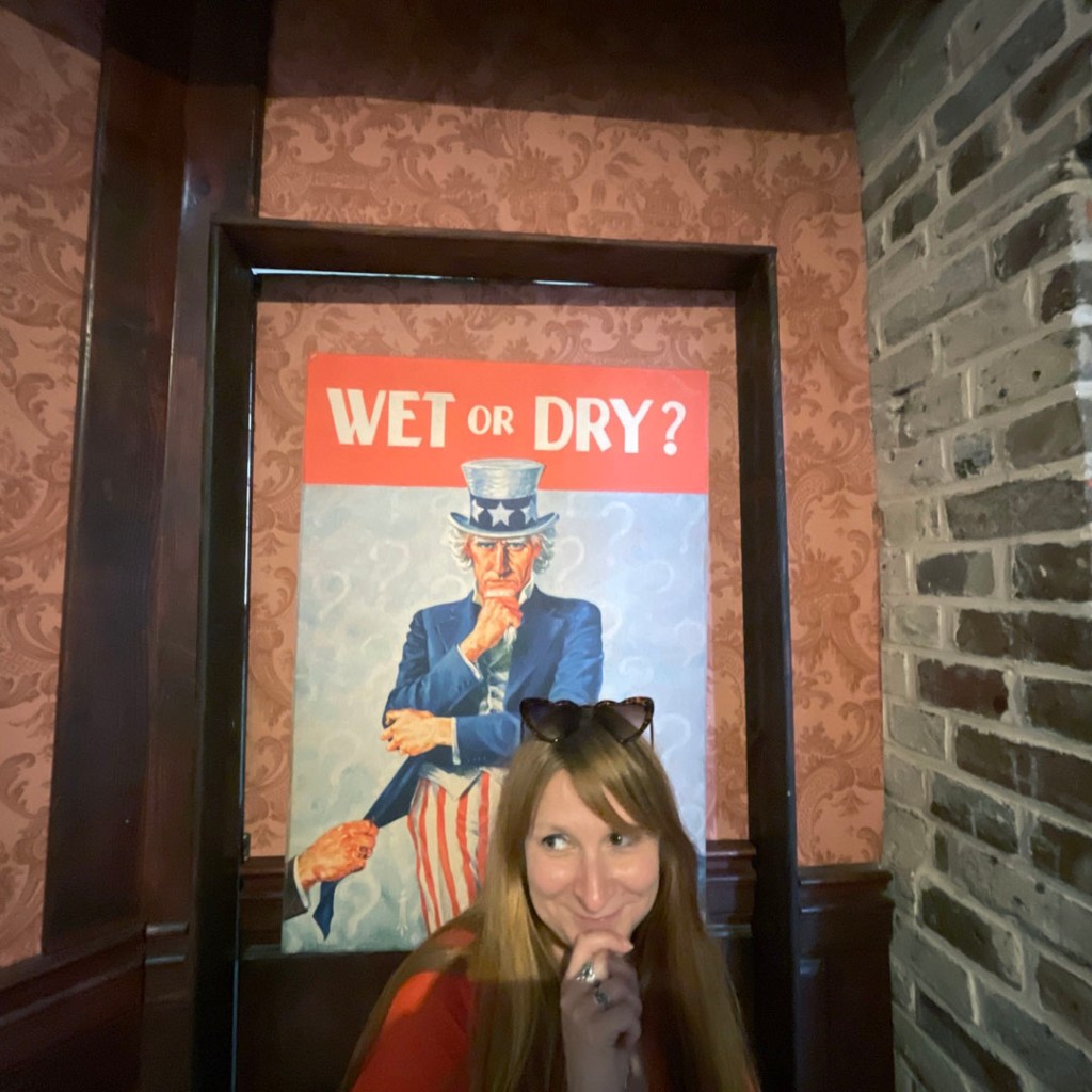 On entre dans le musée. Y’a des statues en cire, des repro des vieilles affiches. C’est vraiment cool. On apprend des tas d’anecdotes épatantes. Ma préférée restera l’histoire de Carry Nation.