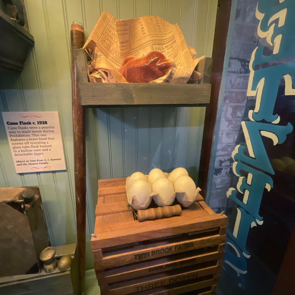 Ensuite, il y avait toute une section sur les différentes façons de planquer l’alcool à l’époque. Dans des berceaux (of course), dans des oeufs vides, scellés à la cire, dans des théières, dans des faux bretzels en porcelaine.