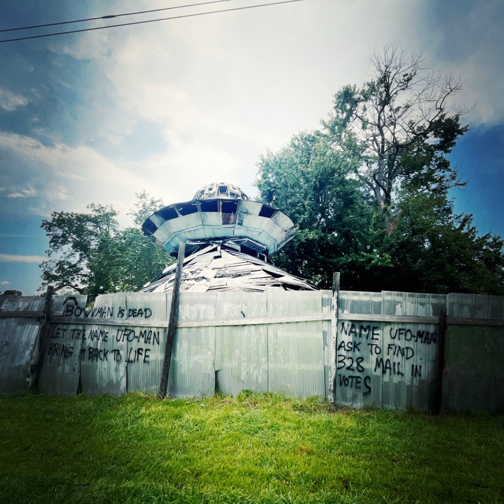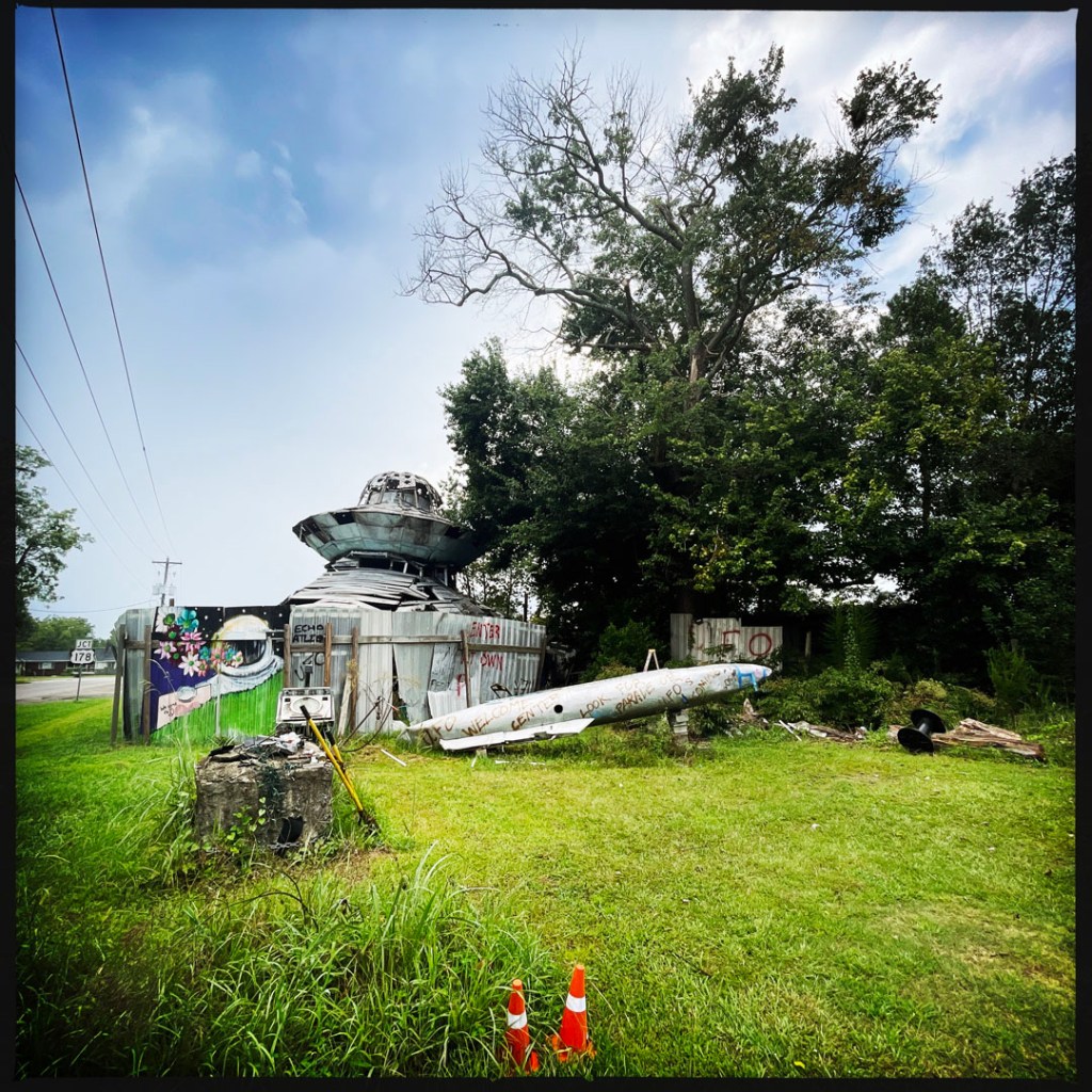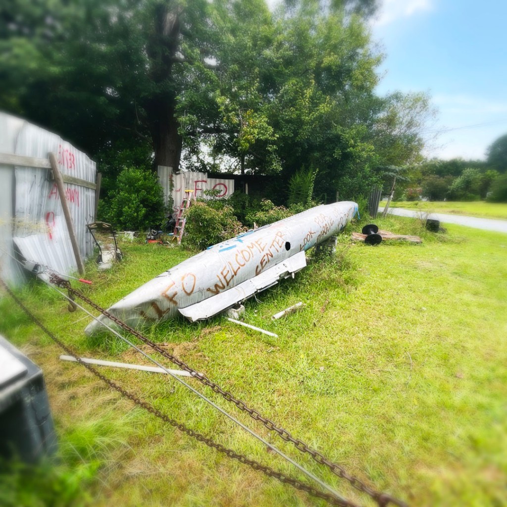 Un peu plus loin sur la route, je découvre qu’un monsieur a construit un centre de bienvenue pour les UFO. SYMPA LE MEC !
