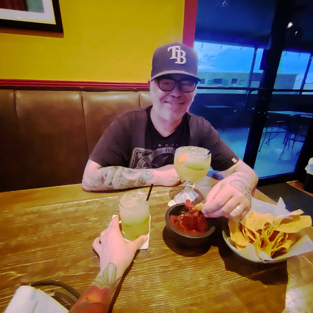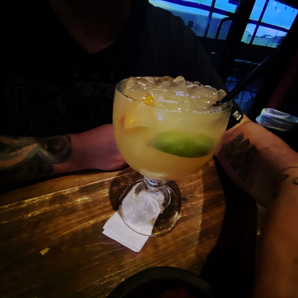 On s’installe dans notre chambre, et par message, elle est paaas hyper chaleureuse. J’ai quand même demandé où manger et elle a conseillé un mexicain qui s’est avéré super. Le petit déjeuner des waffles étaient loin, on avait faim. Et ils avaient des margaritas de plusieurs tailles. Manu a pris la moyenne, je n’ose imaginer la taille de la grande.