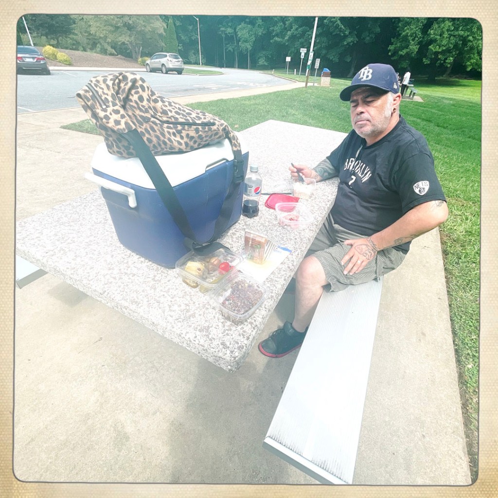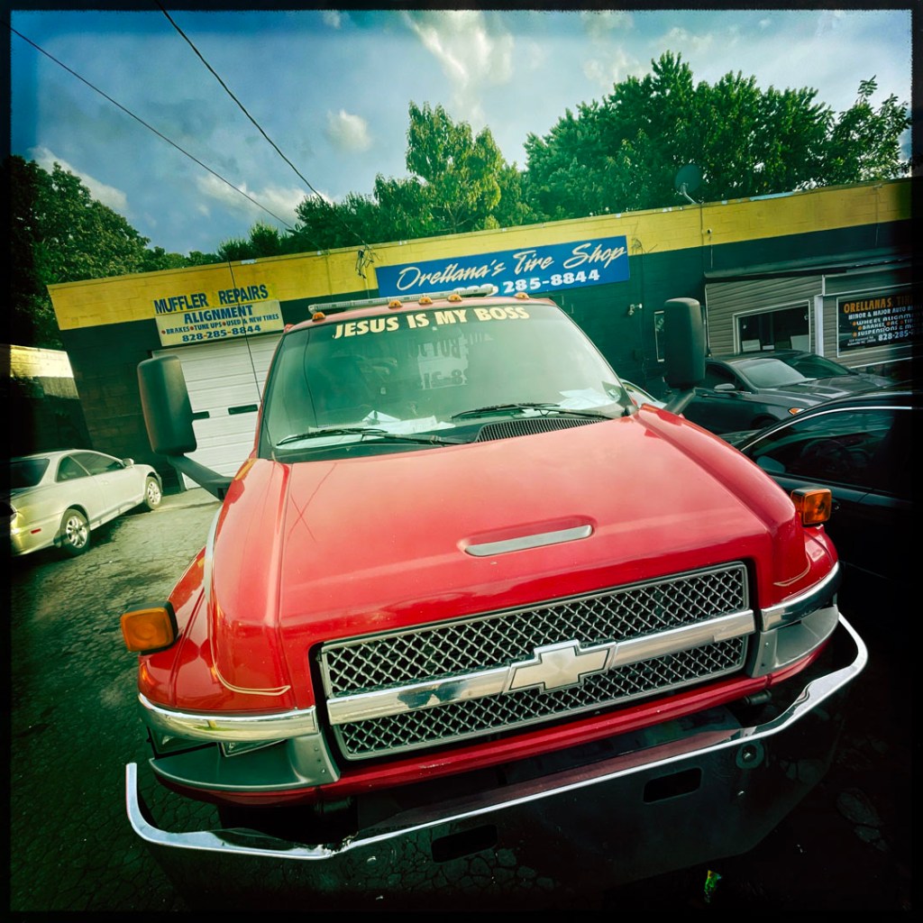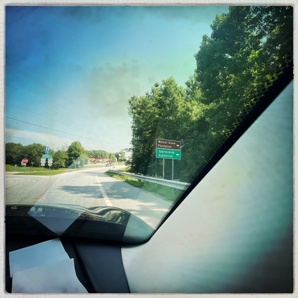 Puis, la route. On s’arrête dans un supermarché pour s’acheter le déjeuner, salade, sandwich poulet, sobre, on le mangera un peu plus tard, quand on arrive dans les montagnettes de Caroline du nord. En chemin on écoute Sublime, Led Zep, les Beatles, on chante ou je ronfle, ça dépend.